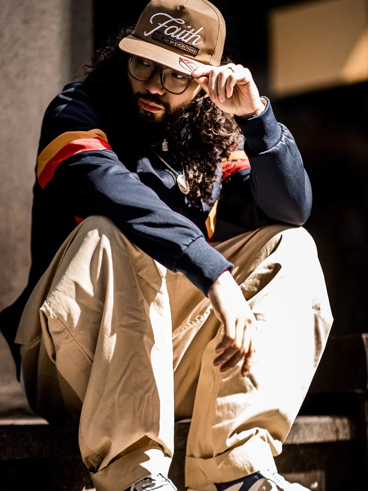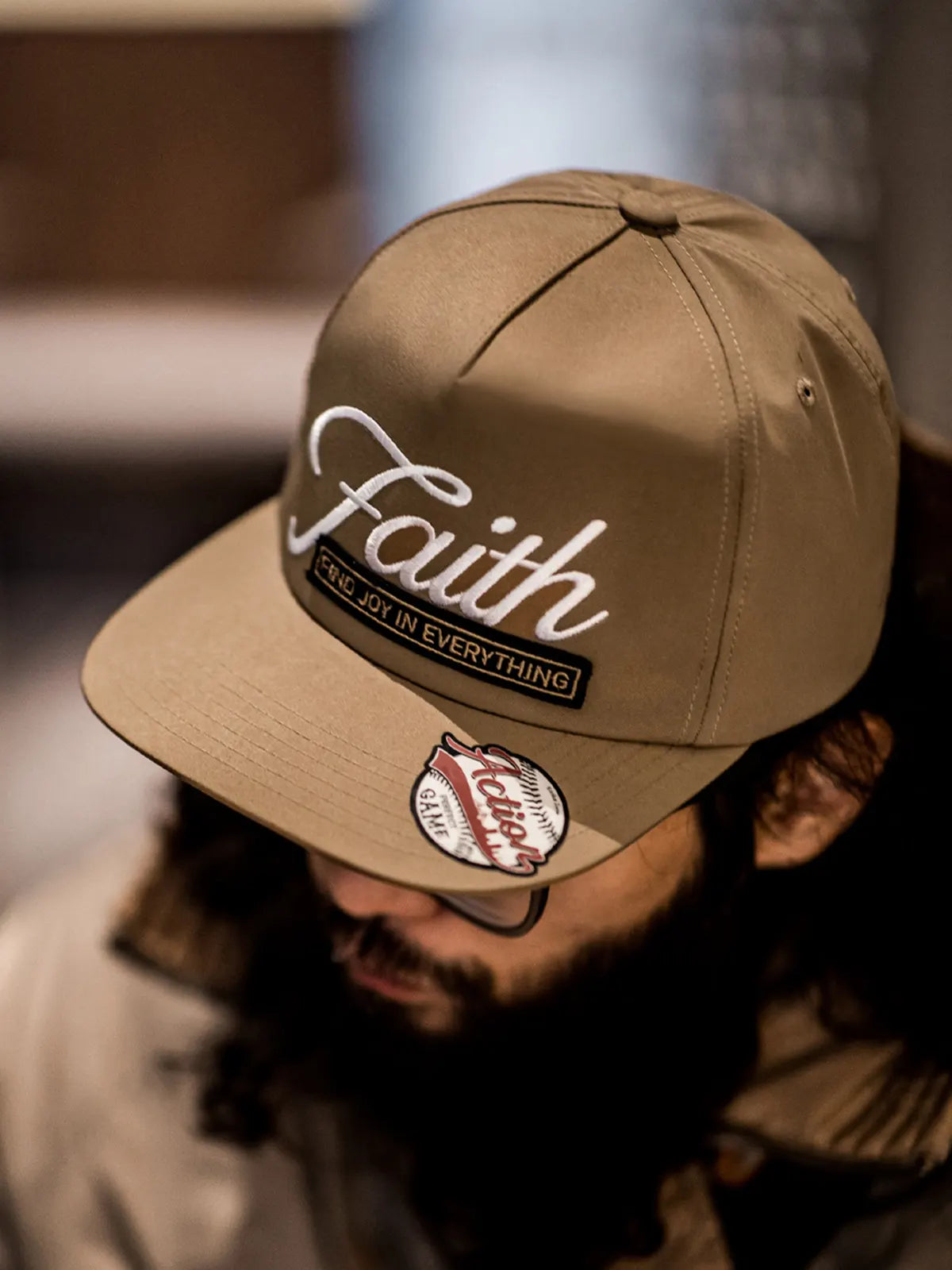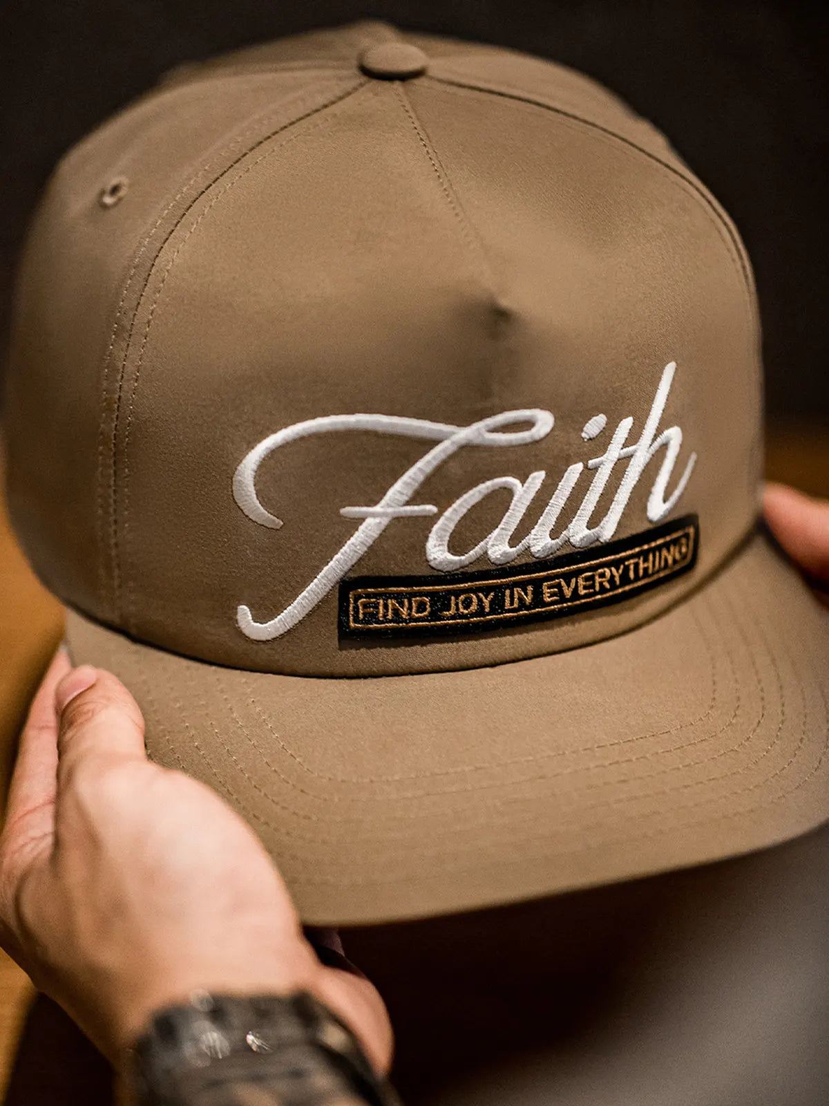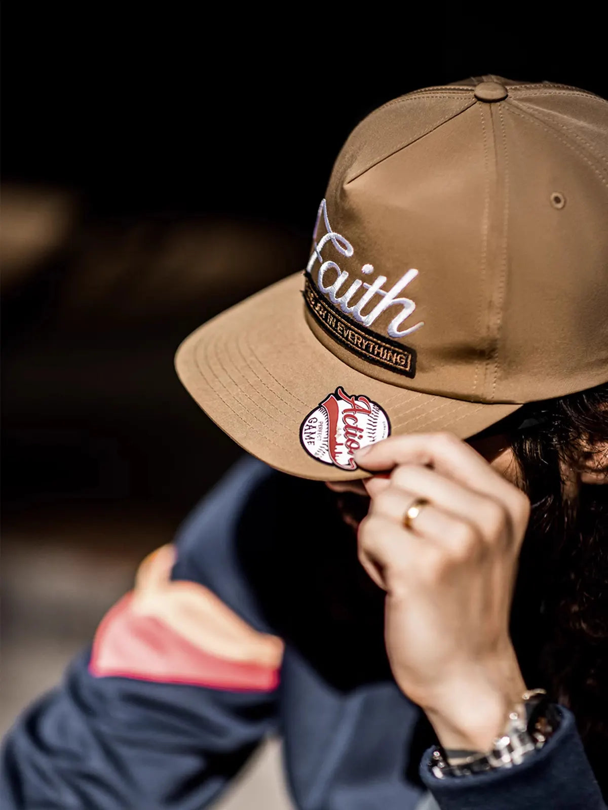 このベースボールキャップは19世紀の米国野球文化をイメージし、クラシックな6パネルのスナップバック仕様で安定した形状を保ちながら、刺繍ロゴと立体ワッペンで独特の表情を演出します。フロントには「Faith」の刺繍が際立ち、「Find Joy In Everything」というメッセージを組み合わせ、ストリートヒップホップの精神を強調しつつ、個性的なデザインを完成させました。100%コットンを使用し、程よいハリ感と通気性を兼ね備え、季節を問わず快適な着用感を提供します。浅くない被り心地と6.7cmのつばがしっかりと日差しを遮り、頭囲は57~60cmに調整可能。ショートパンツやスウェットパンツ、デニムとの相性も良く、ヴィンテージからスポーティまで様々なスタイリングに対応可能な万能キャップです。