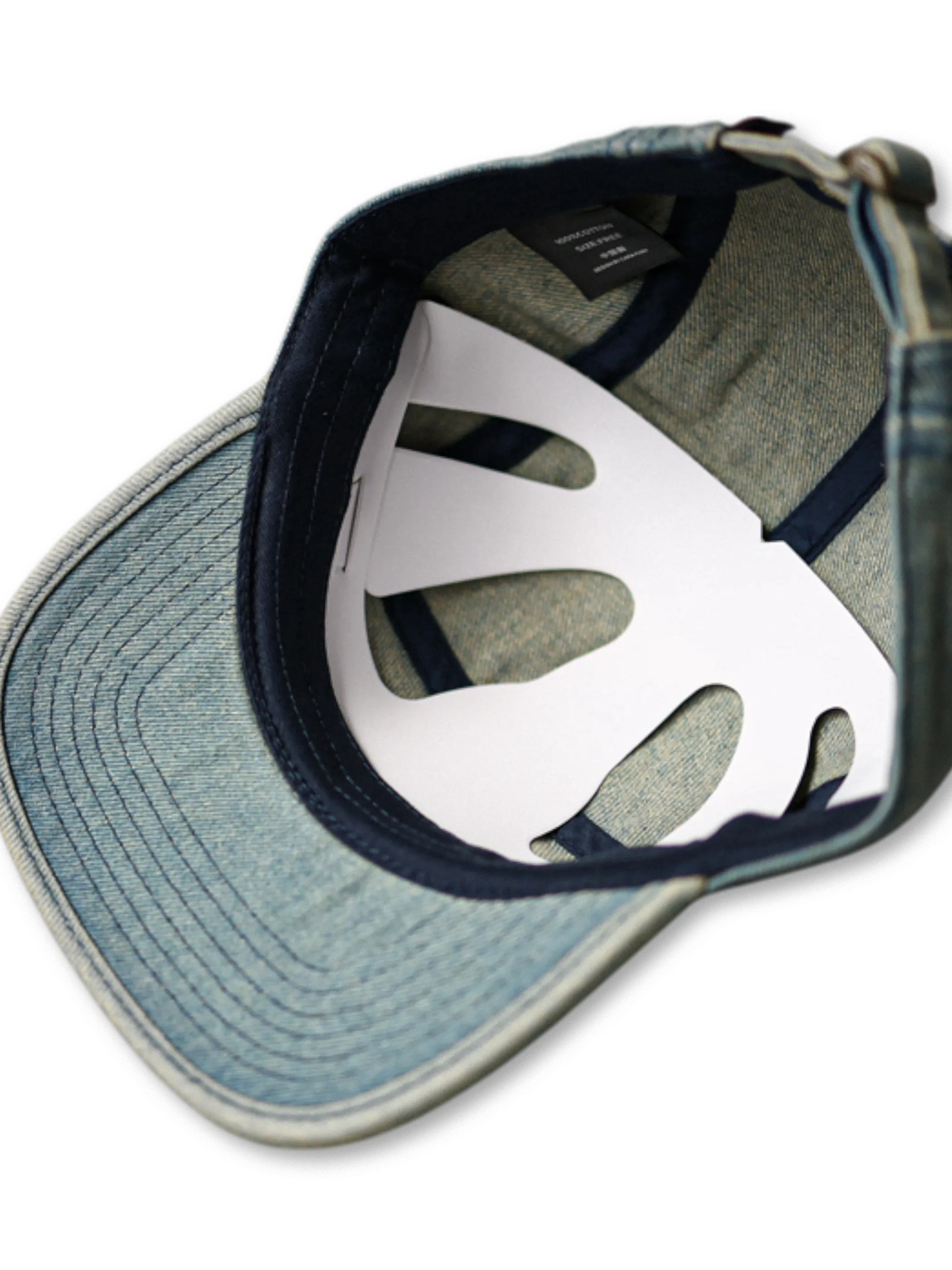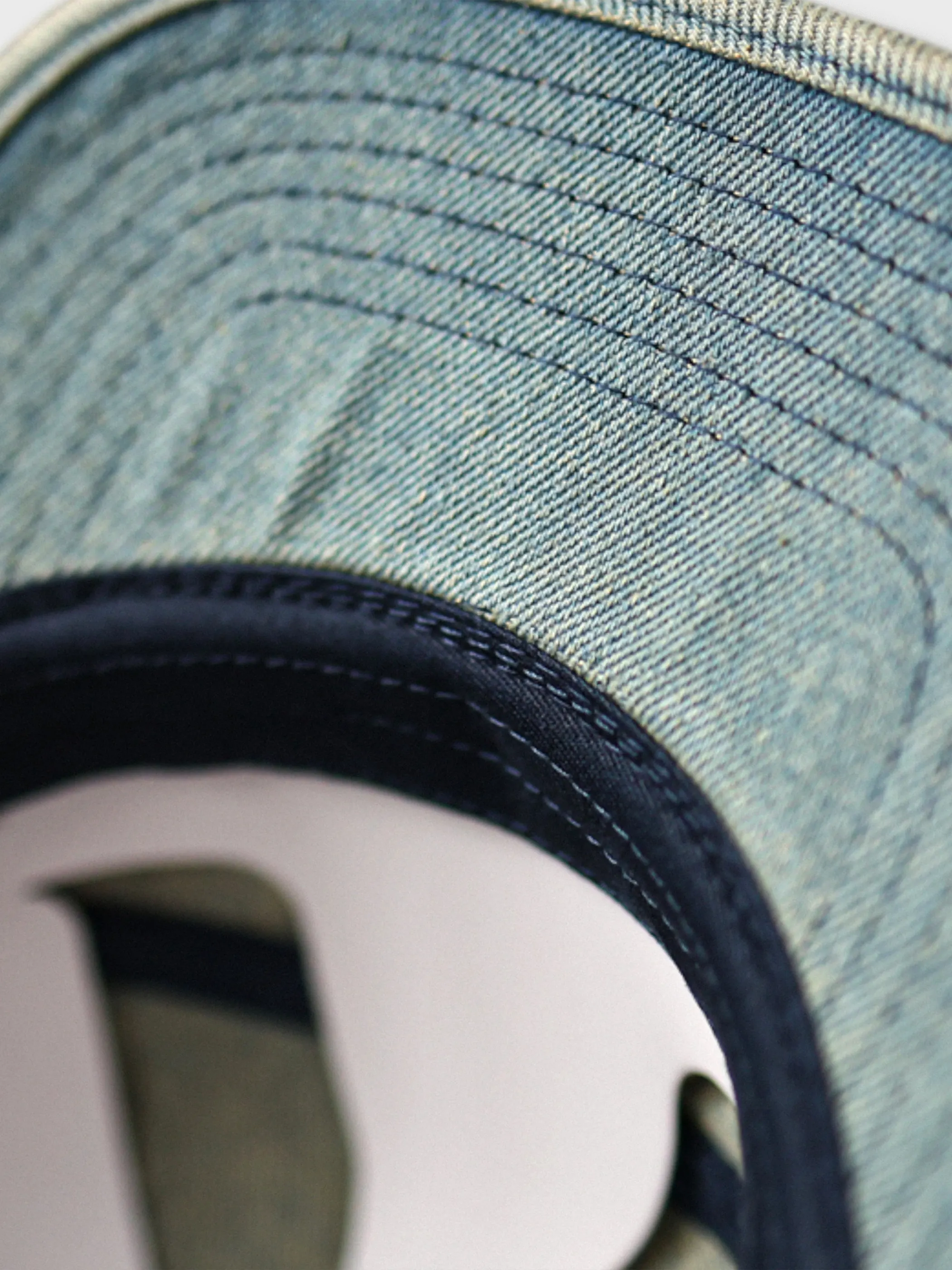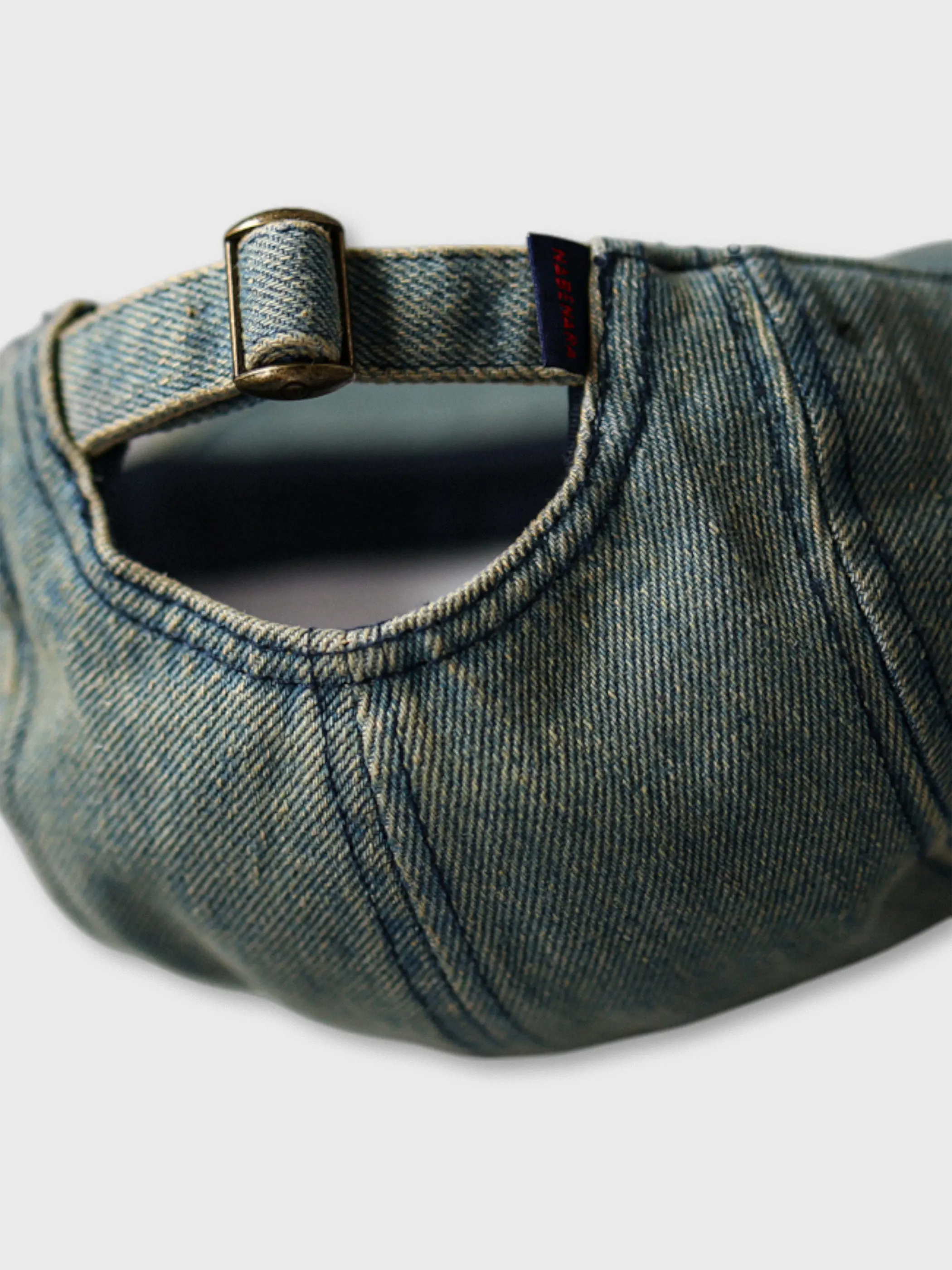 クラシックなデニムの質感とワイドブリムデザインを融合し、ヴィンテージ感とストリートスタイルを実現するキャップです。