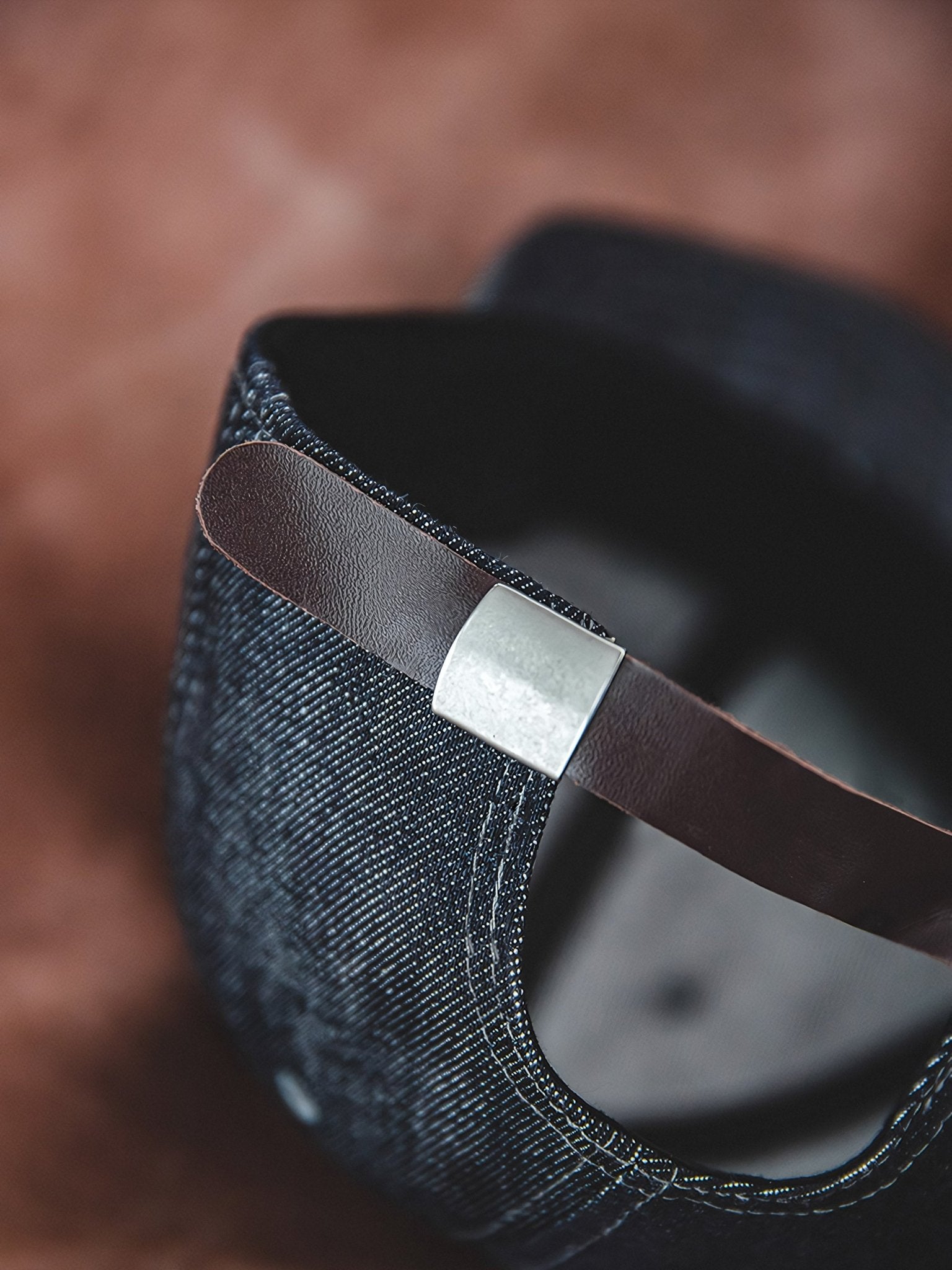耐久性に優れたデニム素材と牛革ベルト付き、サイズ調整可能なボールキャップ