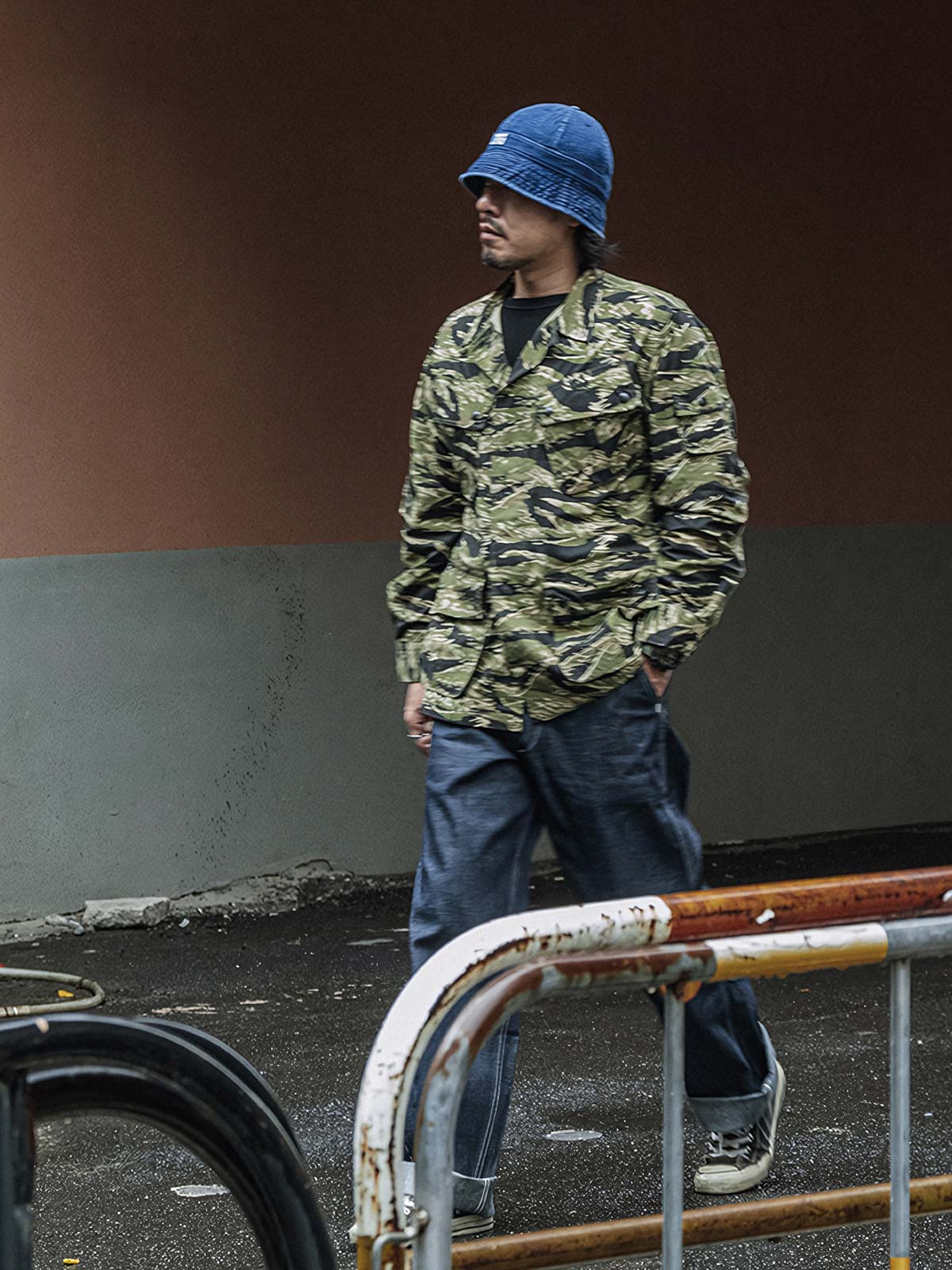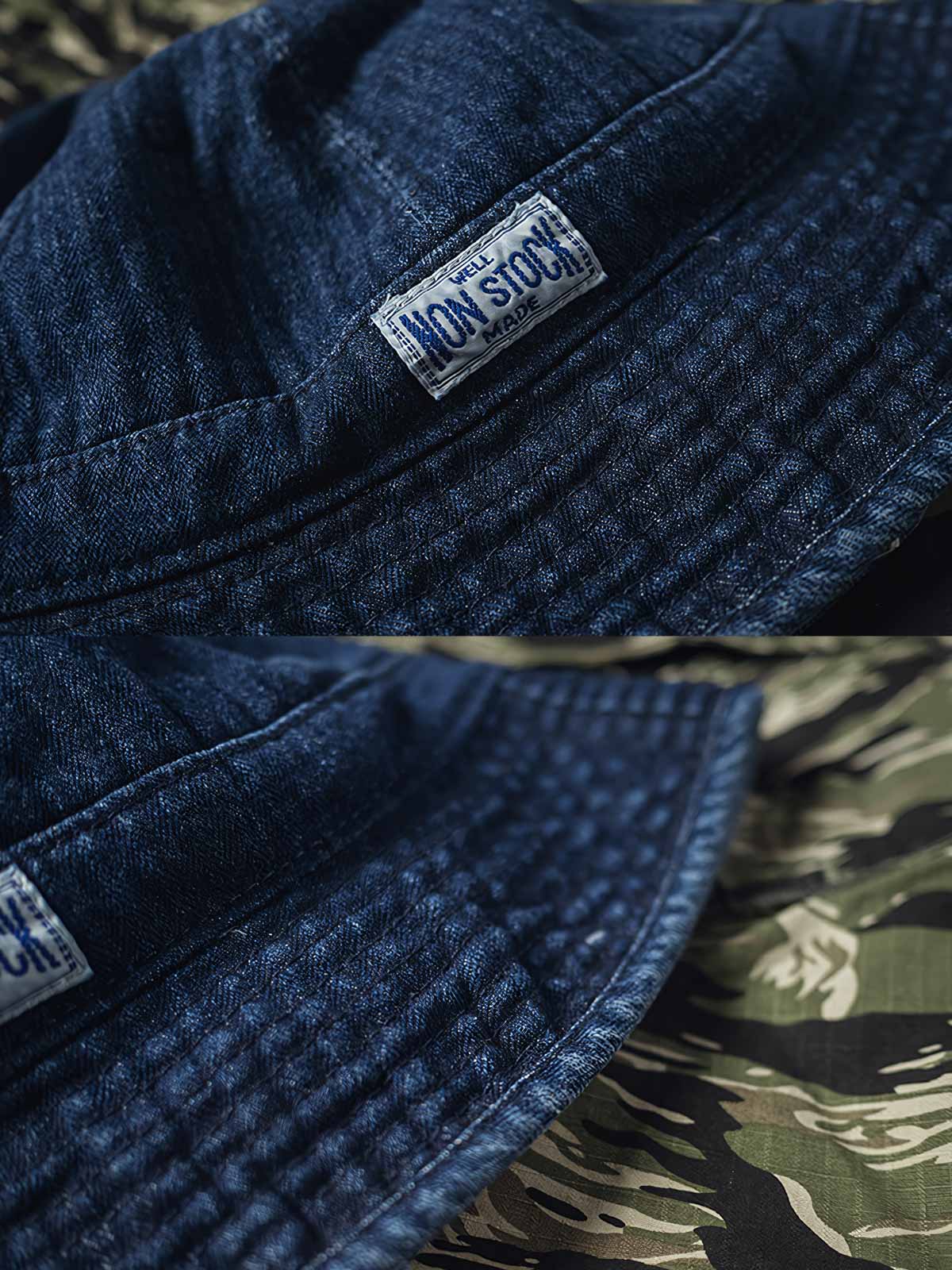 このバケットハットは、100%コットンのデニム素材で作られており、人字纹のテクスチャーがカジュアルながらも洗練されたアクセントを加えています。丸い頭部と広いつばは、この帽子のトラディショナルなフィッシャーマンのシルエットを形成しており、プレイフルながら実用的なスタイルを提供します。