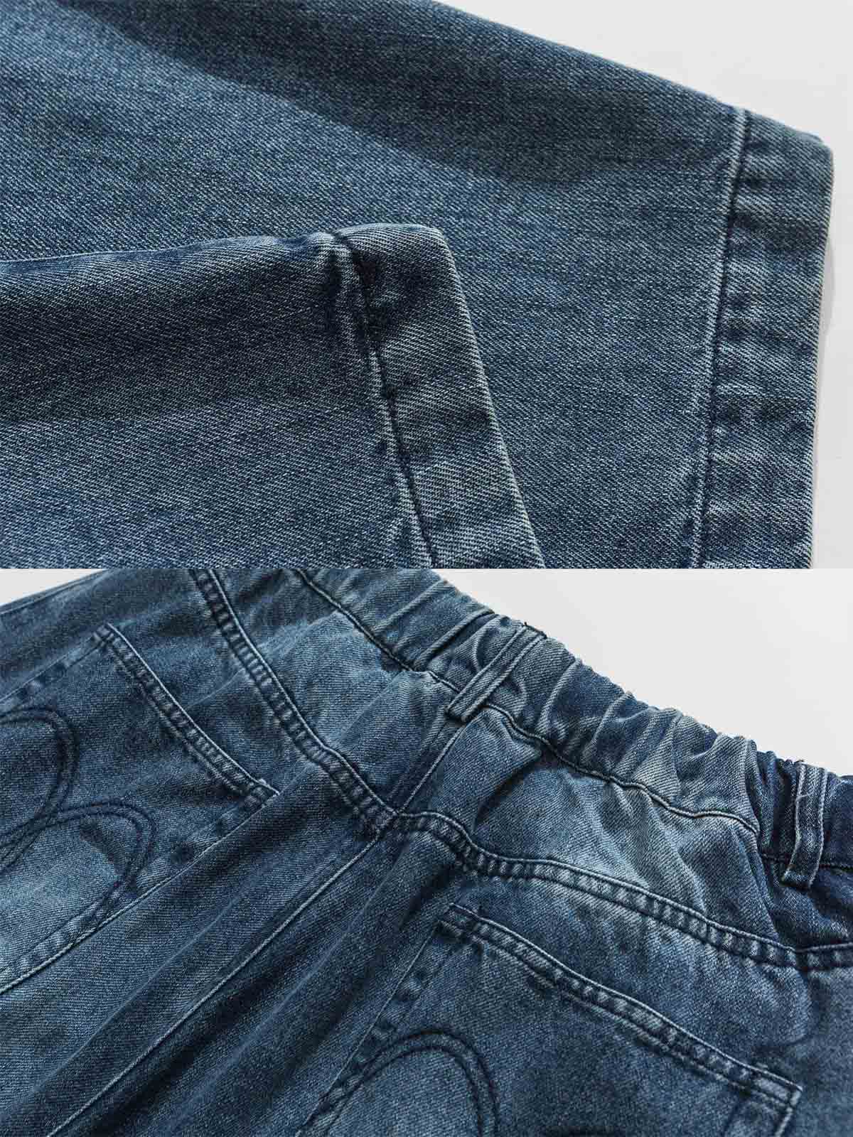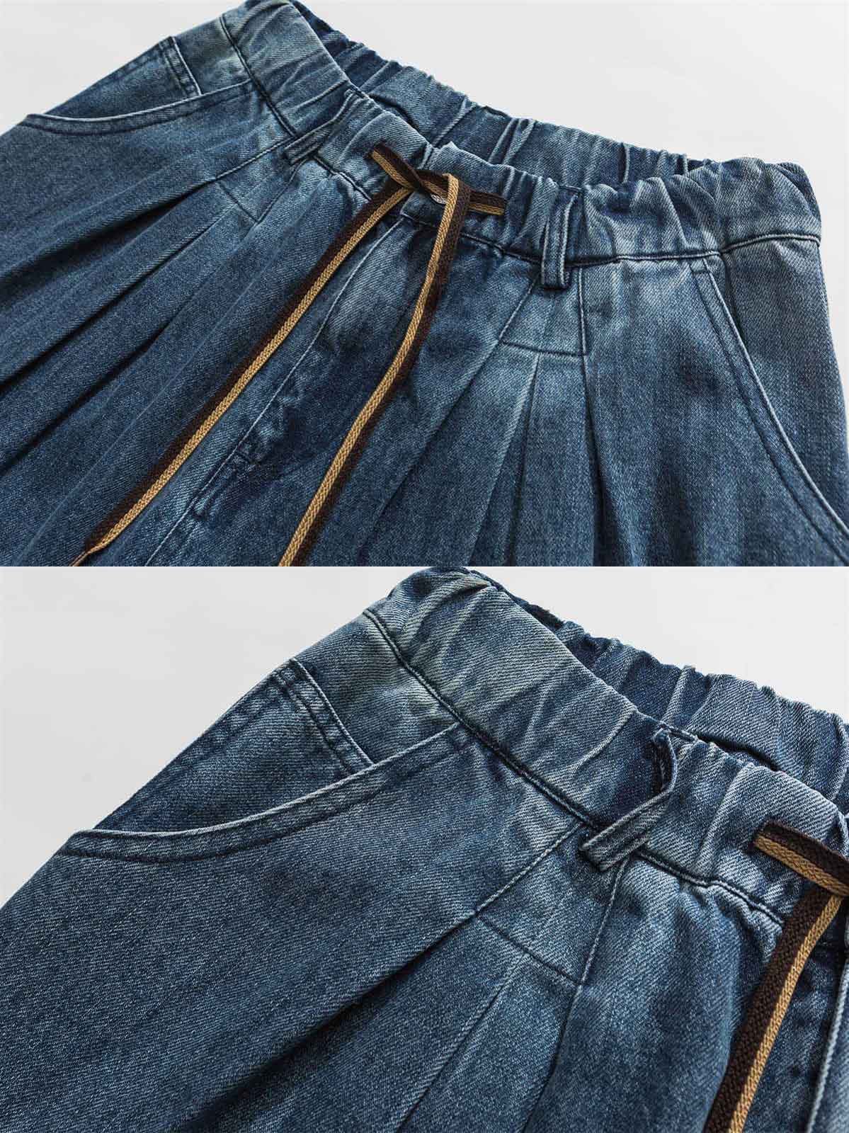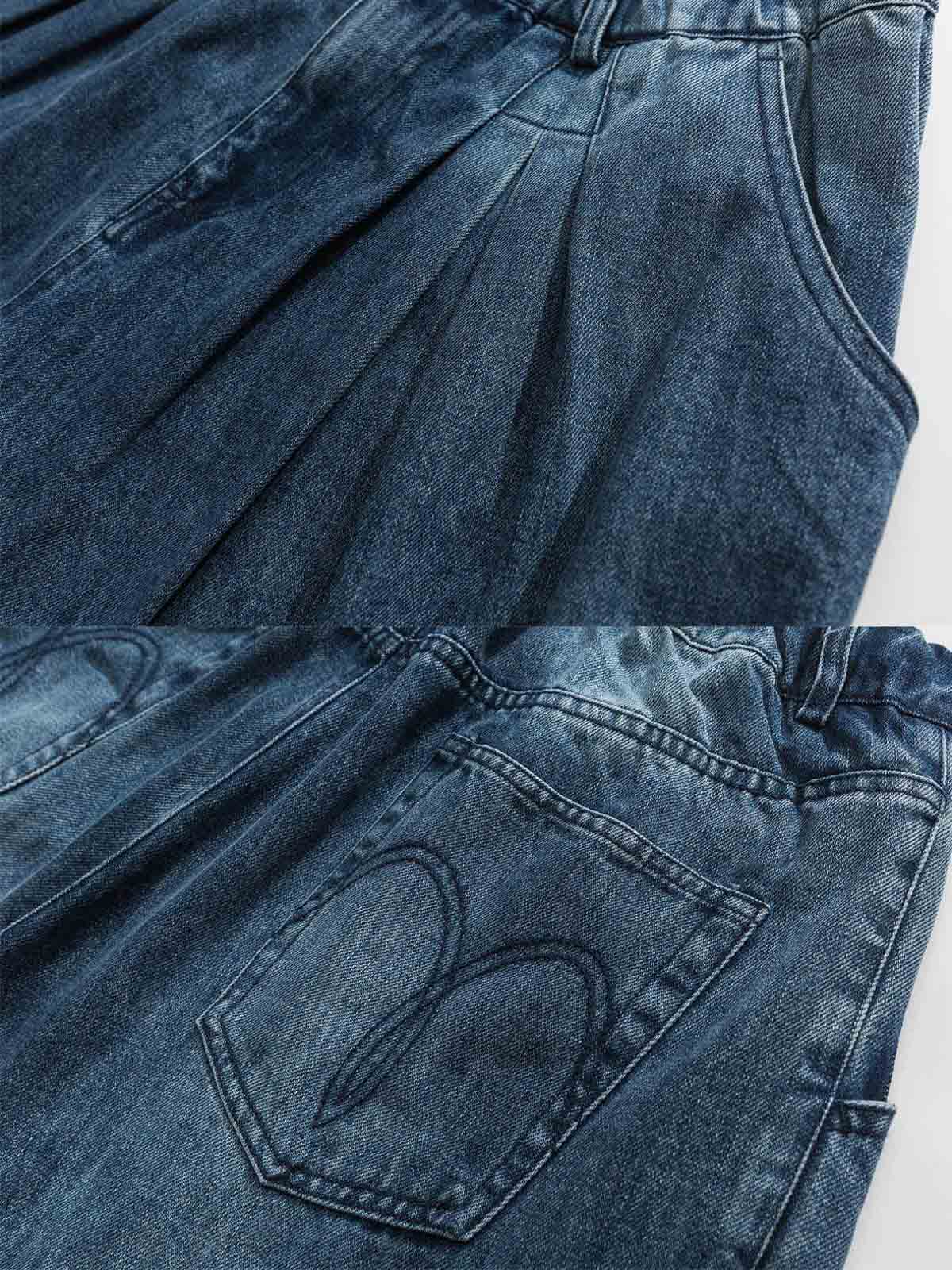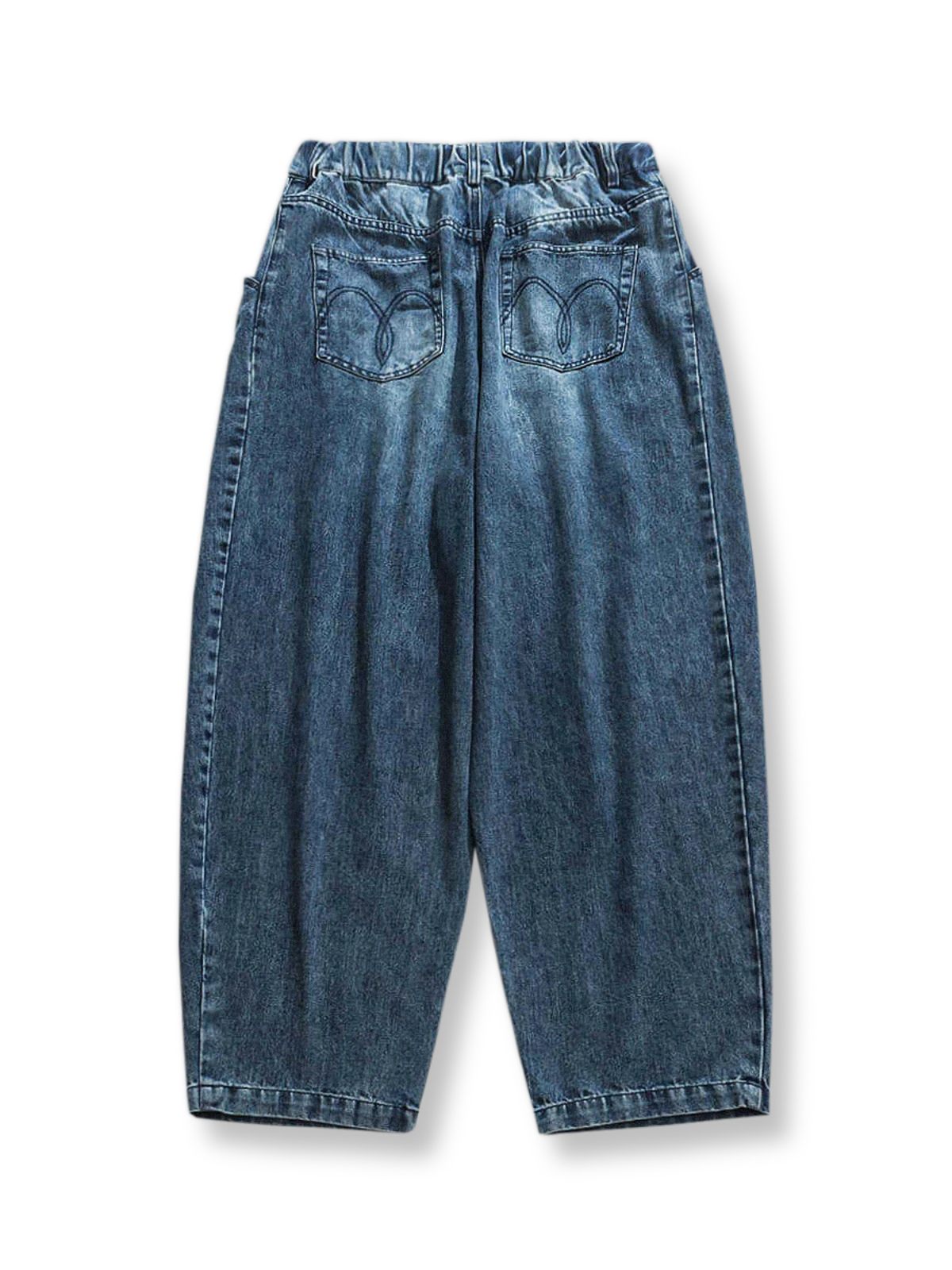 高品質のデニム生地を使用し、ヘビーウォッシュ加工により、生地に独特のエイジング効果を生み出し、より柔らかく自然な質感を実現しています。ハーレムジーンズのゆったりしたカットは、細部の精巧な工芸によって、デザインへの細やかな配慮を強調しています。