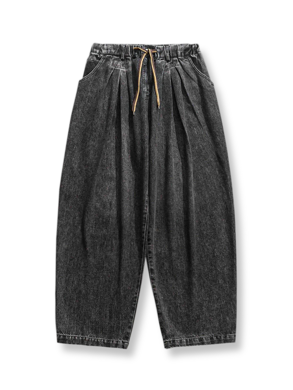 ゆったりしたハーレムカットは、すべての体型に合う卓越した快適さを提供します。エイジングウォッシュ加工された生地は、ユニークな質感を持ちながら、着用時の快適さと適応性を保証します。