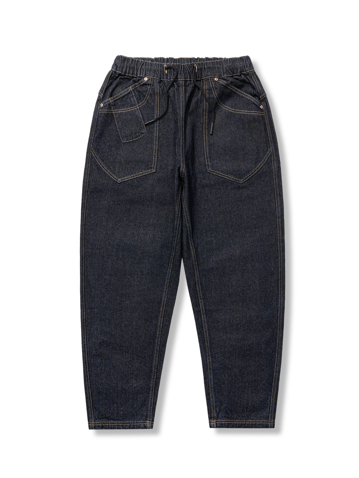 12.8ozコットンデニム素材をメイン使用し、丈夫に使える。最初から雰囲気のある生地感ですが、 穿き込むほどに自分らしく育てる余白を残しており、経年変化も楽しめる逸品になってます。