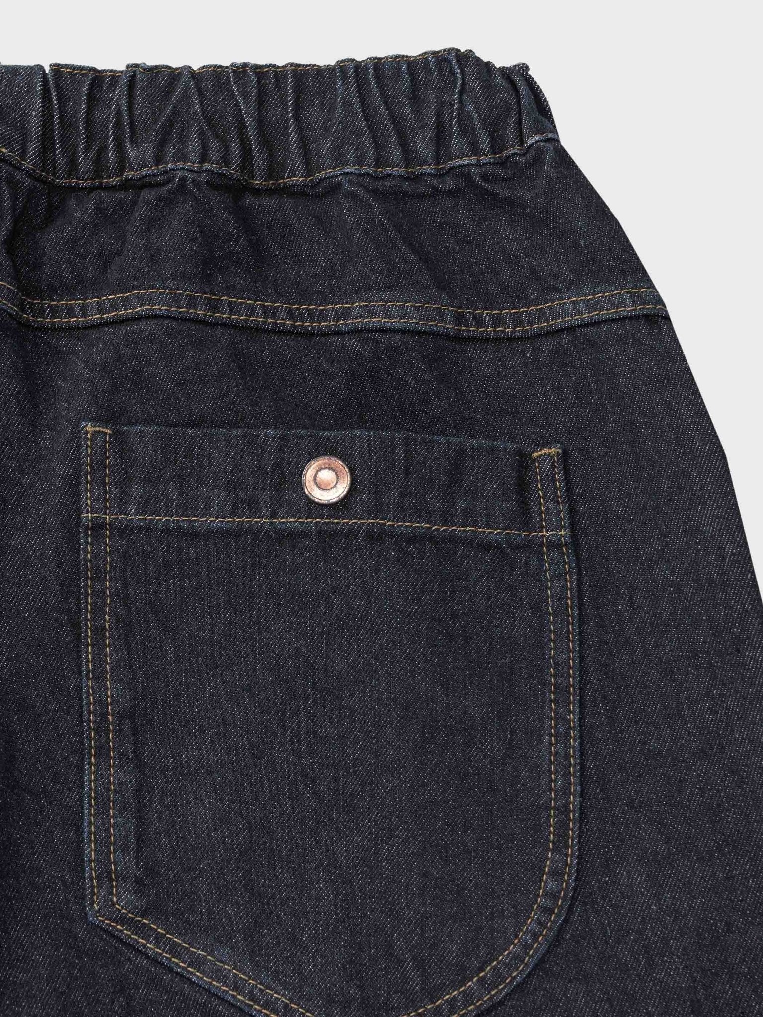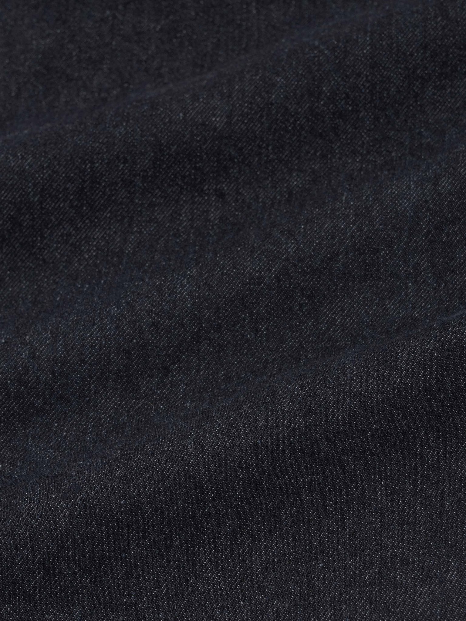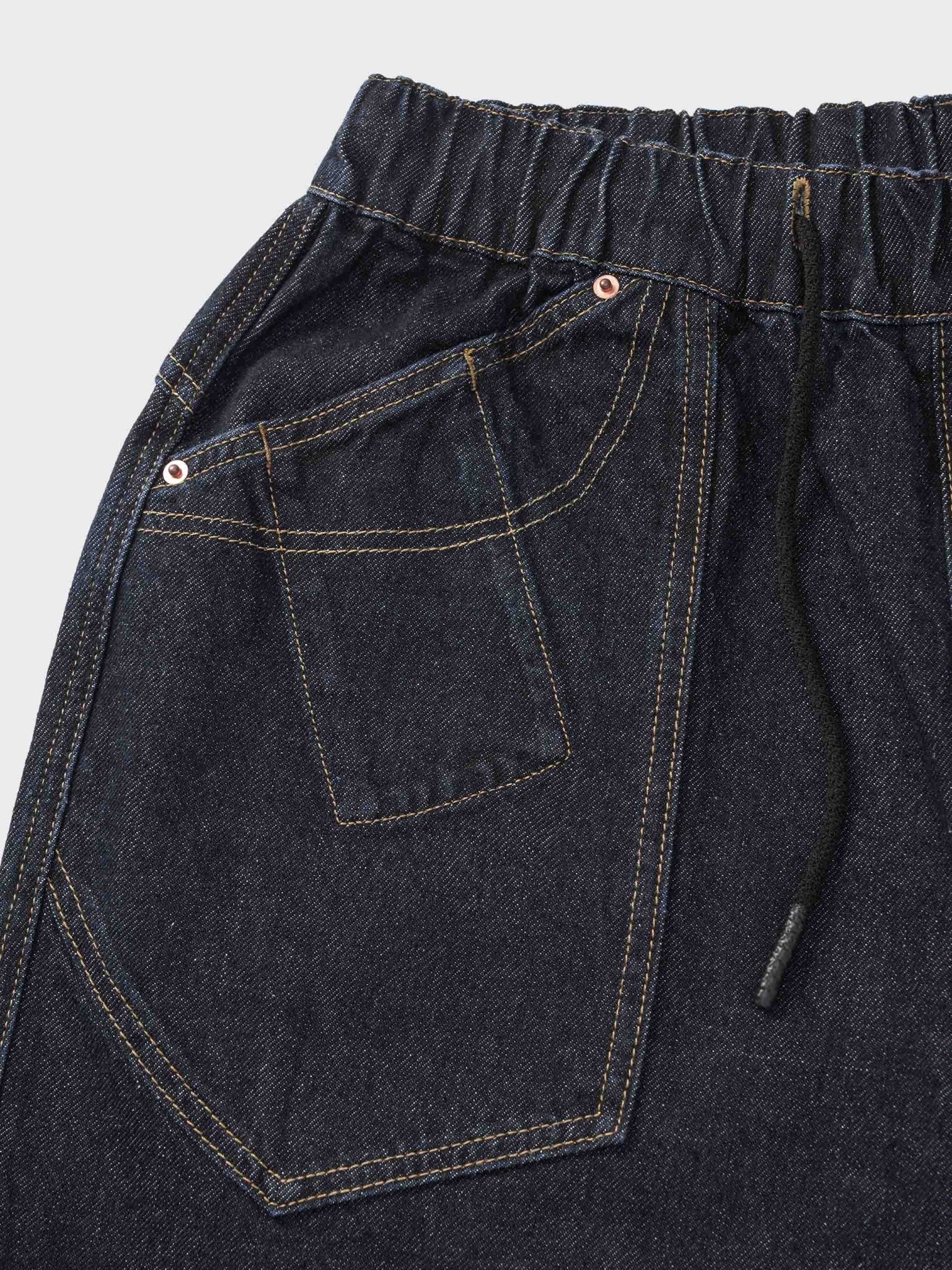ダークブルーカラーは落ち着いた雰囲気で、縫製の糸は熟練した職人が施している、重厚感のあるデニムとの相性も良い。フロントに左右非対称ステッチポケット2つ、背面にパッチポケット2つ を配置、サイズや位置などバランス良いデザイン。随所にこだわりが詰まったディテール。