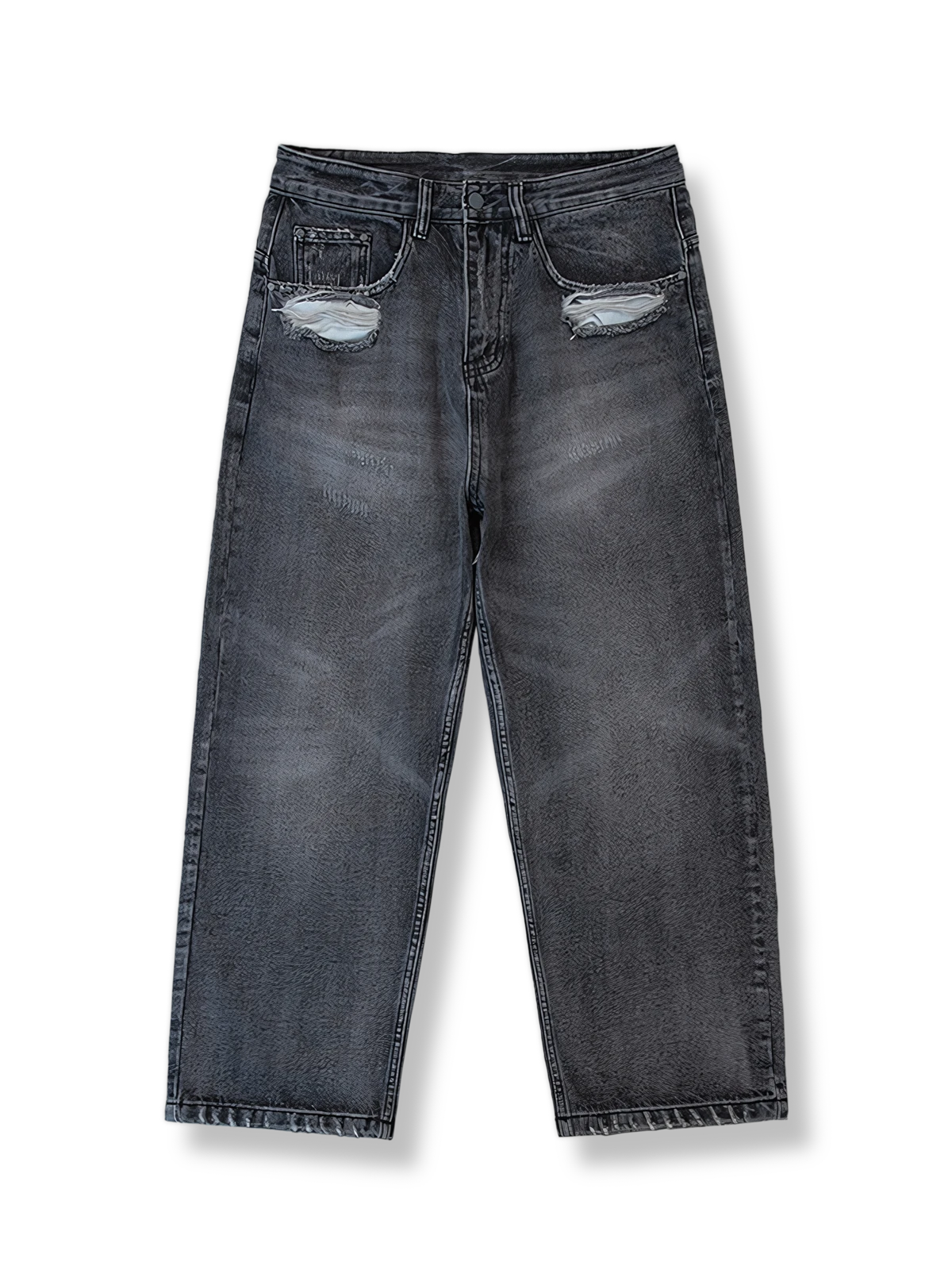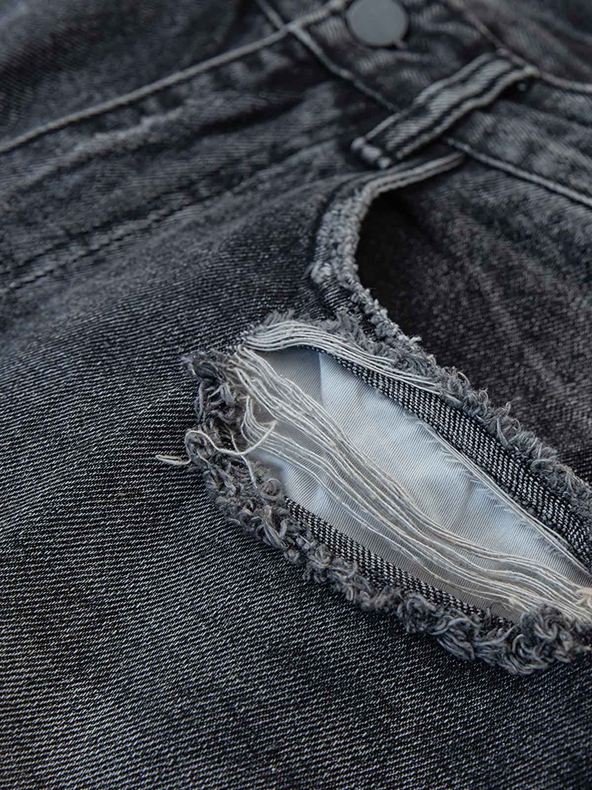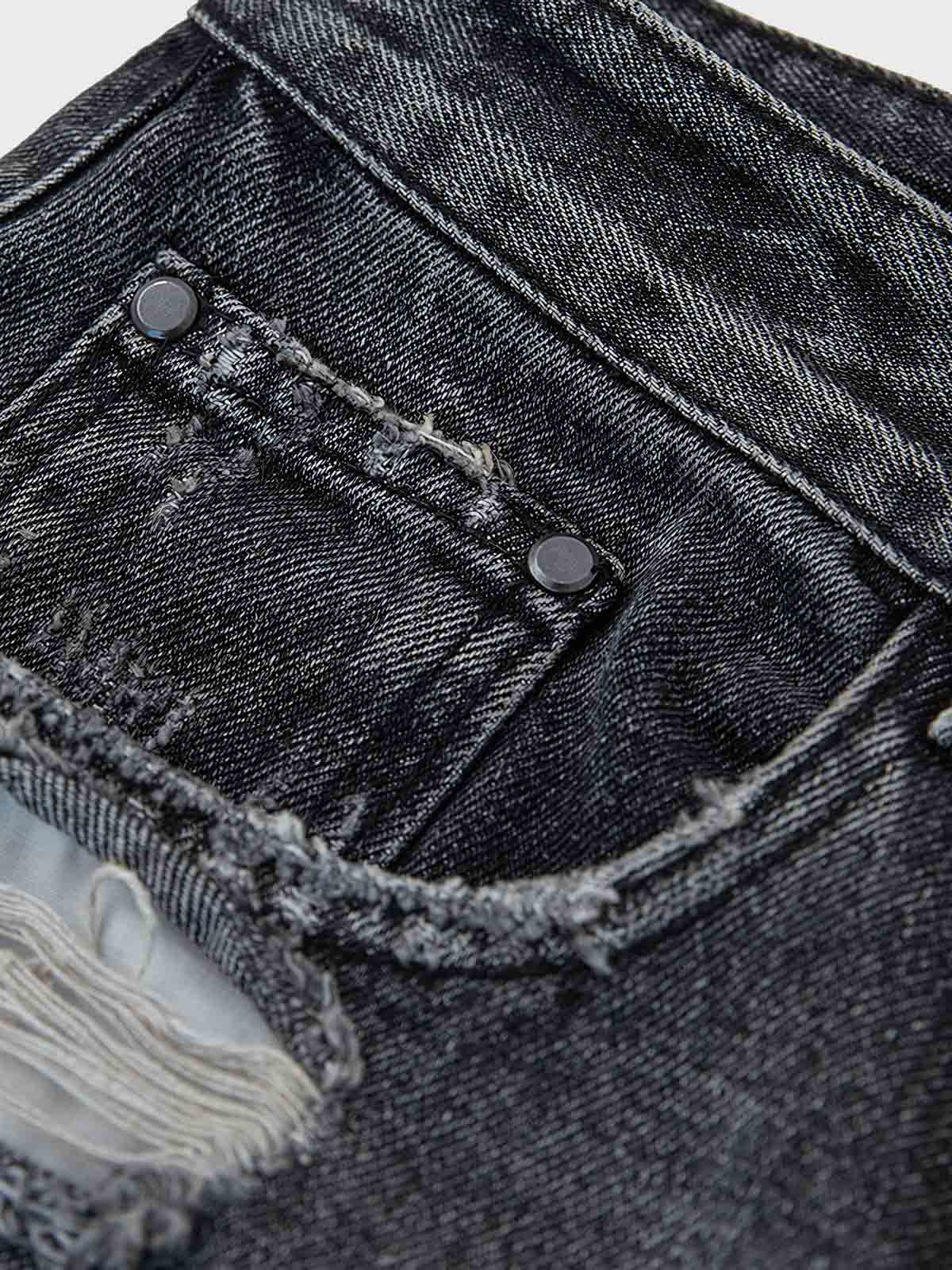 高品質のデニム生地を使用し、精巧な水洗い処理によって独特のグラデーションカラーを表現しています。これにより、パンツはレトロな魅力と現代的な感覚を兼ね備えています。摩耗部分とダメージ加工は、一つ一つ手作業で施され、各ディテールは細心の注意を払って設計されており、パンツの個性を際立たせると同時に快適さを保持しています。
