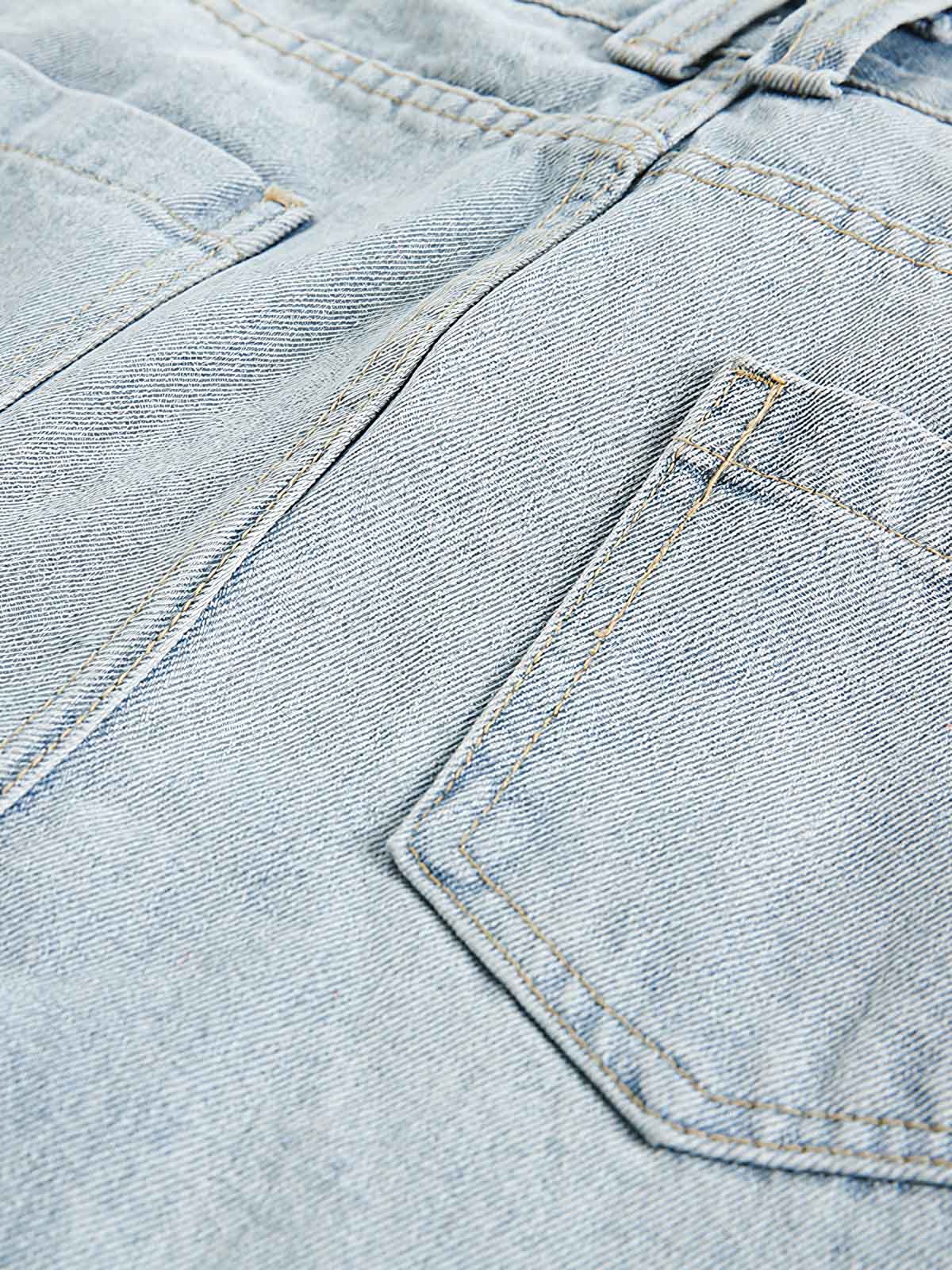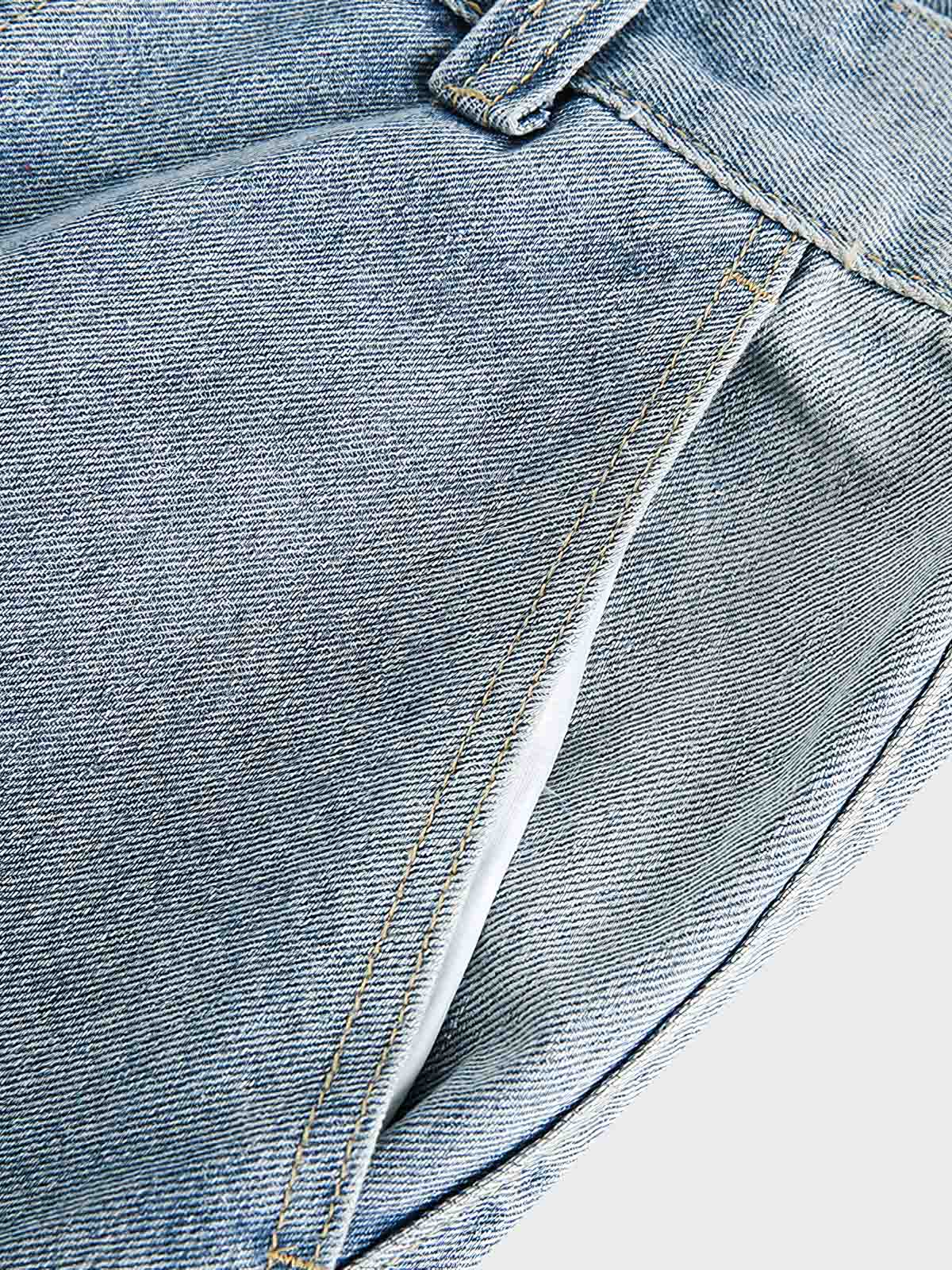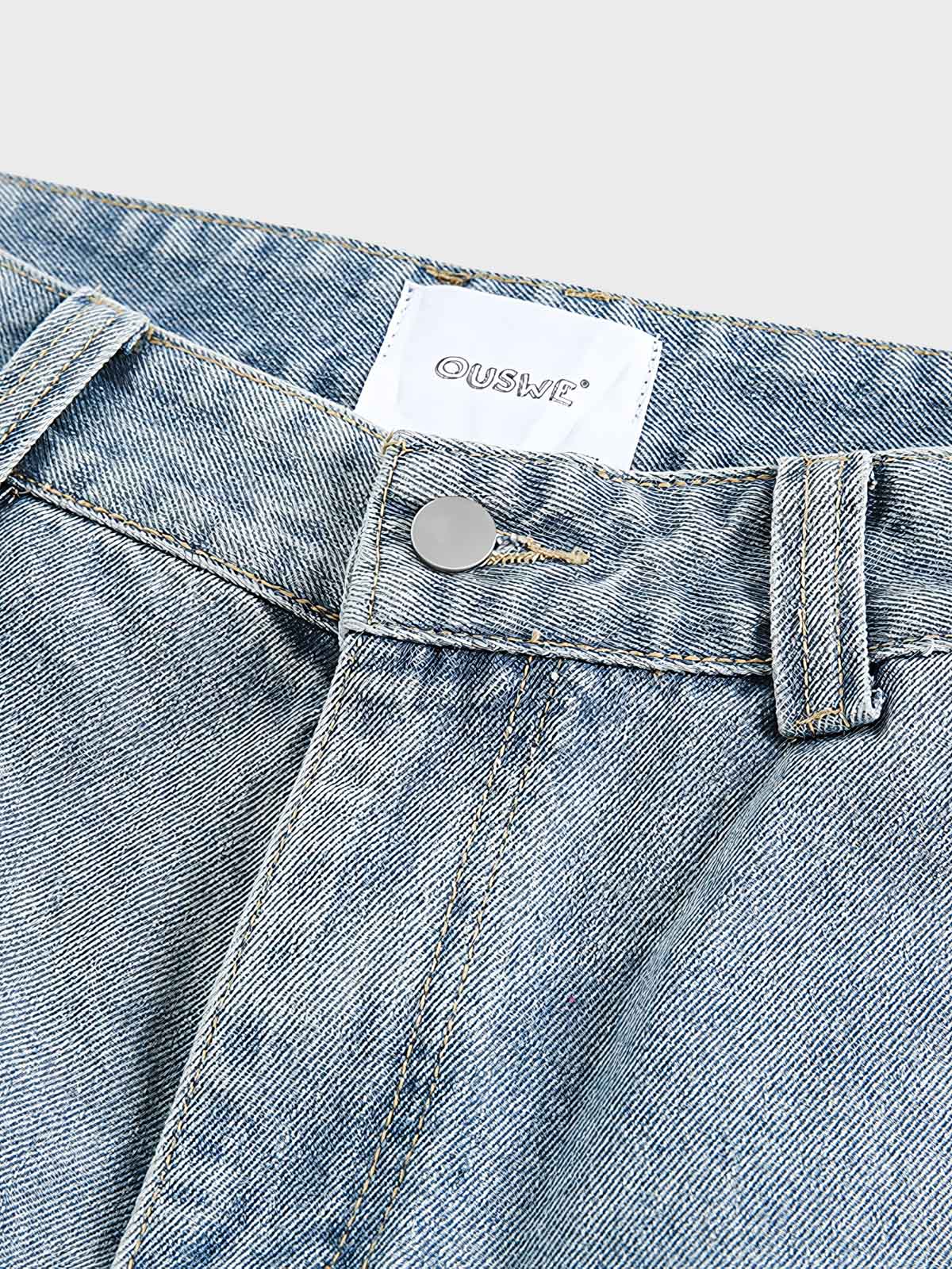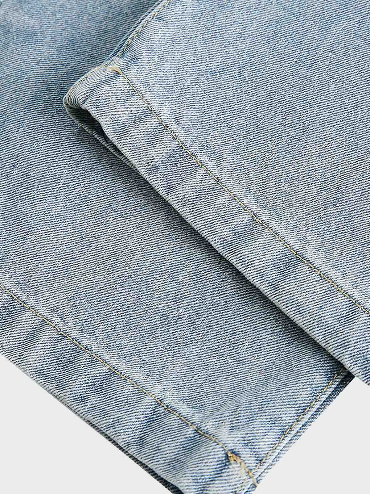 ウォッシュ加工されたデニム生地を使用しており、これによりパンツはより柔らかく、カジュアルな色のグラデーションが生まれ、レトロでありながらもファッショナブルです。水洗いの効果により、各パンツは独自の外観を持ち、着用者にユニークな個性を提供します。