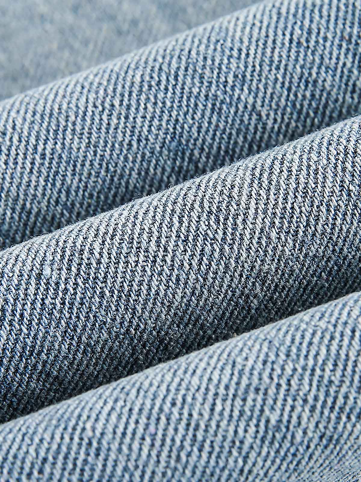 ストレートカットのデザインで、さまざまな体型に合わせやすく、十分な快適性と動きやすさを提供します。膝部分の自然なしわ加工は、長時間着用したジーンズに形成される自然なしわを模倣し、自然な質感を加えています。
