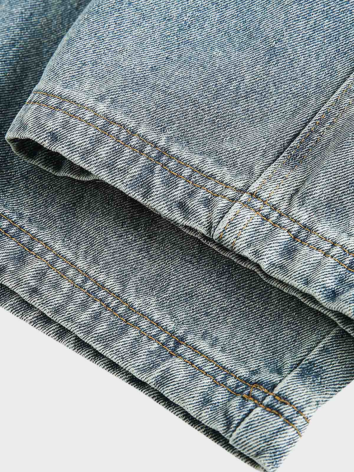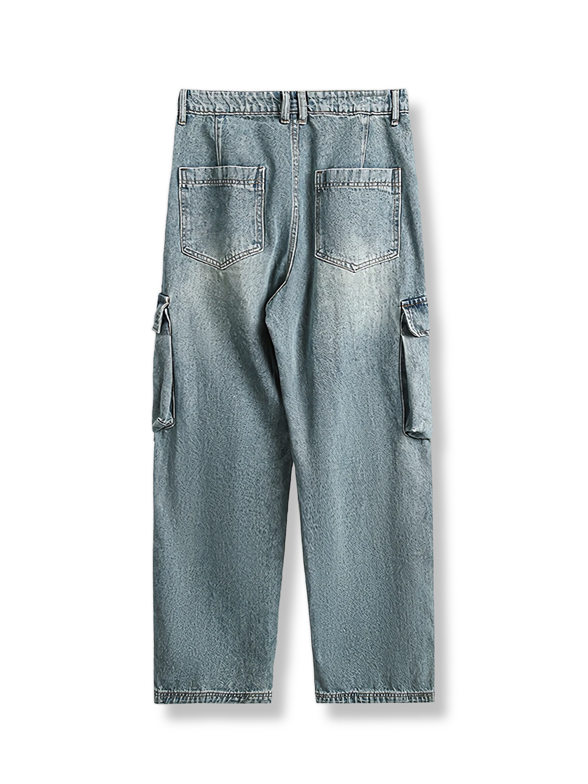 このストレートデニムパンツは、独特な立体ポケットデザインでレトロスタイルを表現し、1990年代に流行した実用的な服装の特徴を復活させています。このデザインは、デニムパンツの機能性とファッション性を融合させ、追加の収納スペースを提供するだけでなく、全体のスタイルにカジュアルで粗野な美学を加えています。
