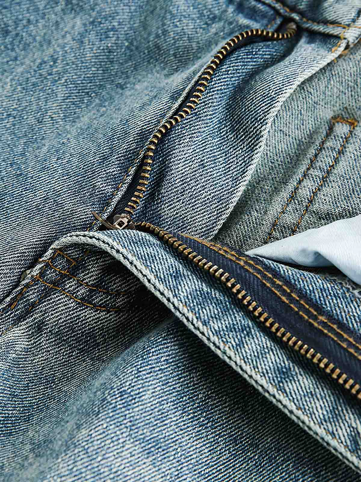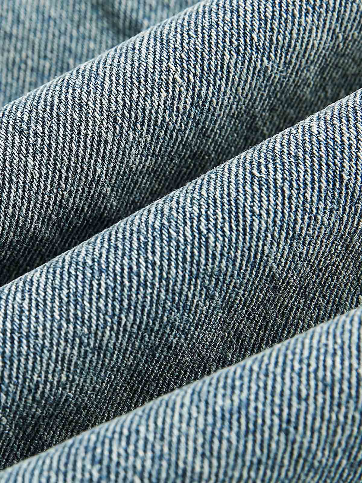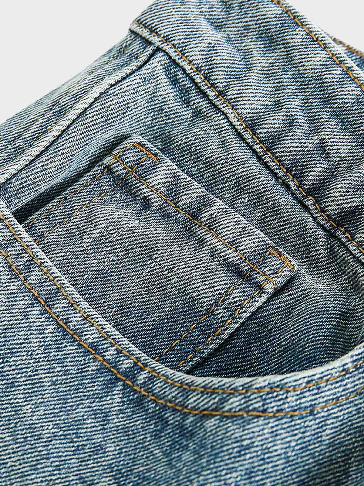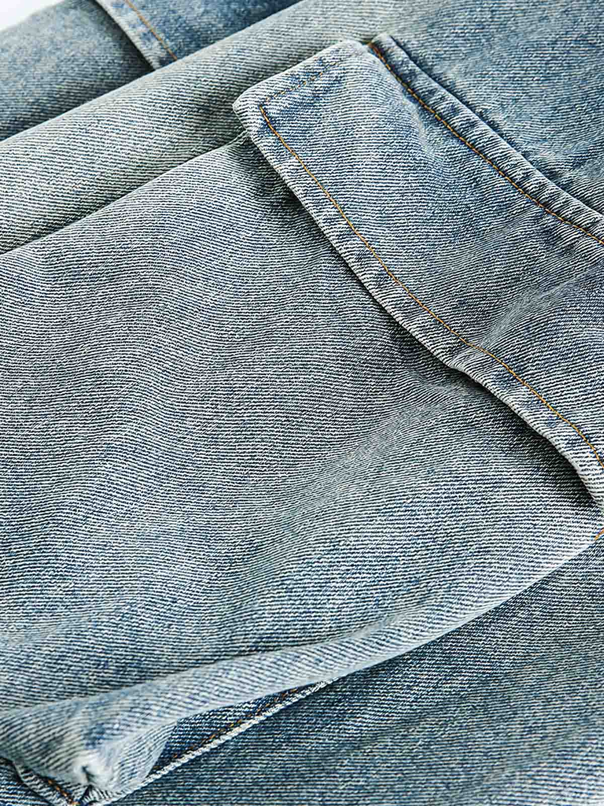 高品質なデニム素材を使用し、自然なウォッシュ効果で、わずかな色落ちや色の変化を表現し、クラシックなデニムの魅力を演出しています。素材は慎重に選定され、耐久性と快適な着用感を保証します。立体ポケットのデザインは実用的でありながら、ラインと形状がパンツのデザイン感を高めています。