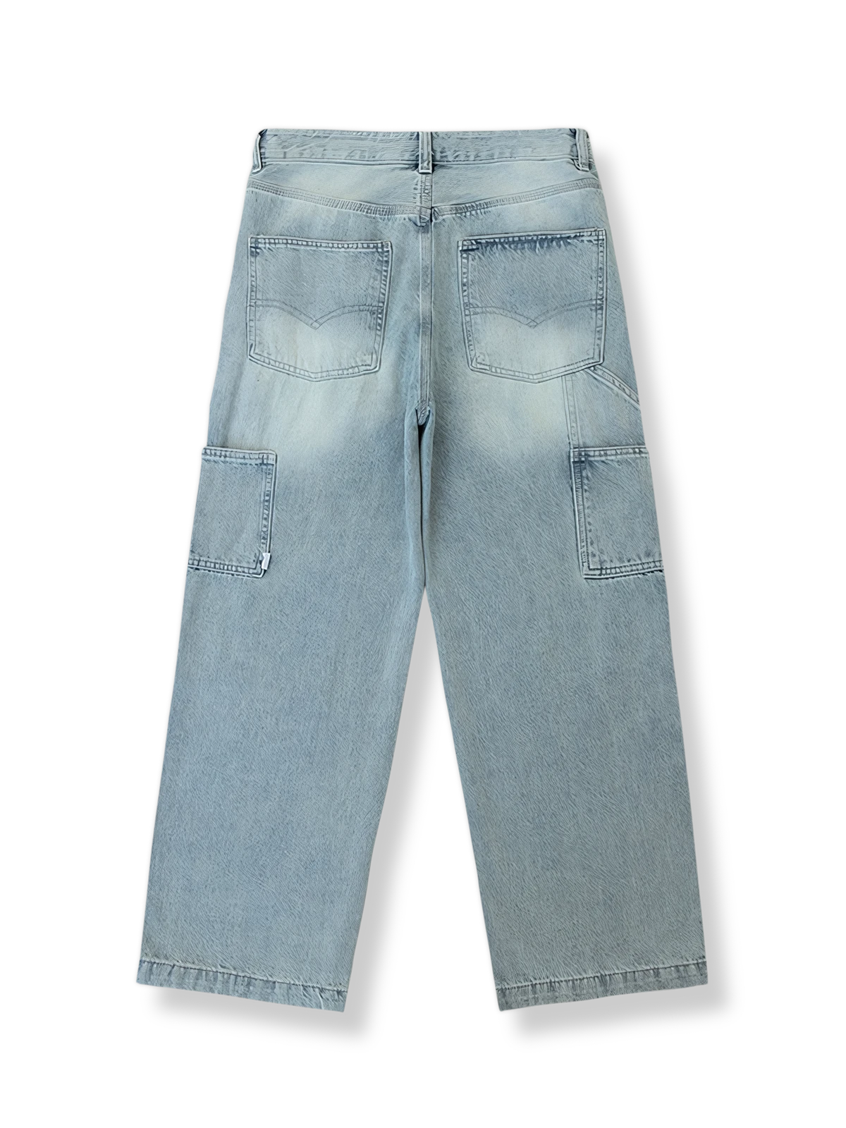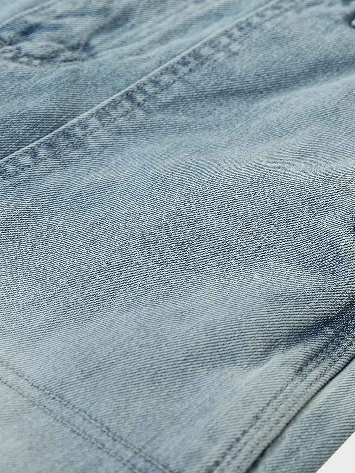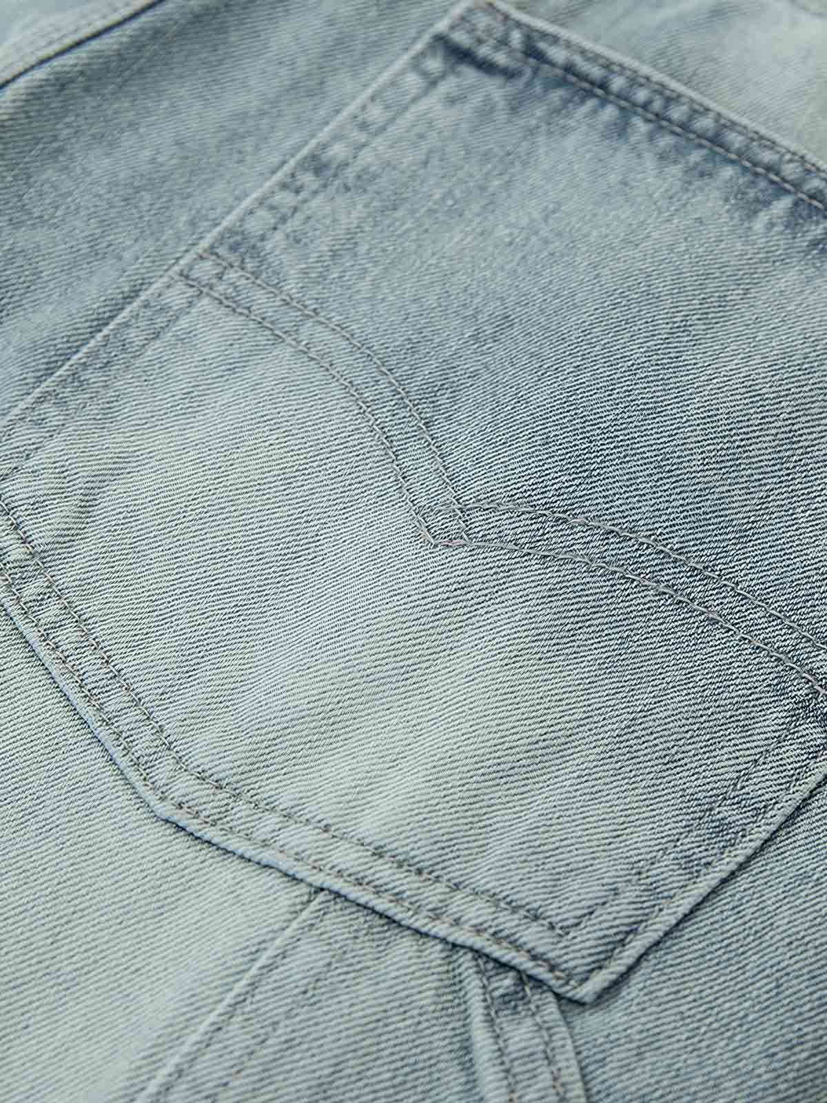 耐久性と柔らかさを兼ね備えたクラシックなデニム素材を使用し、長時間の着用に適しています。パッチワークの継ぎ目は、二重の縫い目で強化され、衣類の耐久性と機能性を保証します。大容量のポケットは、ワークスタイルを強調するだけでなく、パンツの実用性も向上させています。
