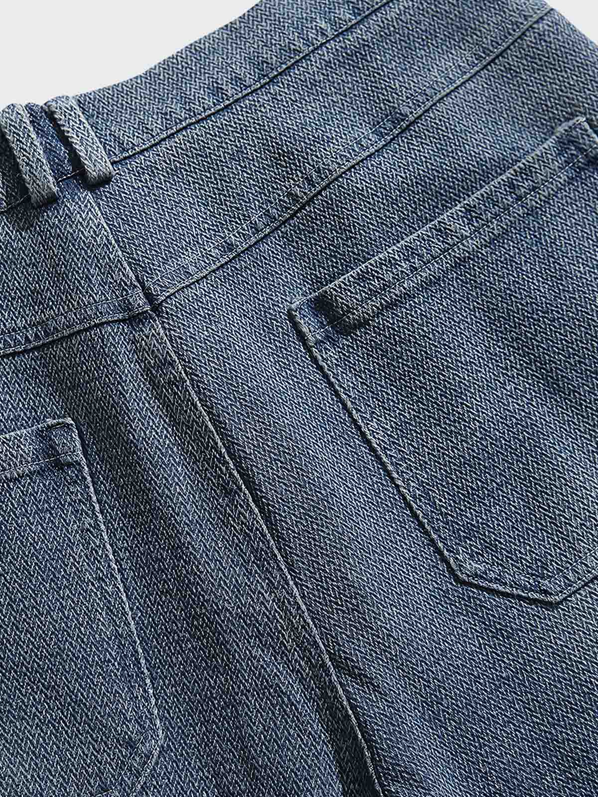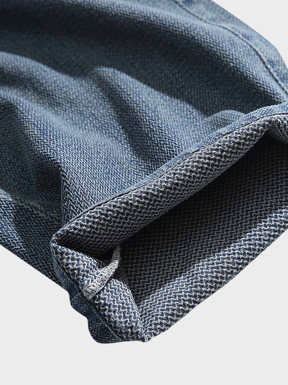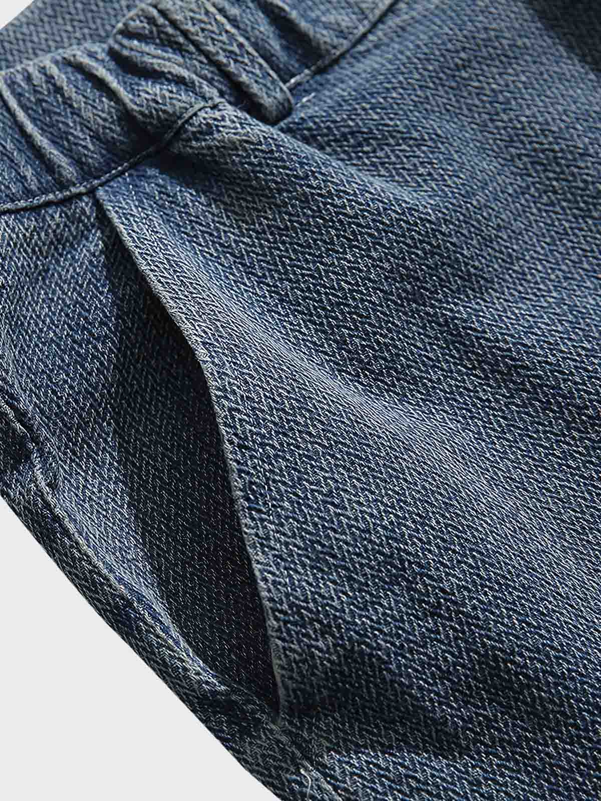 ウエスト周りはゴムが入っており、快適なフィット感を提供します。デニムの縫製やカットのディテールにはクラシックな要素が取り入れられており、カジュアルながらも洗練された外観を演出しています。