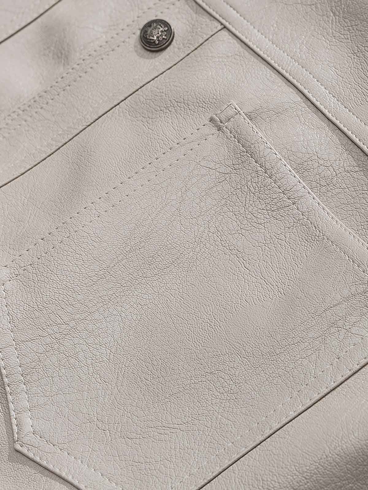 このアイテムは、立体的なポケットが特徴的なワークスタイルのレザージャケットです。PUレザーの質感が洗練された印象を与える一方で、綿とポリエステルの混紡は柔らかさと通気性を提供します。
