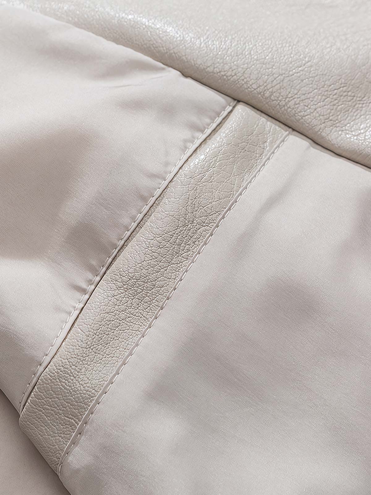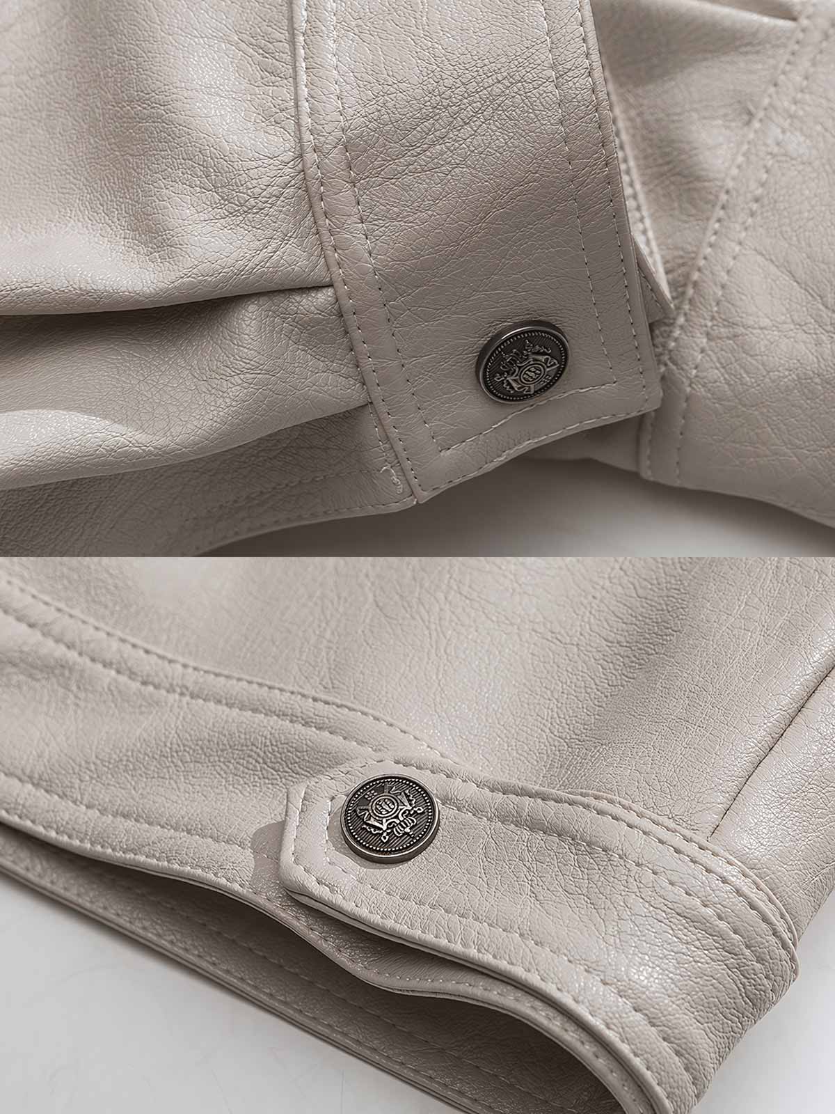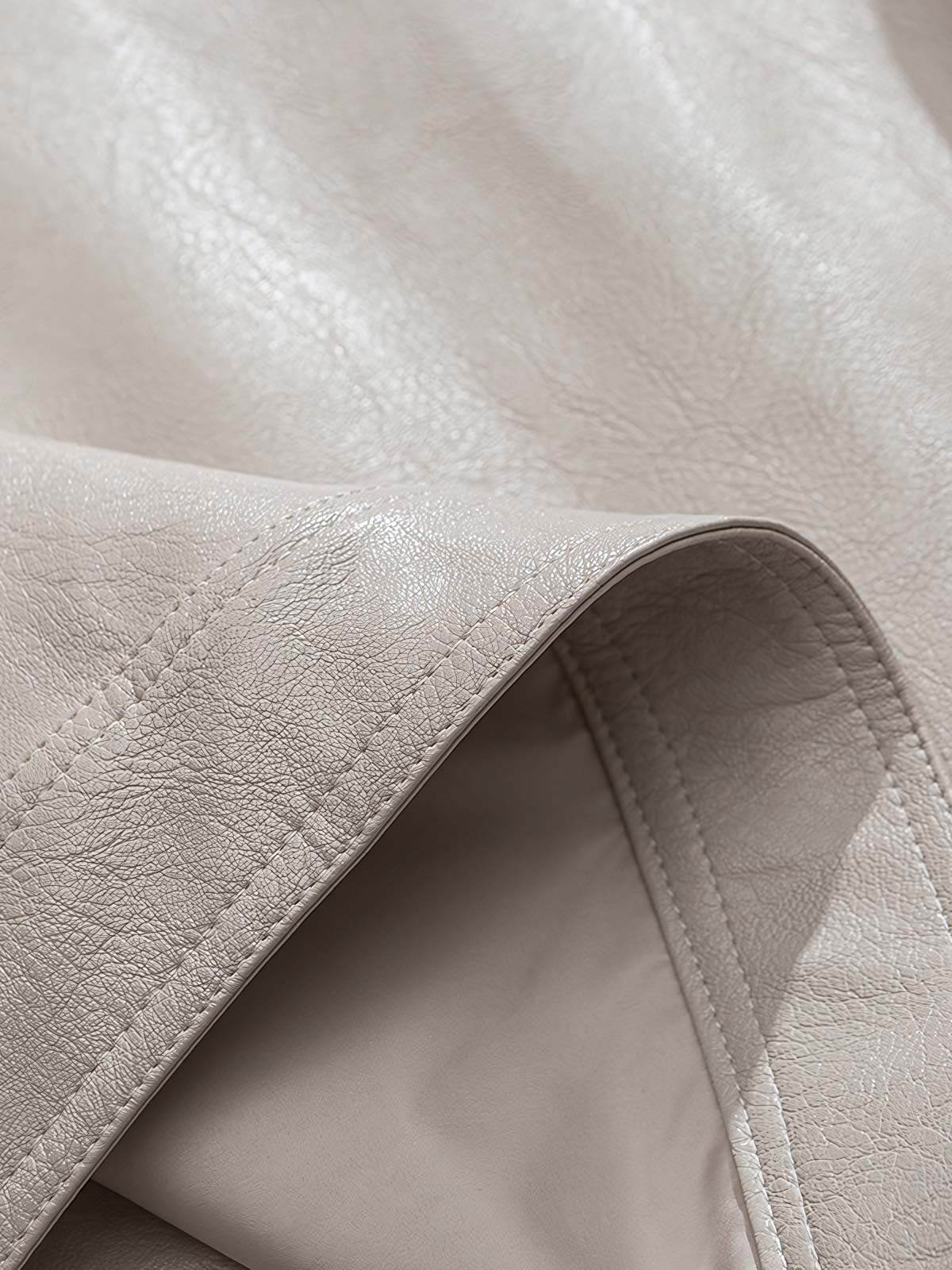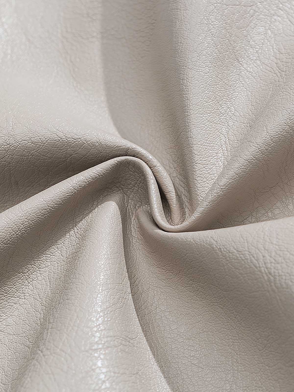 PUと綿、ポリエステルの混紡素材は、レザーのルックスと感触を模倣しつつ、より実用的で快適な着心地を実現しています。この素材は軽量でありながらも、保温性に優れ、柔軟性と耐久性を兼ね備えています。