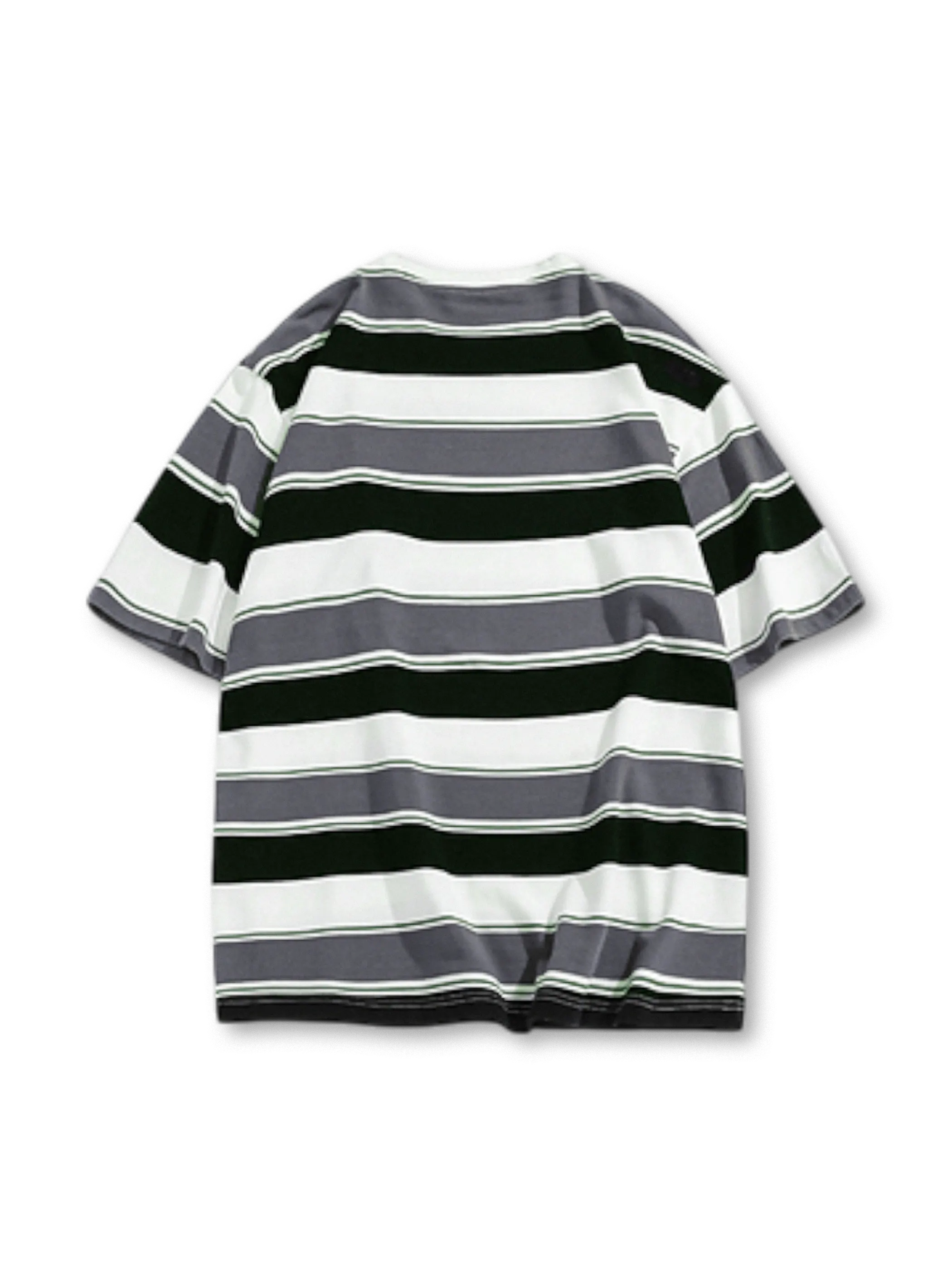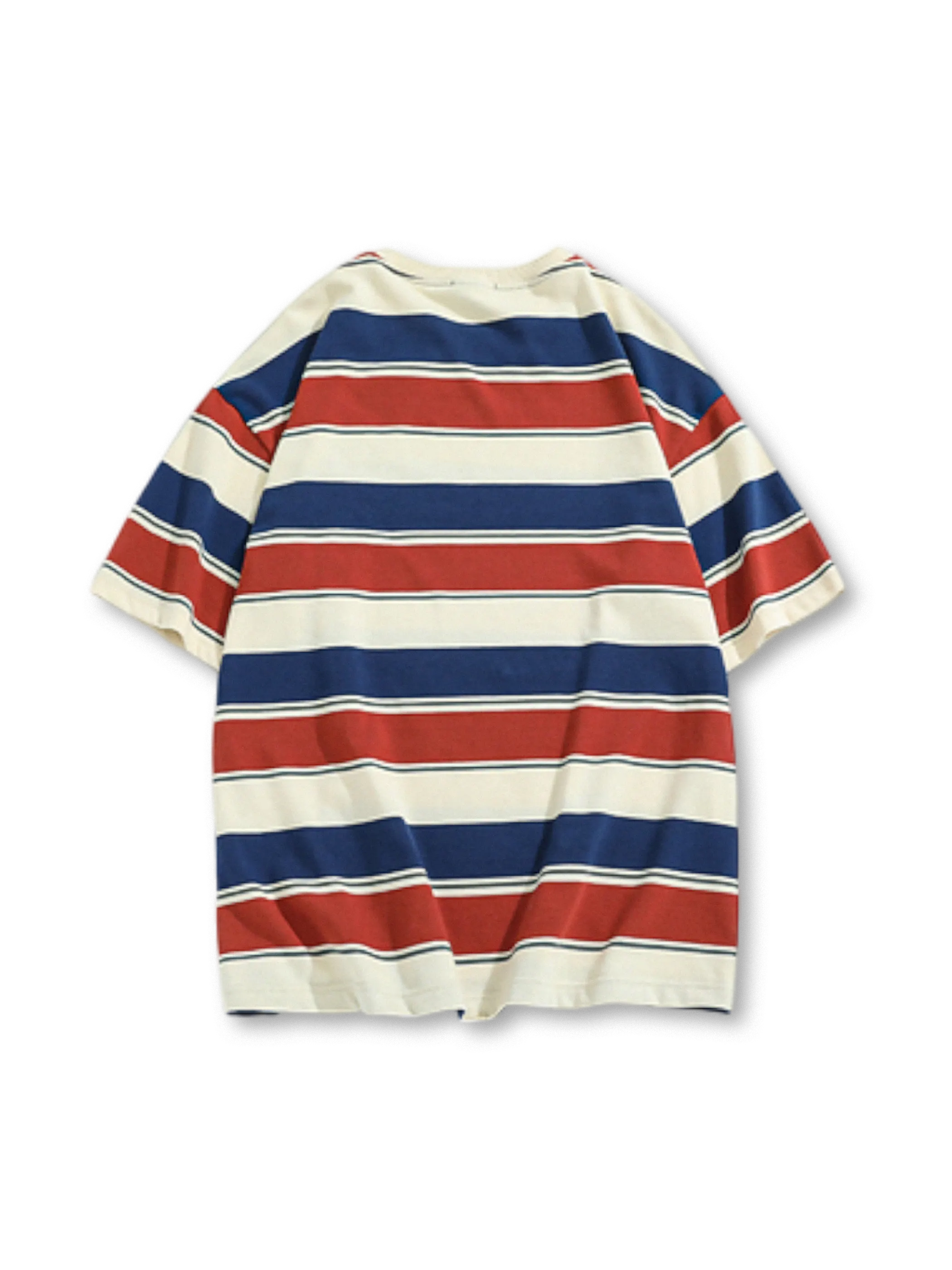 80年代のアメリカ・スケート&サーフシーンから着想を得たストライプデザインを採用し、ヴィンテージライクなウォッシュ加工で程よくこなれた表情を演出。ドロップショルダーとゆったりシルエットがリラックス感を高め、タフなステッチワークが耐久性を確保しつつ日常にひと匙のヴィンテージムードをプラスします。