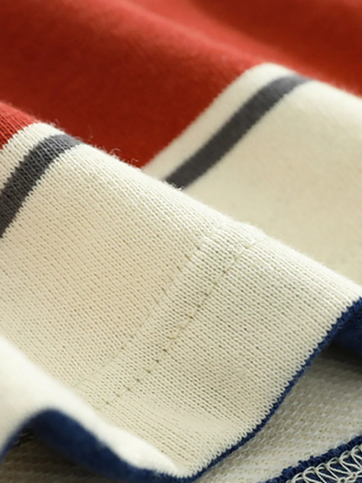 アメリカのストリートカルチャーを映した大胆な配色ストライプが印象的な一枚。