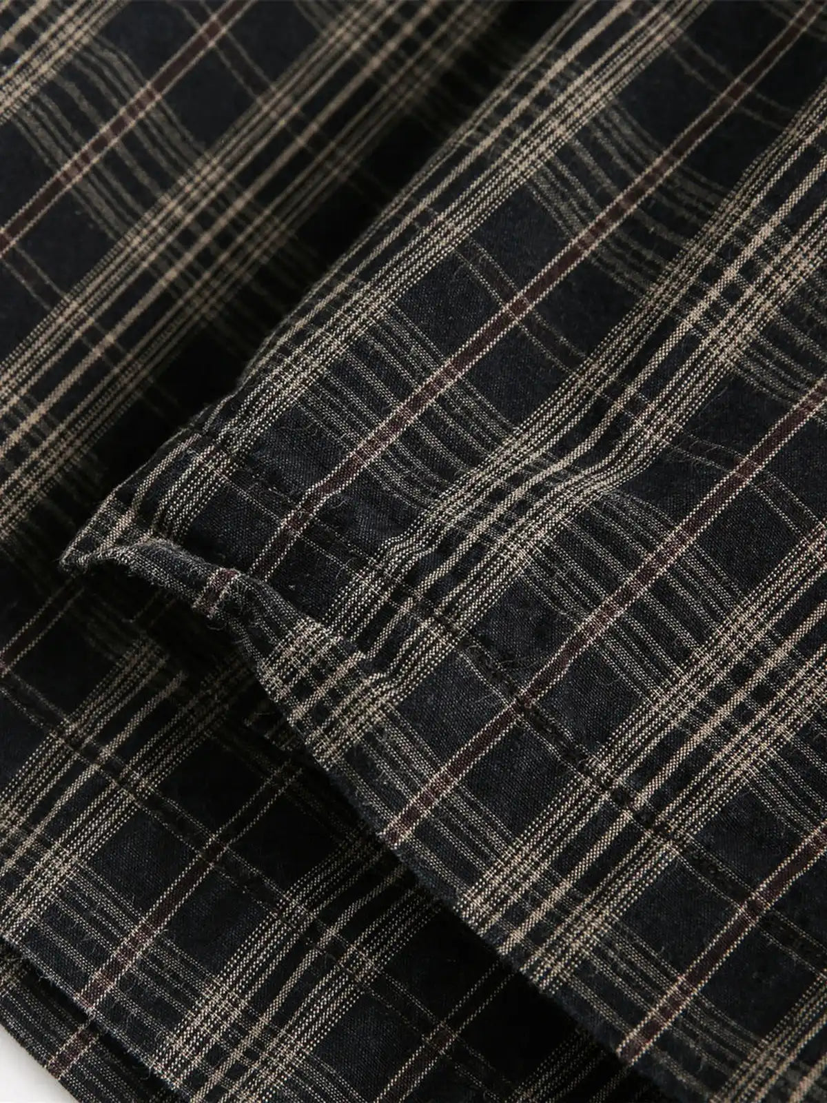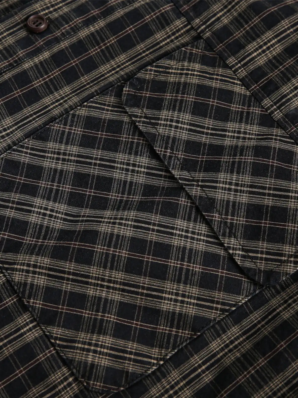 第二次大戦後のアメリカンワークシャツに着想を得て、あえて表面を擦り切れさせたダメージディテールと深みのあるチェック柄を組み合わせました。コットン100%の中厚生地は、ハードワークにも耐えるタフさを保ちつつ、洗い込むほどに柔らかく体に馴染みます。前身頃にさりげなく配した補修風パッチと、ややボックスシルエットのルーズフィットが、ヴィンテージならではの無骨な味わいを演出。ワークパンツやデニムとも好相性で、洗練されたミリタリーテイストを日常に取り入れられます。