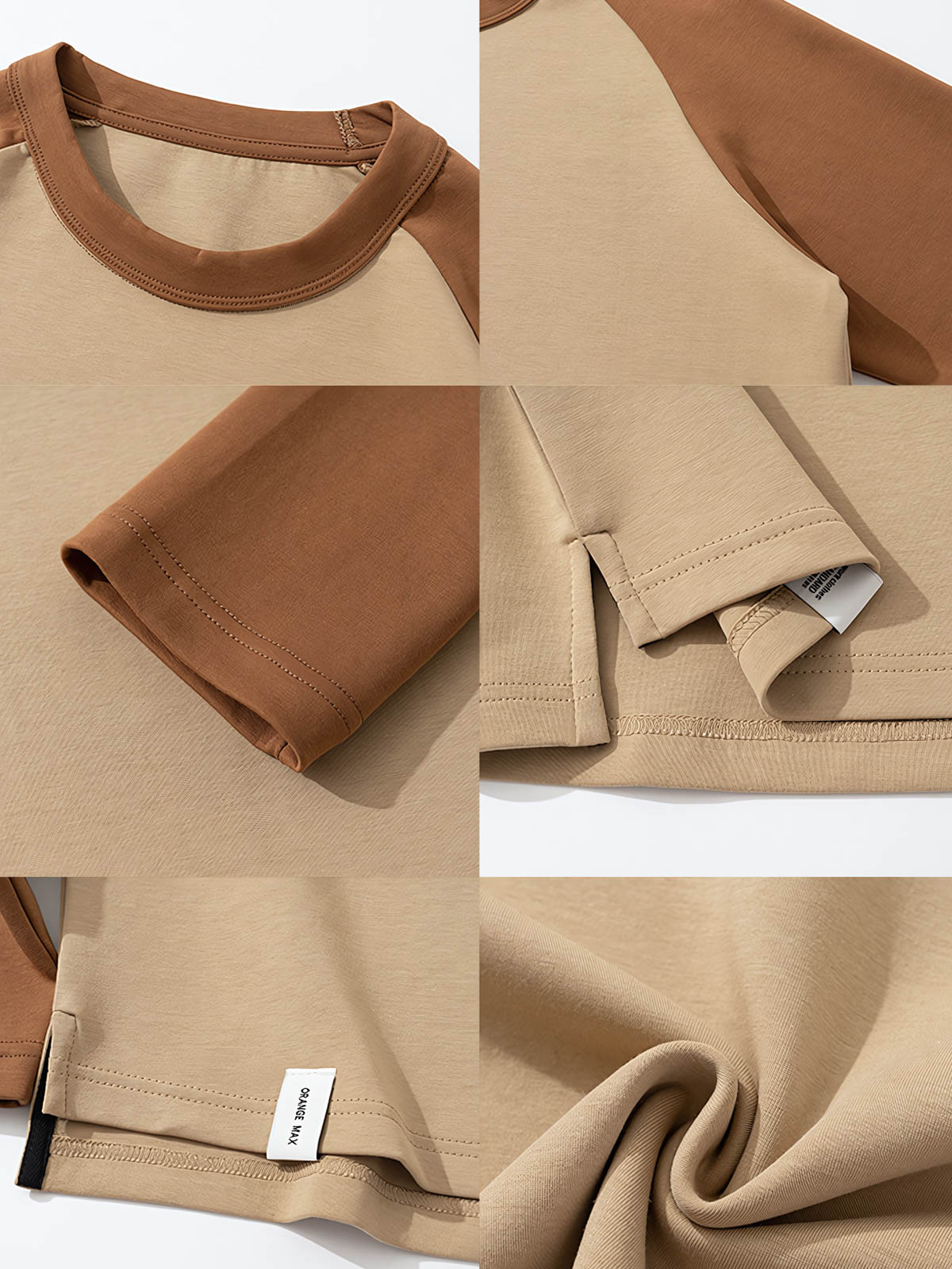 この長袖Tシャツシリーズは、クラシックなベースボールシャツのデザイン要素を取り入れています。特に色のコントラストと袖口の処理においてです。ベースボールシャツはアメリカの野球文化に起源を持ち、その特徴的なカラーブロック袖口は徐々にストリートファッションの象徴的な要素に進化しました。