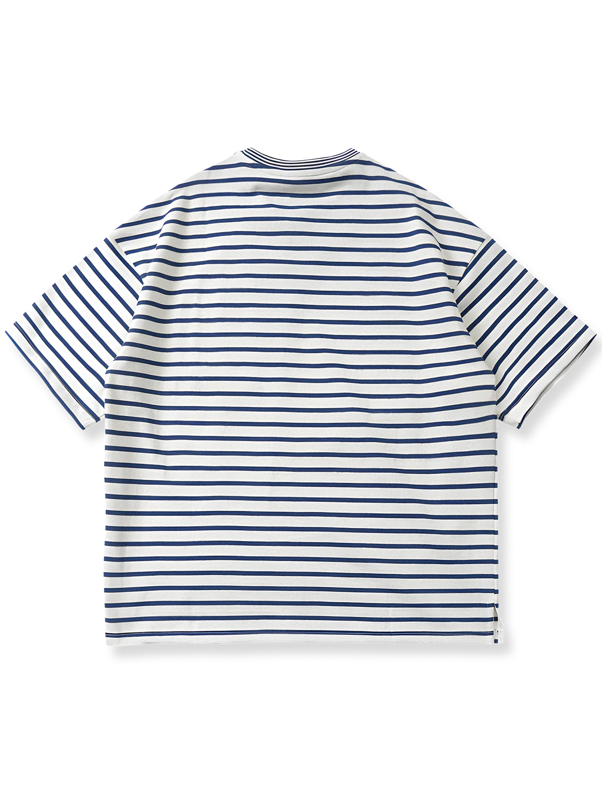 この半袖Tシャツは、伝統的なネイビーストライプをデザインのインスピレーションにし、強いネイビーソウル感を表現しています。リブ編み c形襟と不規則なポケットデザインは、質感と独特感を増しています。ゆったりしたシルエットと裾のスリットデザインは、さらにカジュアル感を高めています。