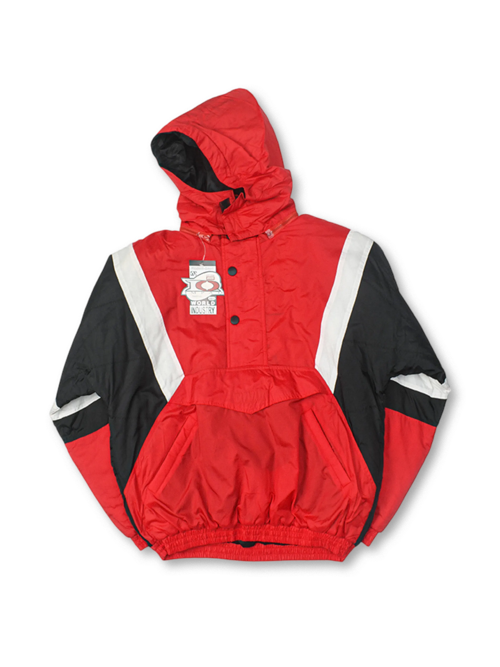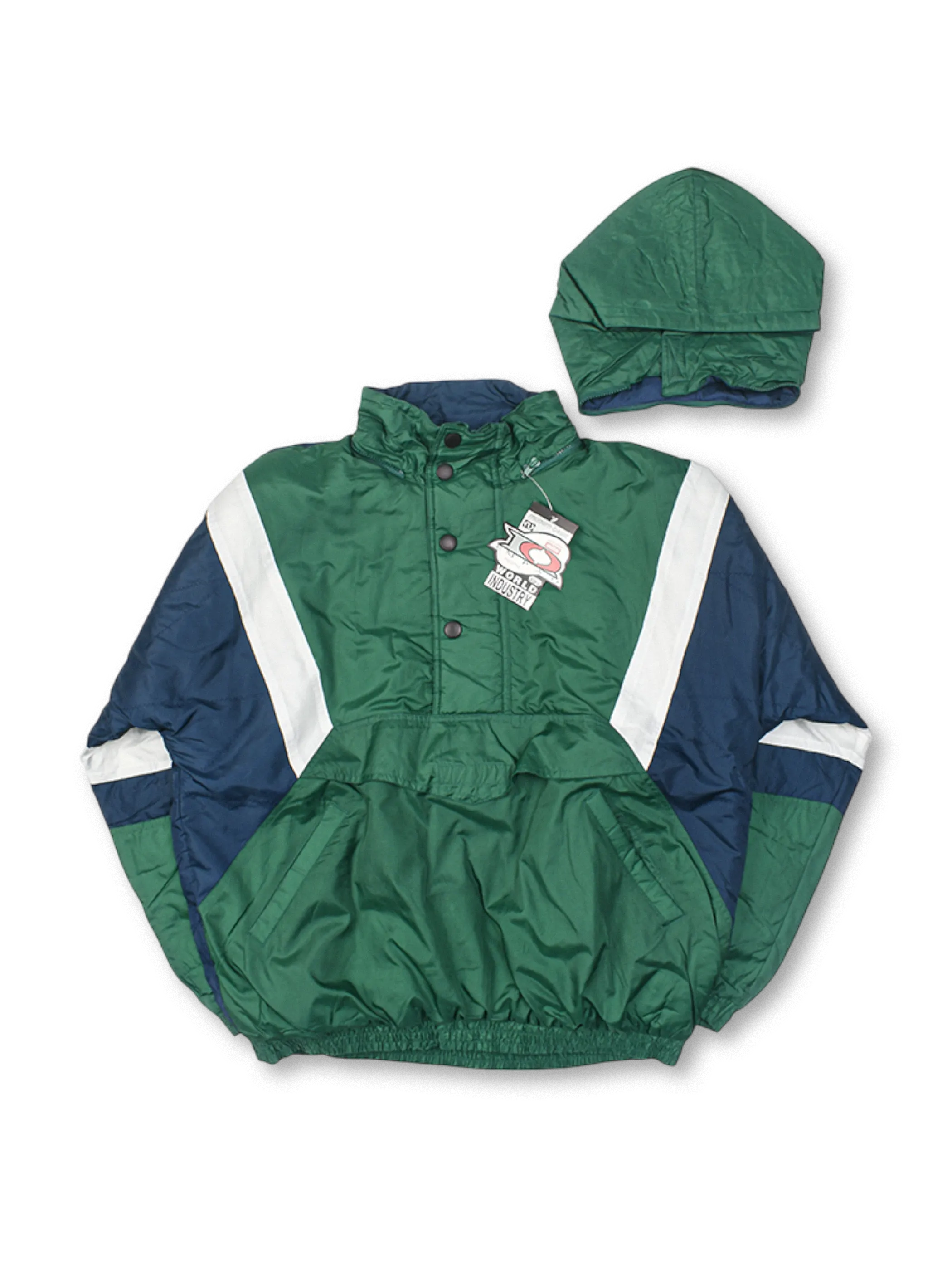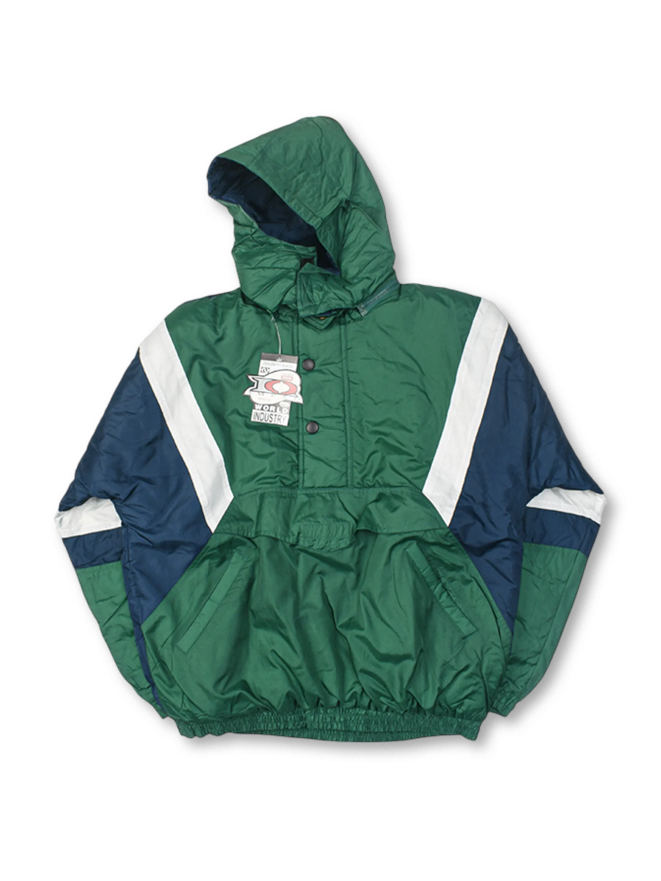 レトロなカラーブロックデザインを採用し、80sテイストを強調した上下セットアップ。ナイロン素材の軽やかさと中綿による保温性を兼ね備え、秋冬のアクティブシーンやストリートスタイルにもマッチします。上下別々でも着回しができ、コーディネートの幅を広げる万能アイテム。ゆったりとしたシルエットで快適に着用でき、スポーティかつヴィンテージ感あふれる雰囲気を演出します。