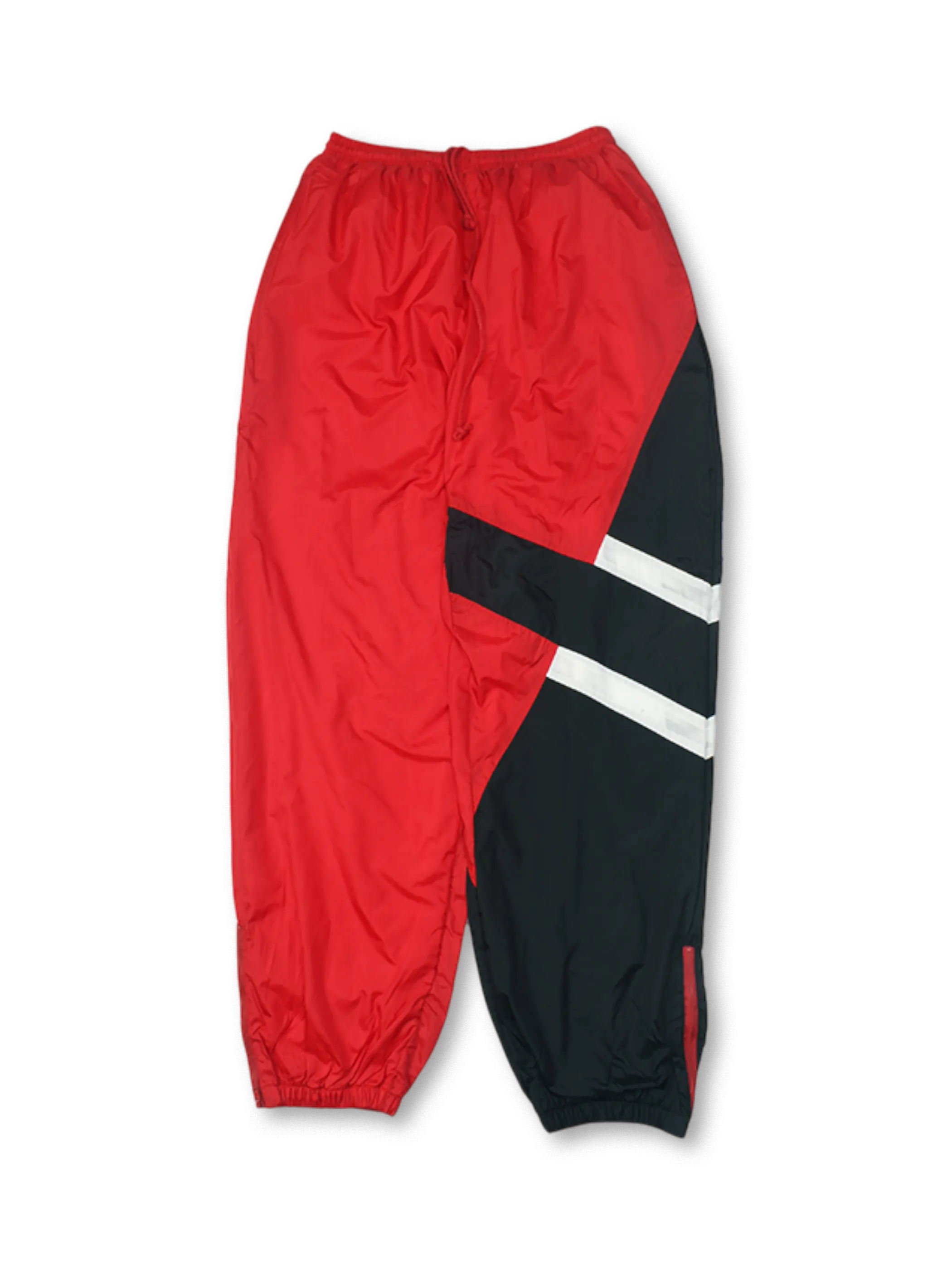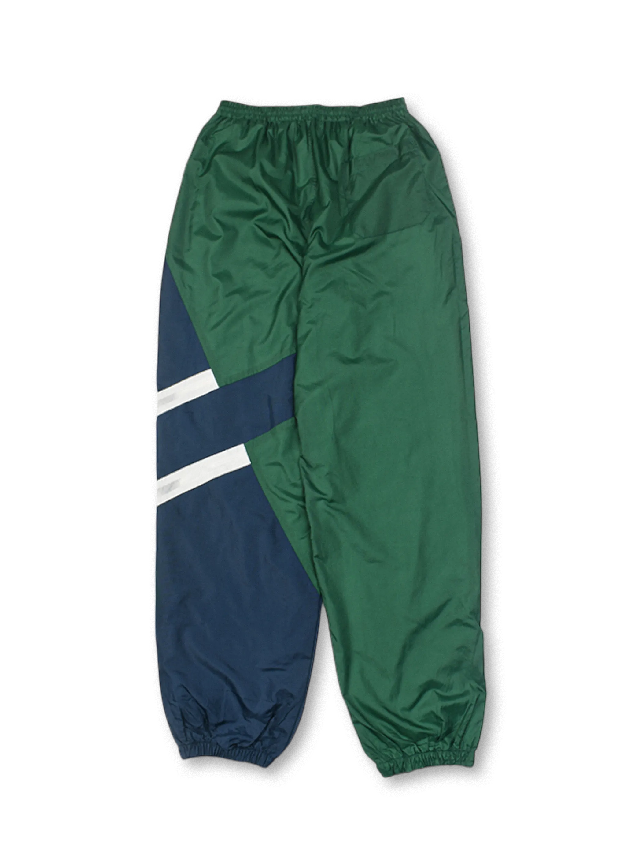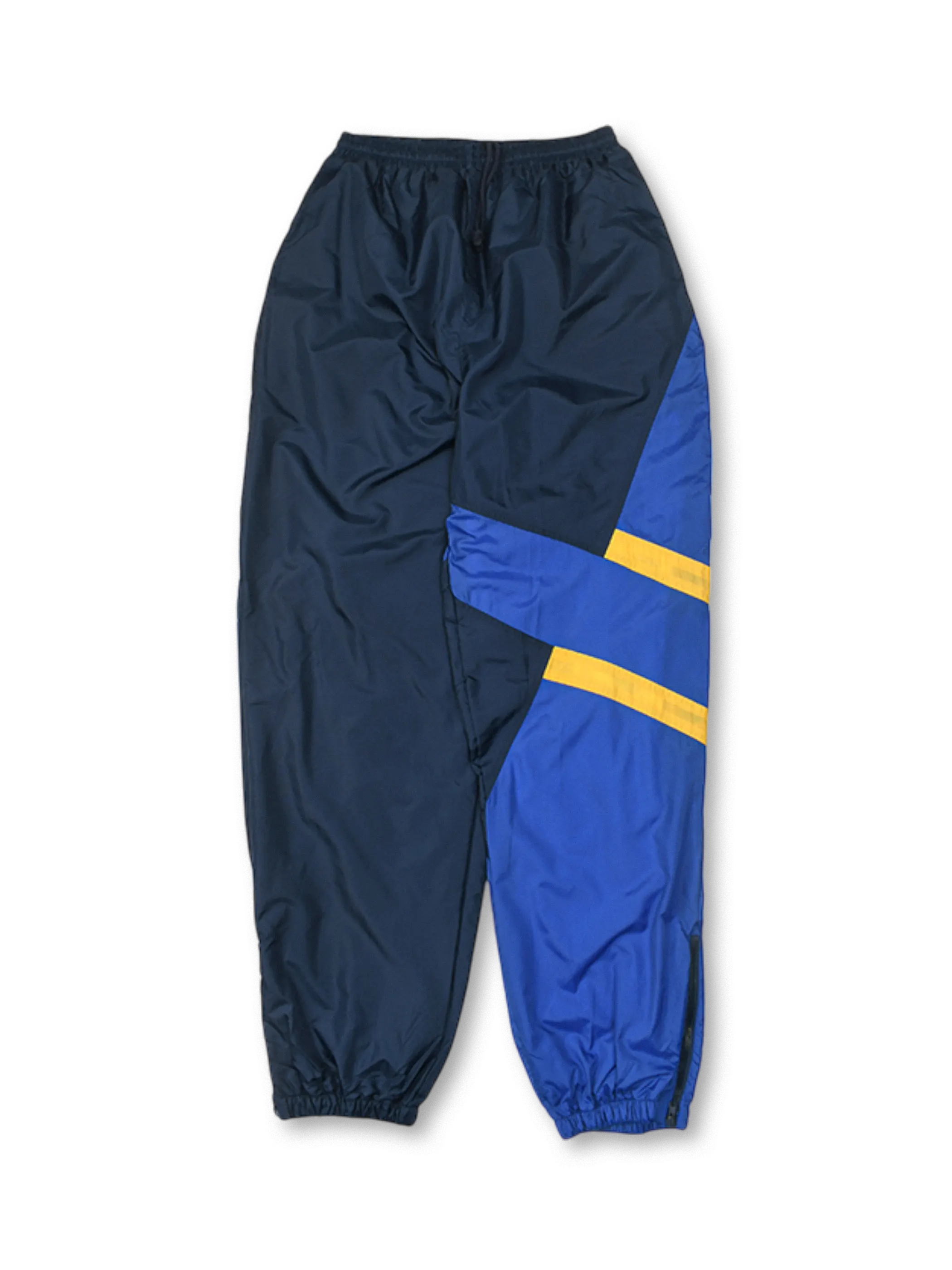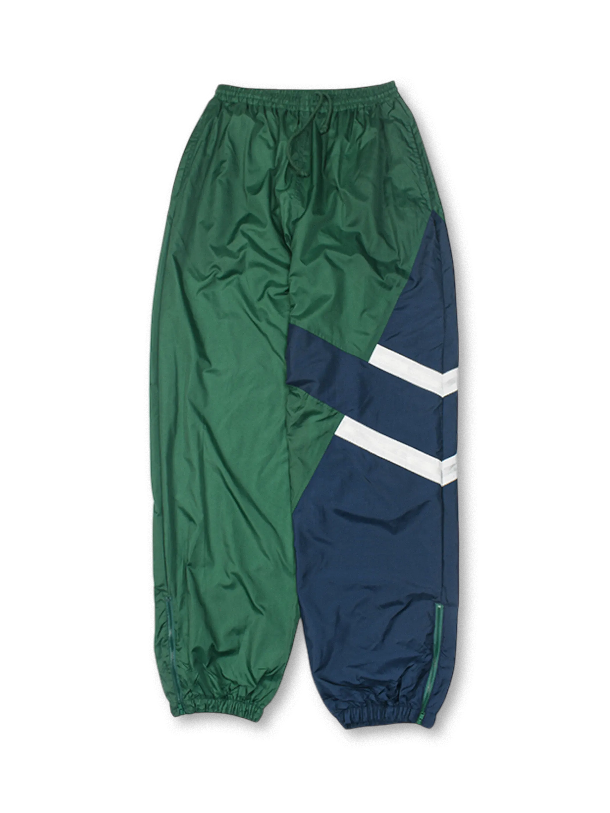 80年代風の配色デザインが特徴の中綿入りルーズシルエット、上下セットのスポーツウェア。