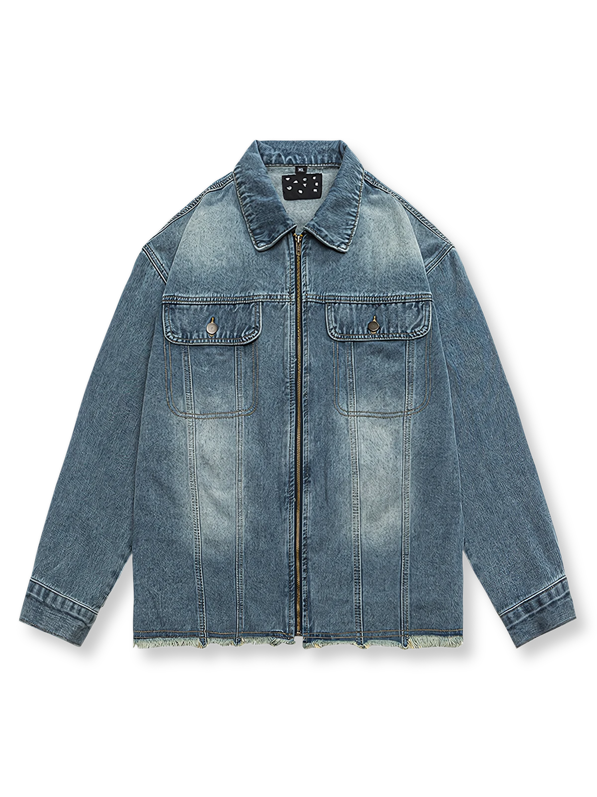 デニムはウォッシュ加工により、ヴィンテージのある効果が表現され、ジャケットに風合いと特徴が加わります。折り襟デザインで、着こなしの幅を広げます。