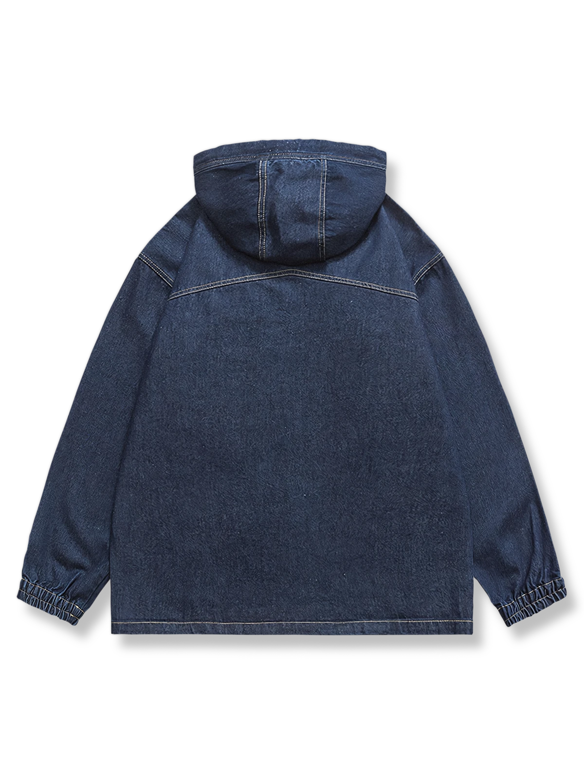 このジャケットは、伝統的なワークウェアスタイルと現代の美学を融合させ、20世紀中頃のアメリカのカジュアルファッションの人気を反映しています。シンプルなカットとフードデザインが、洗練された都会的な印象を与えています。