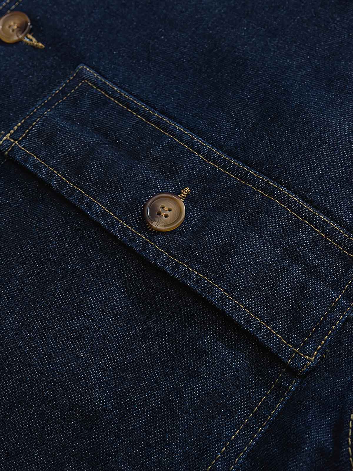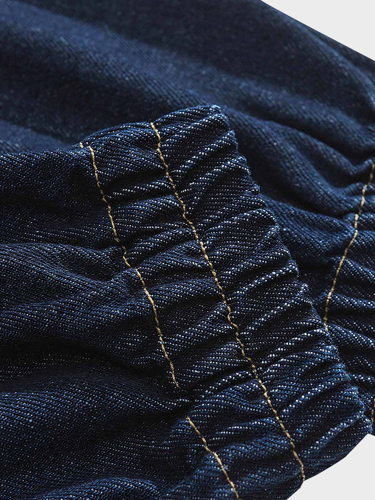 耐久性があり、お手入れが簡単な高品質デニム生地を使用しています。金属のボタンとドローストリングのディテールは、ワークウェアの要素を加えるとともに、全体のデザインにアクセントを加えています。多機能ポケットは実用的で、現在のトレンドにも合っています。