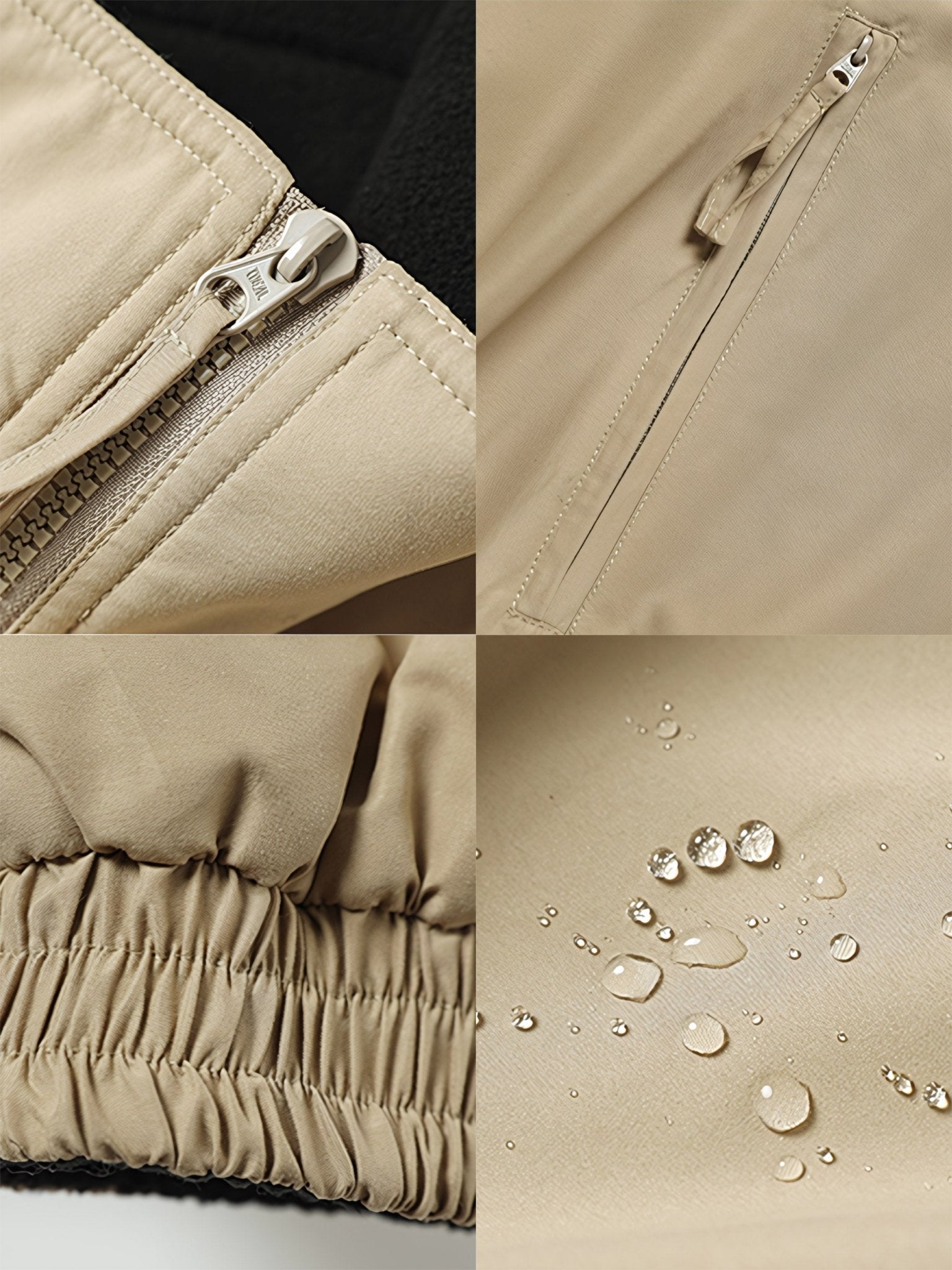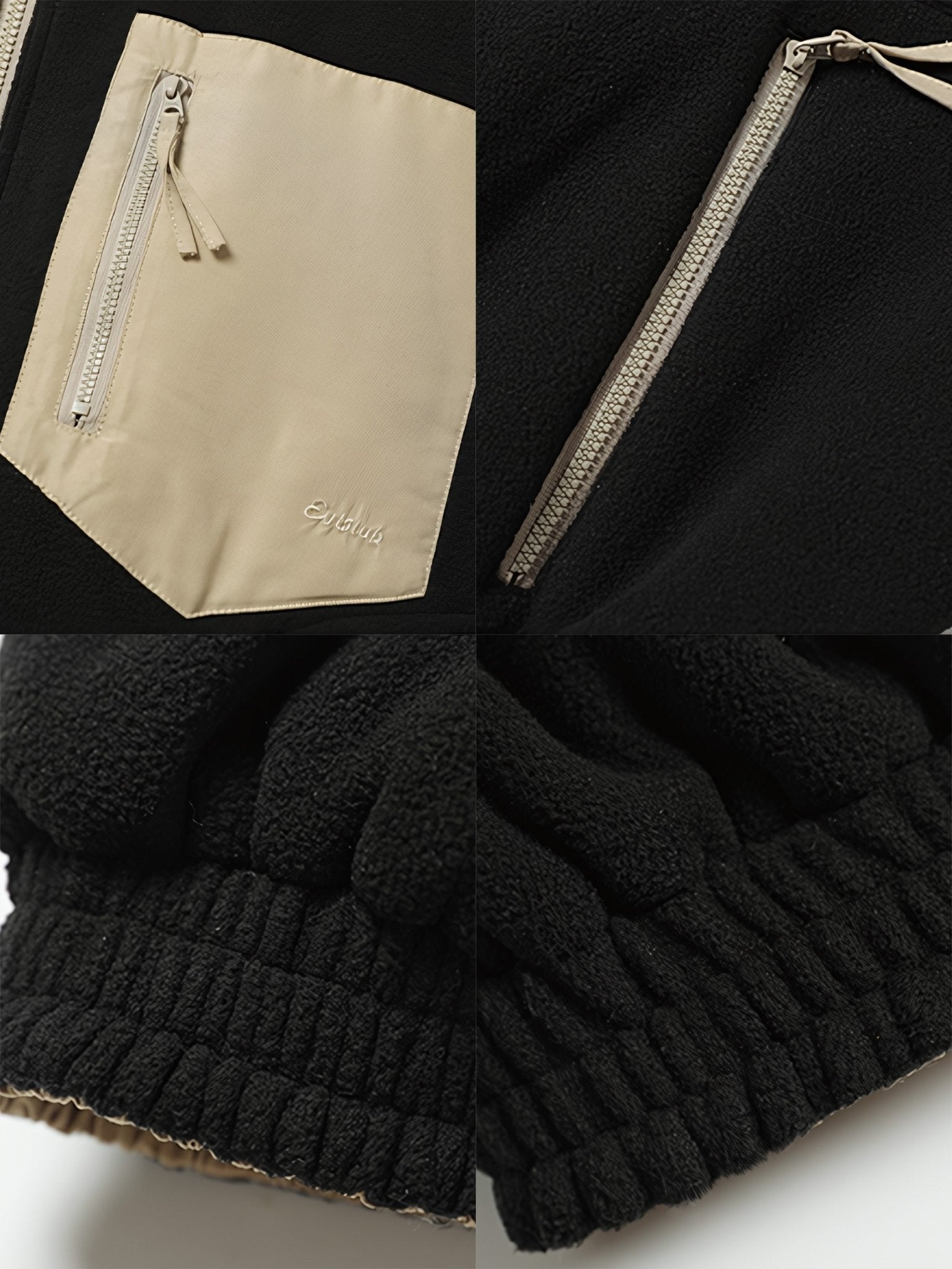 一方はフリース素材を使用し、通常、非常に保温性が高く柔らかい素材です。もう一方の面はポリエステル繊維で、軽量かつお手入れが簡単な素材です。この両面デザインは異なる素材特性を組み合わせ、さまざまな気候やシーンに対応できるジャケットを実現しています。