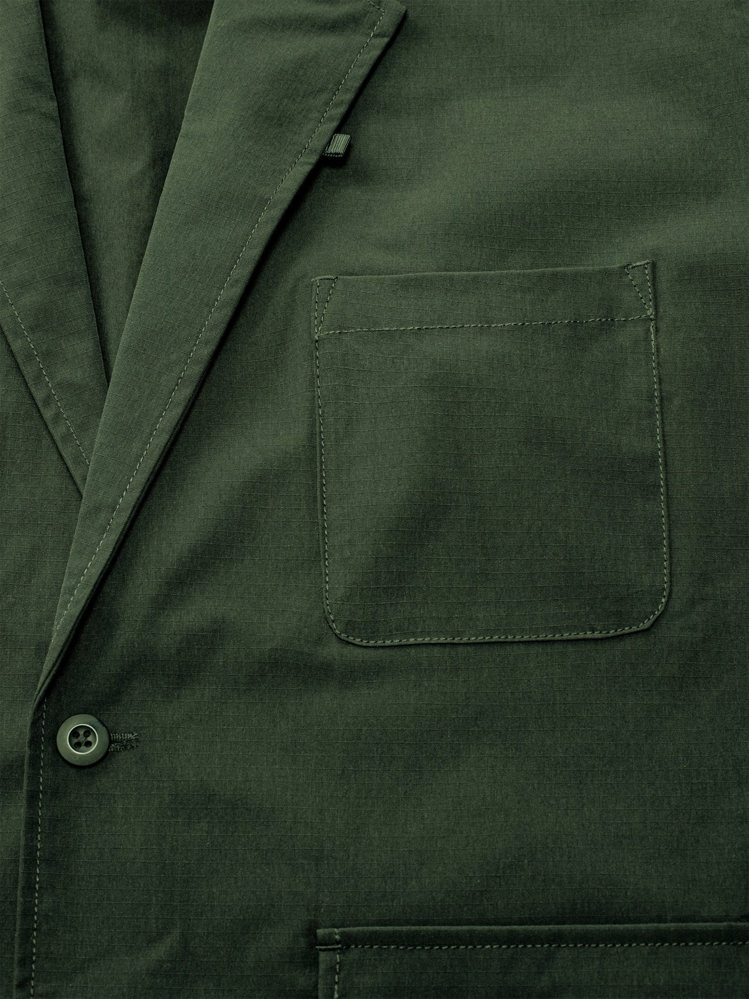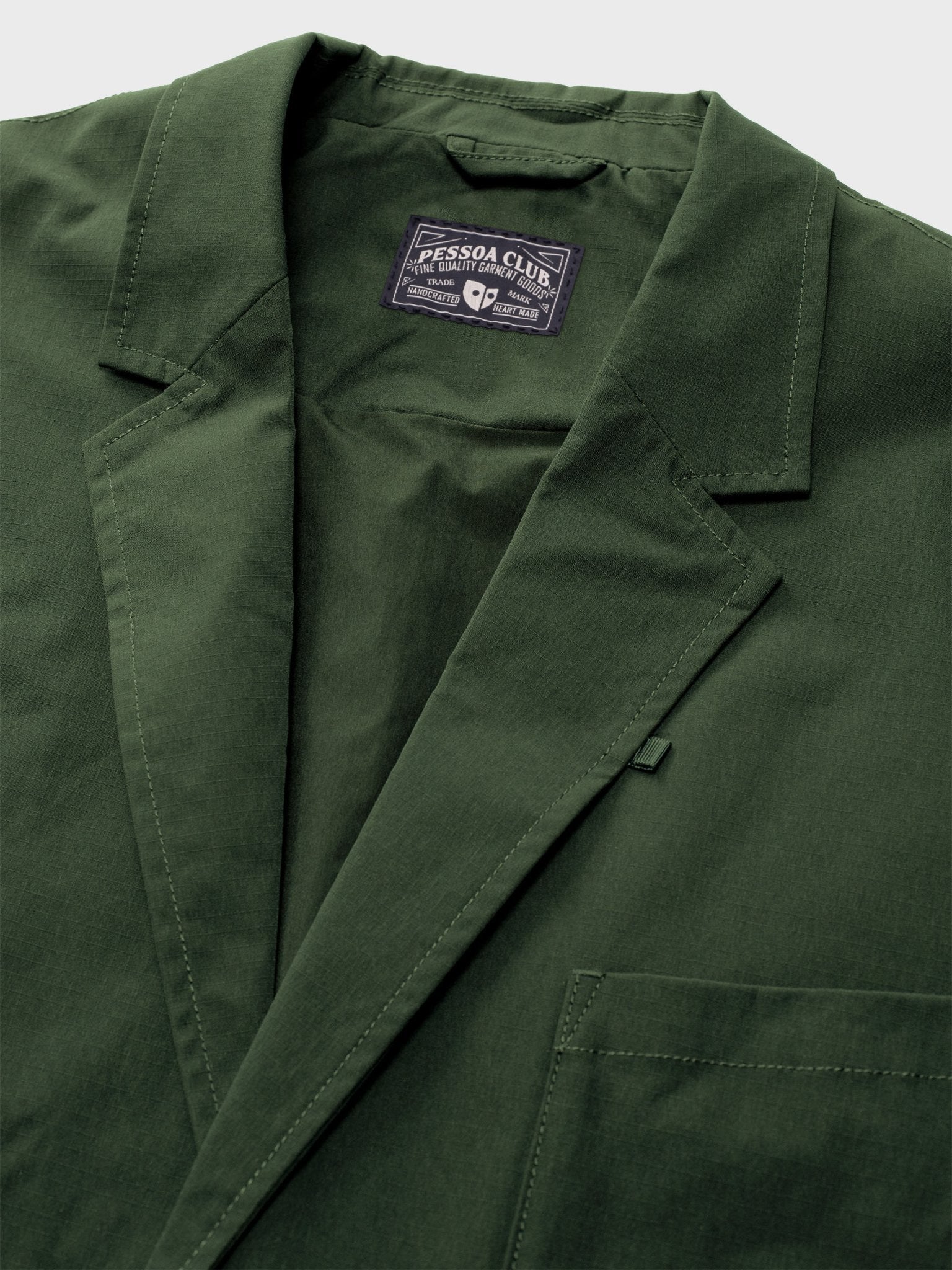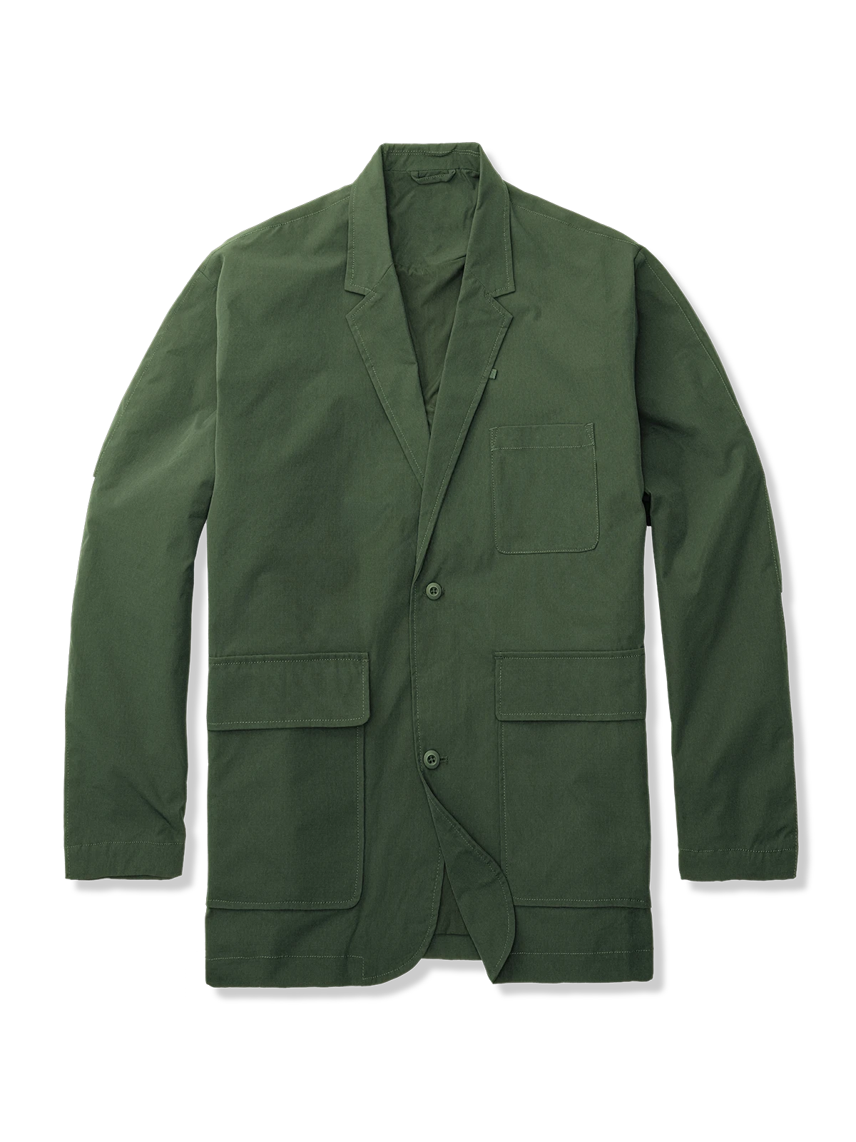 オープンカラーの首元で、快適な着用感を実現。フロントには3つの大きなパッチポケットを装備し、手ぶらで出かけることも可能です。また、スリーブにはタックが入っており、幅広いシルエットが男らしいワイルドな雰囲気を演出します。定番の2つボタンで、普段使いやビジネスシーンにもぴったりです。