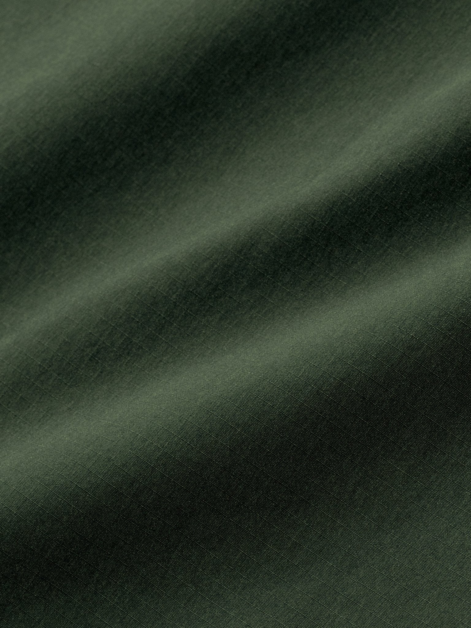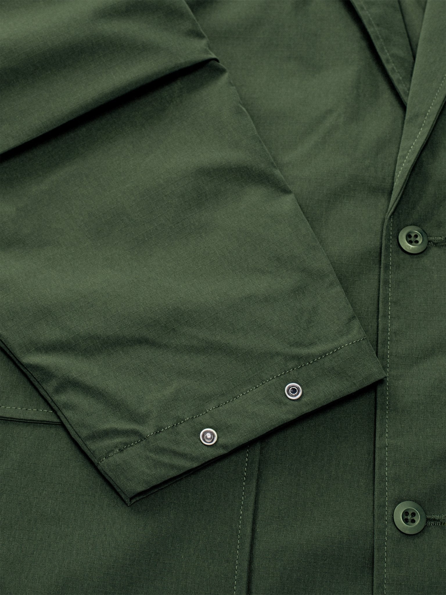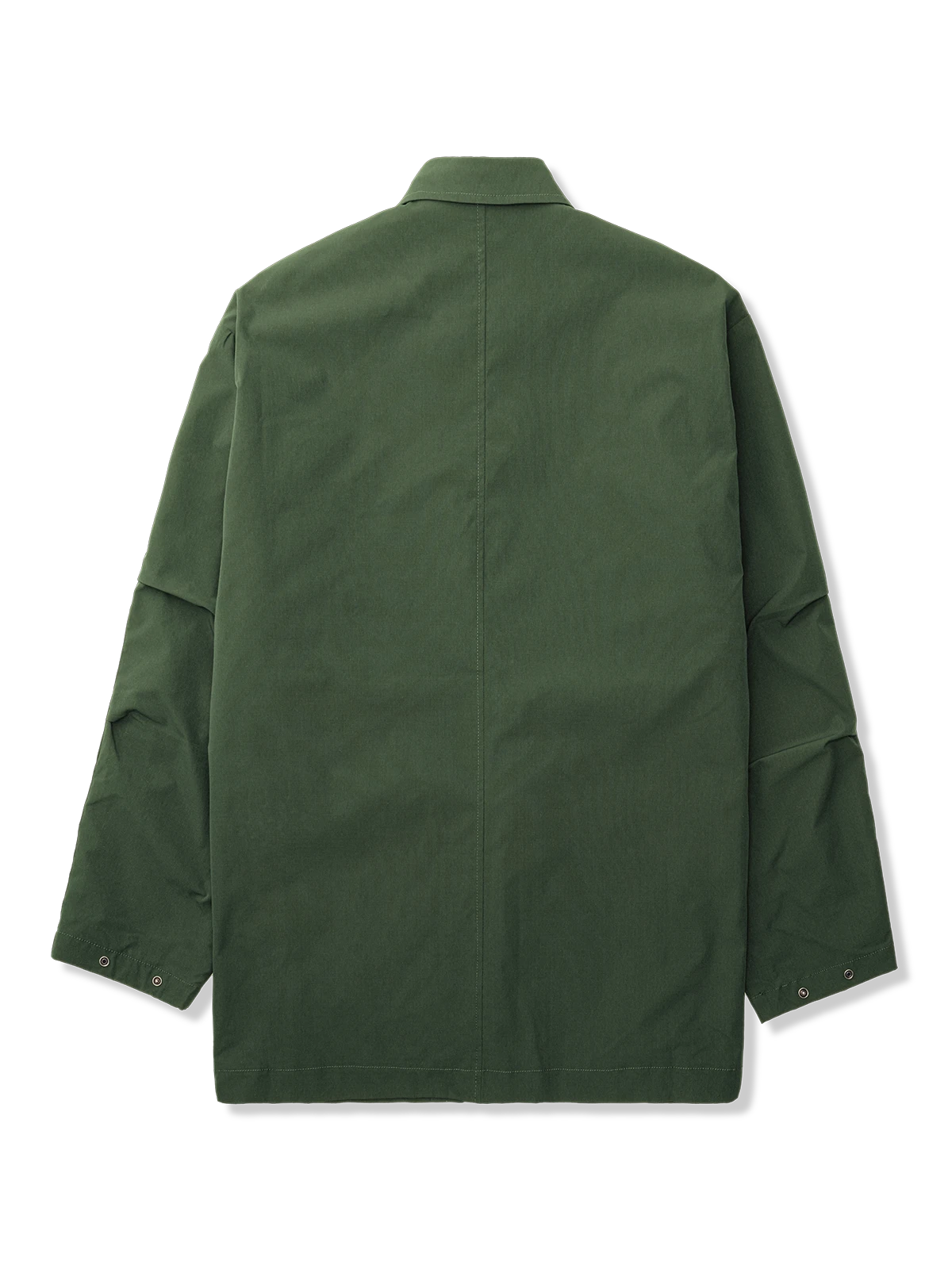スリーブにタックが入っており、動きやすくなっています。フロントには大きなパッチポケットが3つ装備され、手ぶらで出かけることができます。
