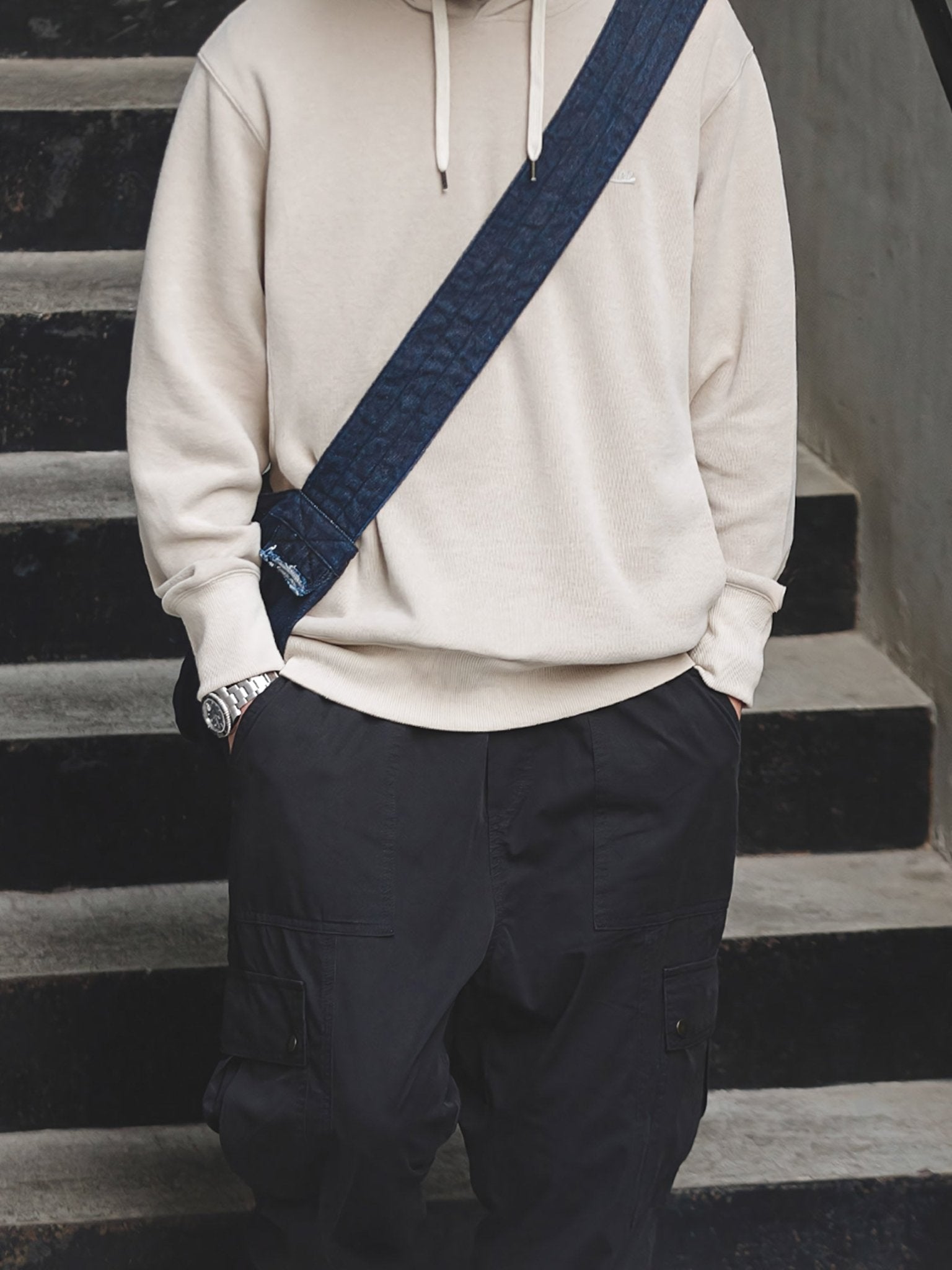 コットンを主成分とした生地が使用されており、暖かさと通気性を兼ね備えています。耐久性も備えた素材であり、長く愛用できるアイテムとして高い汎用性を持っています。