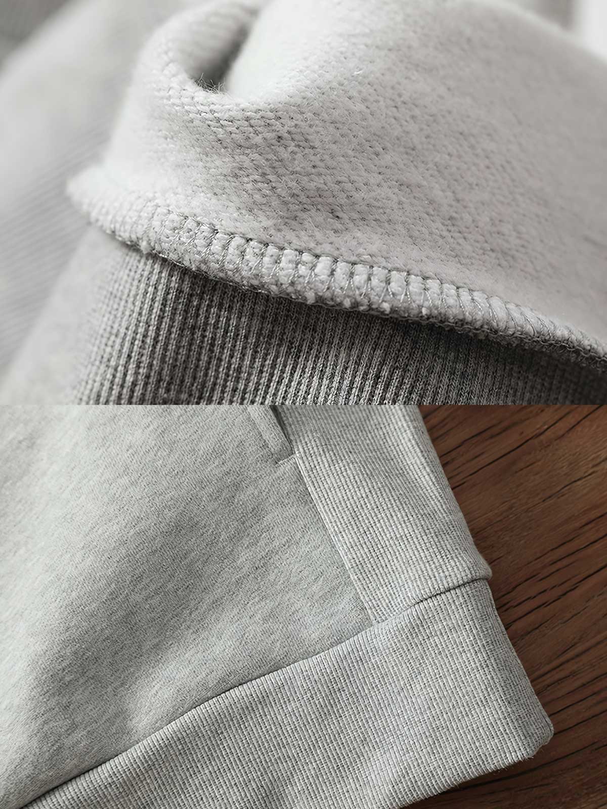 リラックスフィットを採用し、優れた動きやすさを提供します。内側には柔らかい生地を使用し、着心地を高めており、秋冬の着用や室内での暖かい環境に適しています。リブ編みのパネルデザインは視覚的に一貫性を破るだけでなく、服の伸縮性と適応性も高め、さまざまな体型に適合します。