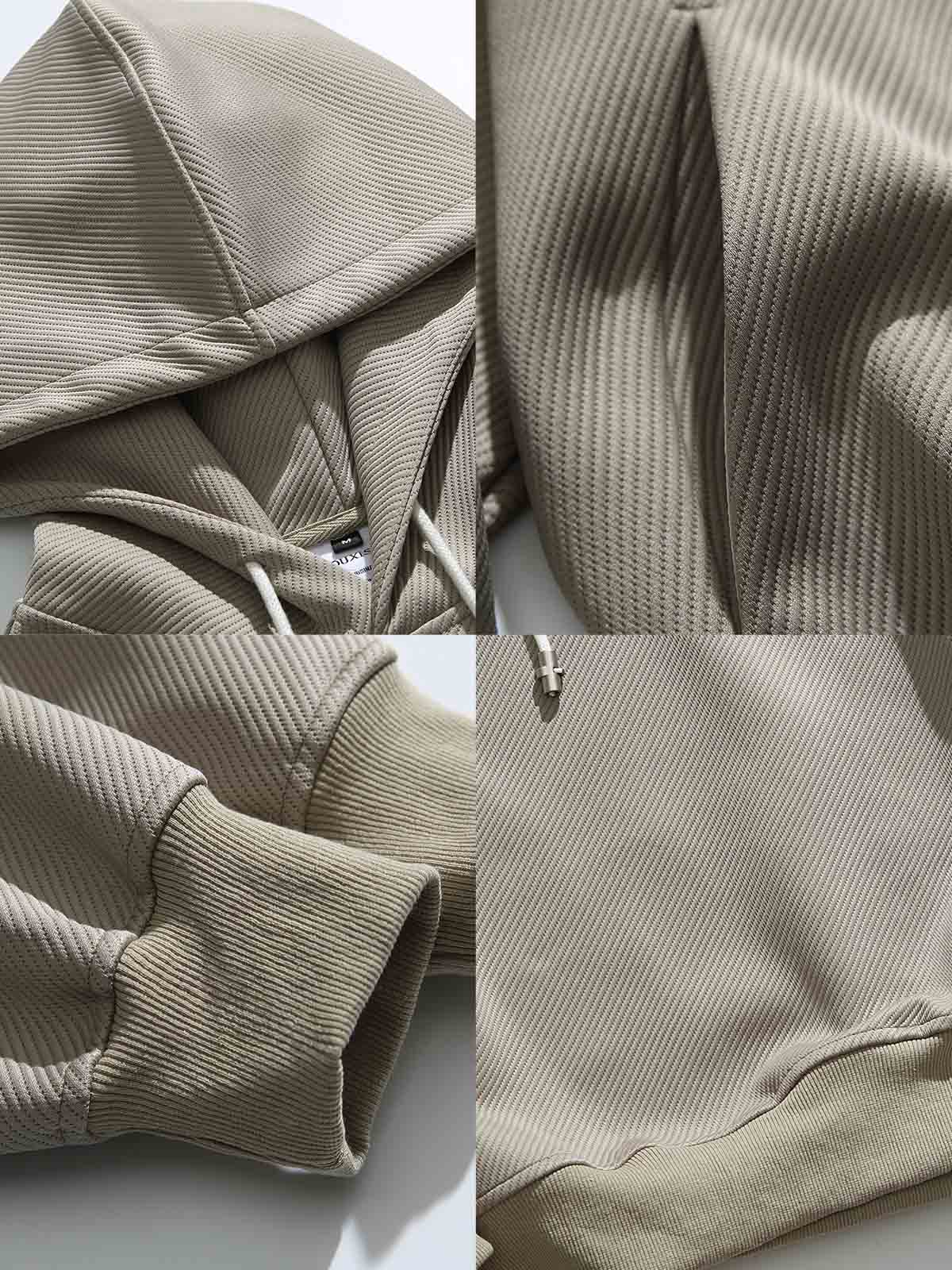リブ織りのテクスチャーが特徴のこのフーディーは、スポーティーなアクティブウェアにルーツを持ちつつ、現代的なストリートファッションに落とし込まれています。洗練されたデザインは、都会的なライフスタイルに溶け込むように仕上げられています。