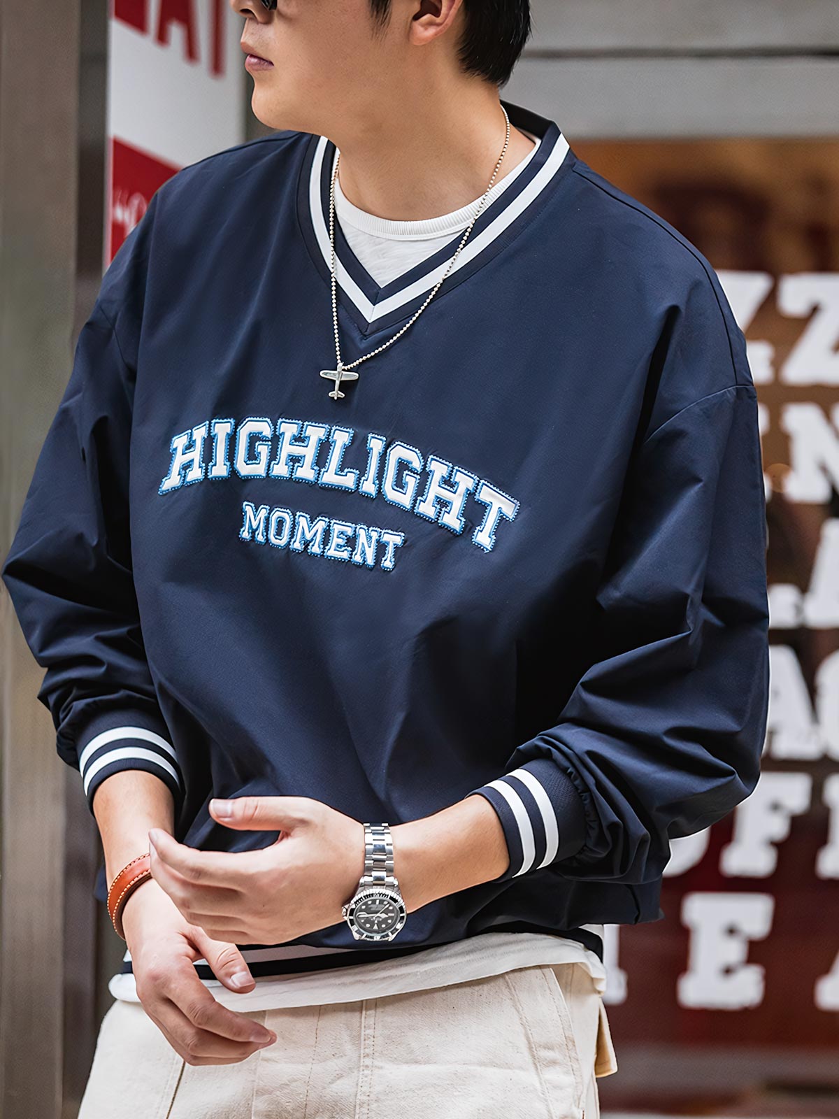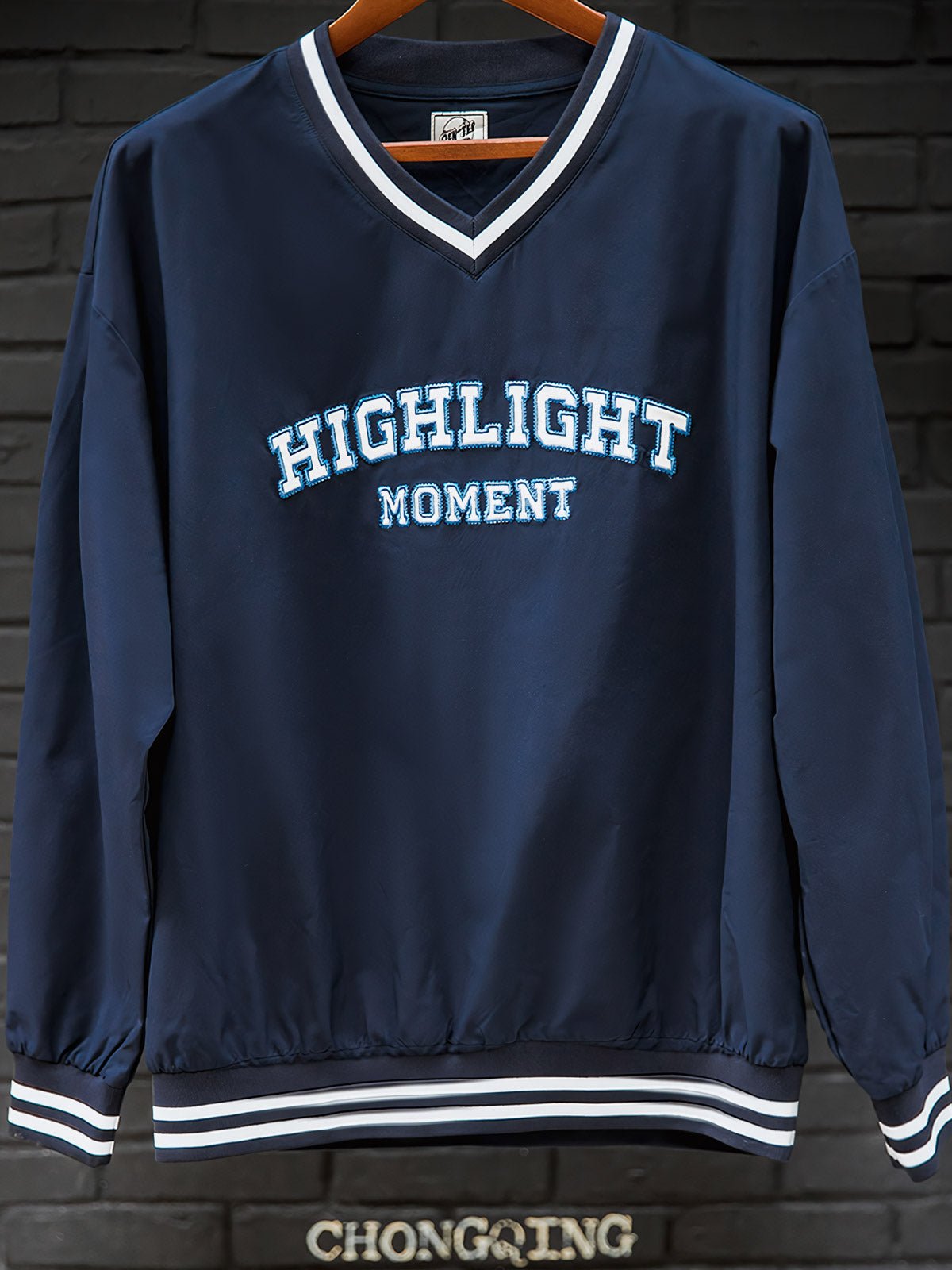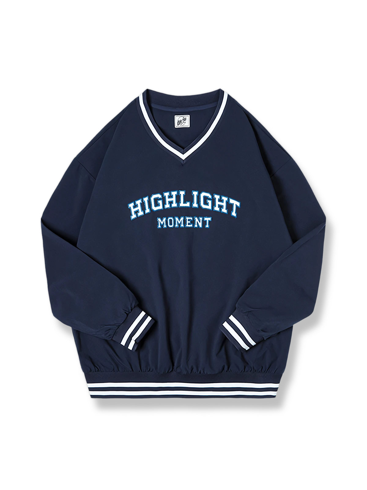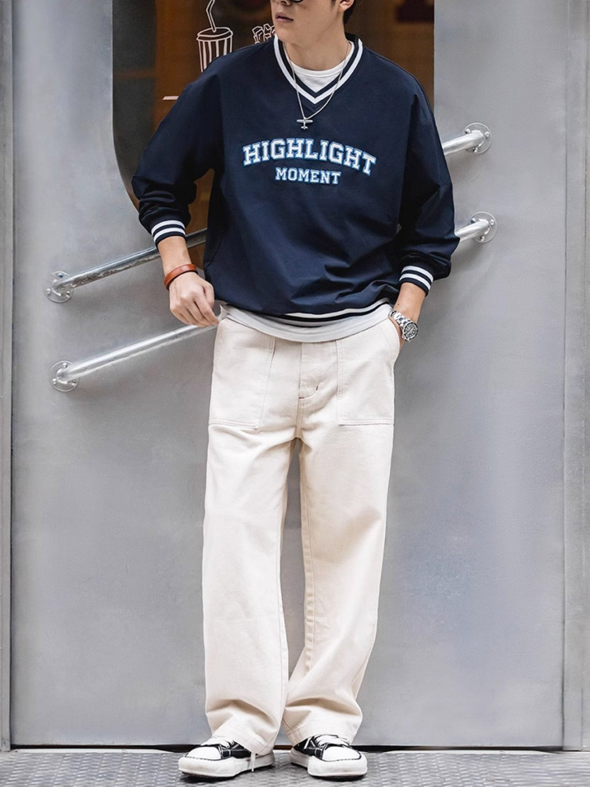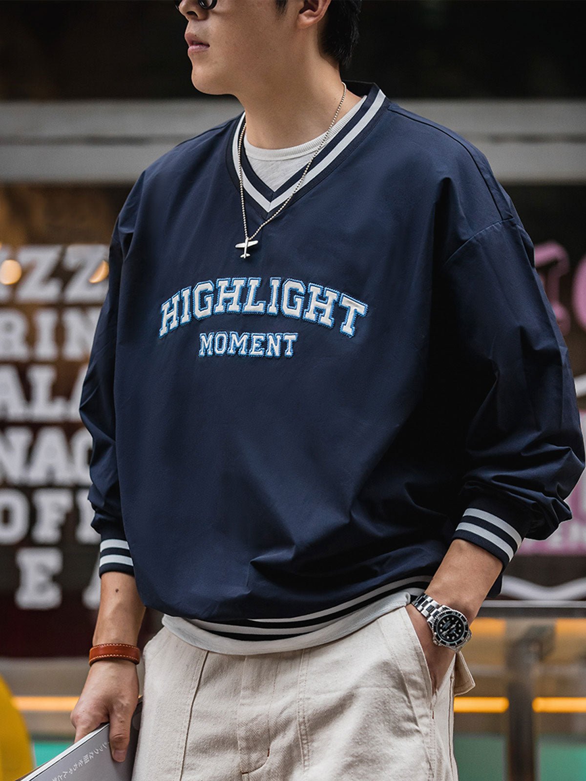 20世紀初頭から現代にかけて、アイビースタイルは常に優雅さと学問の伝統の象徴でした。スウェットに刺繍された「HIGHLIGHT MOMENT」という言葉と伝統的なフォントデザインは、その時代の学術的成就とスポーツ競技精神への重視を反映しています。刺繍の技術は視覚効果を高めるとともに、伝統的な手工芸への敬意と継承を示しています。