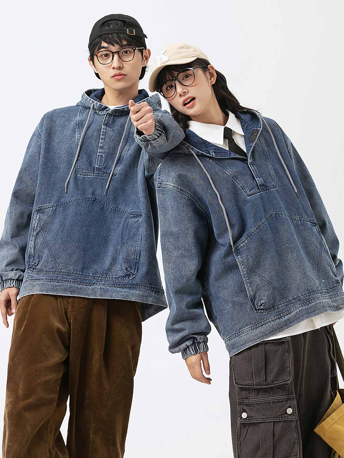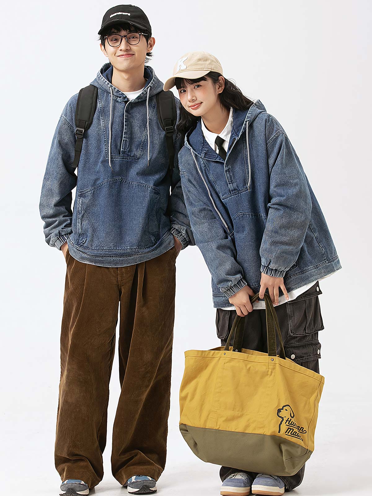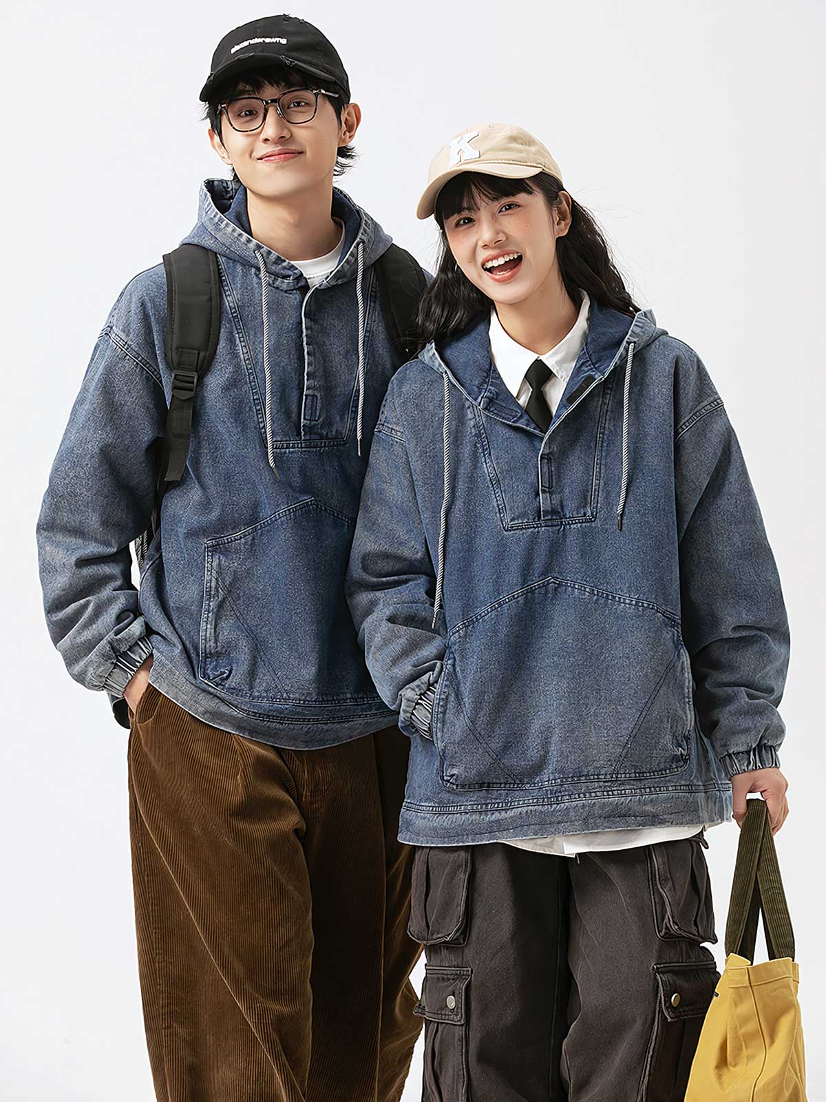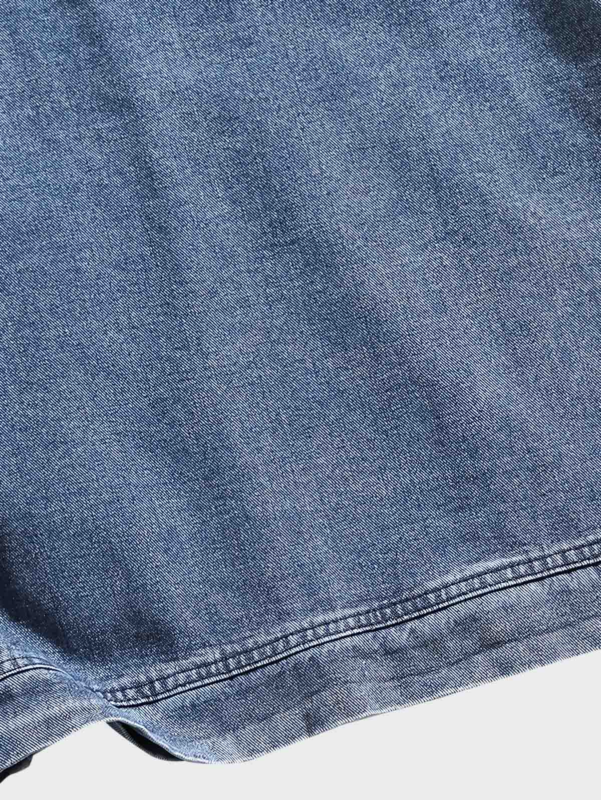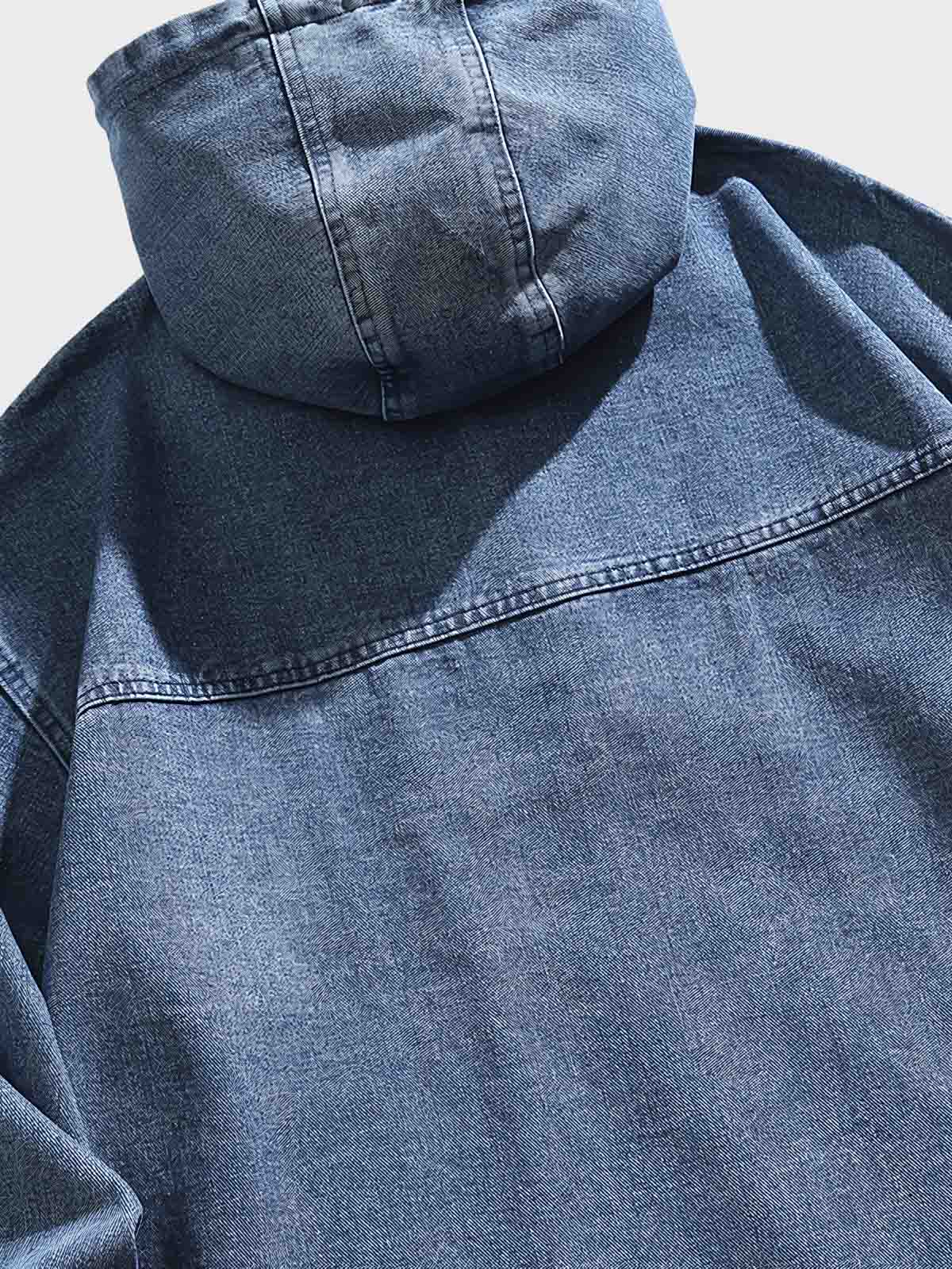 高密度のデニム素材を使用し、丈夫で耐久性に優れています。肩部と袖口の細かいディテールはより洗練されています。サイトのポケットデザインと裾のリブエッジは、機能性を高めると同時にスタイリングのレイヤーを豊かにしています。
