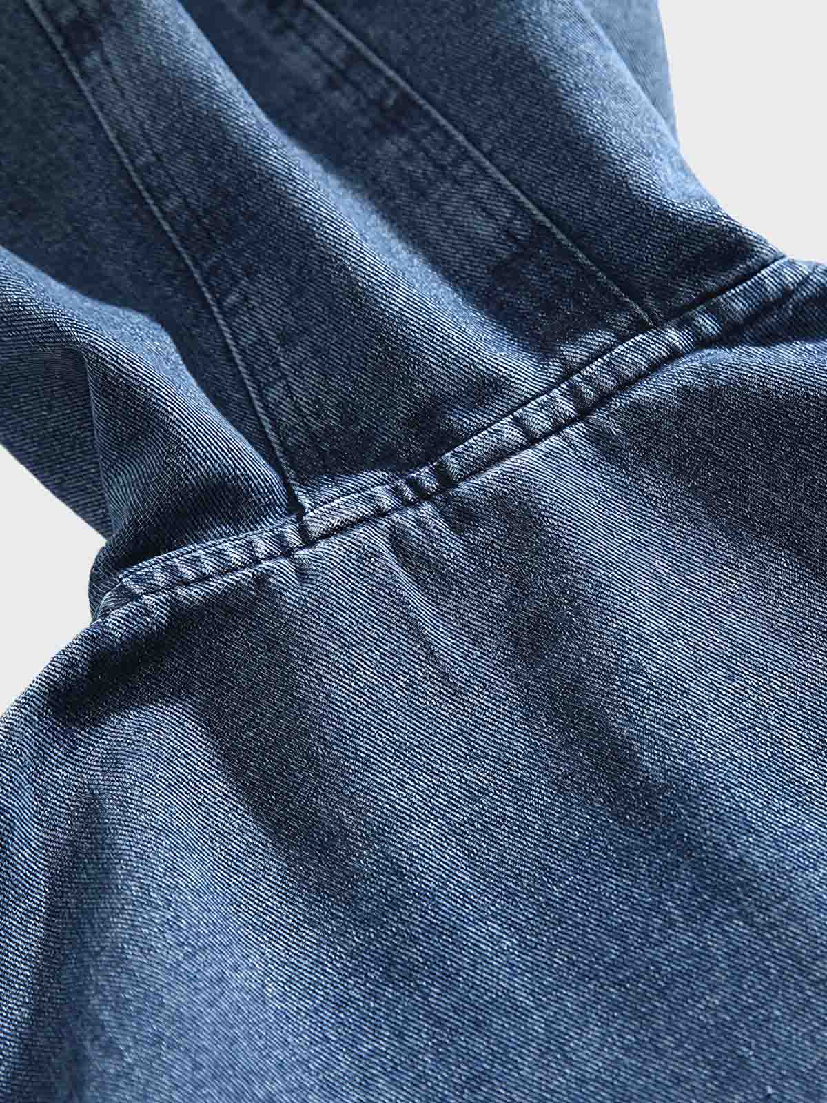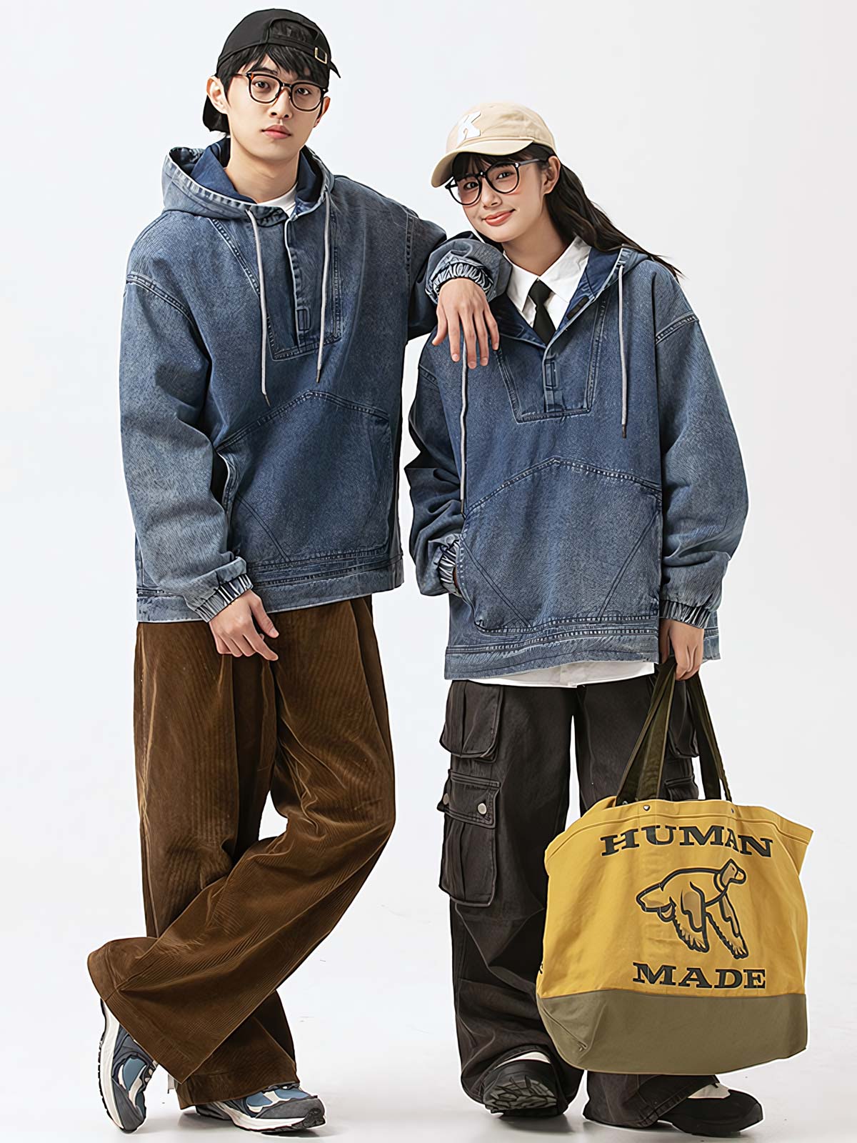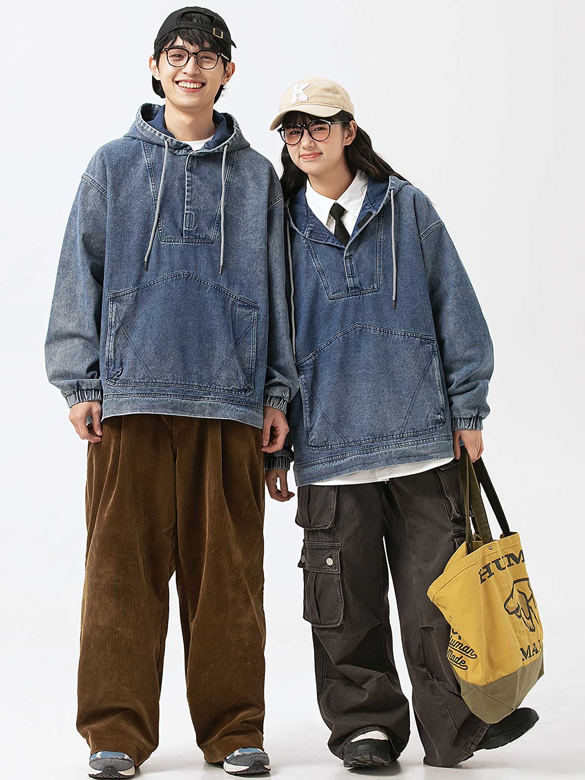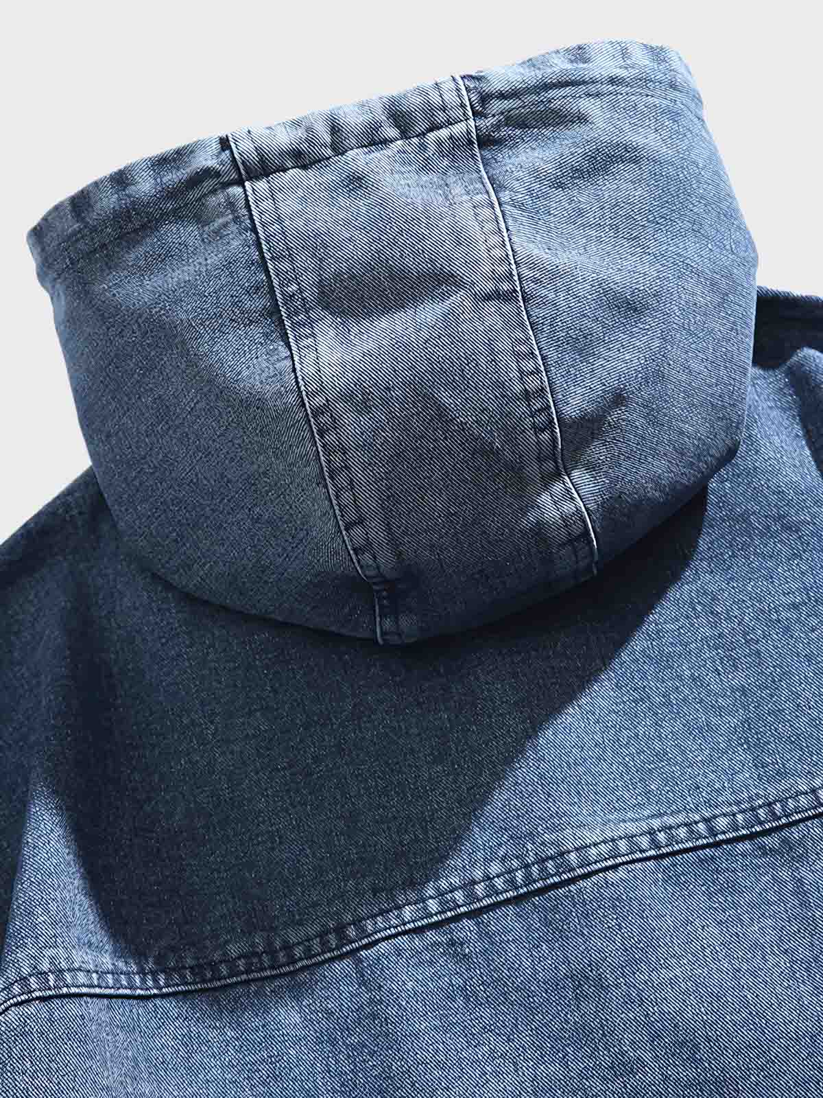 高密度のデニム素材を使用し、丈夫で耐久性に優れています。肩部と袖口の細かいディテールはより洗練されています。サイトのポケットデザインと裾のリブエッジは、機能性を高めると同時にスタイリングのレイヤーを豊かにしています。
