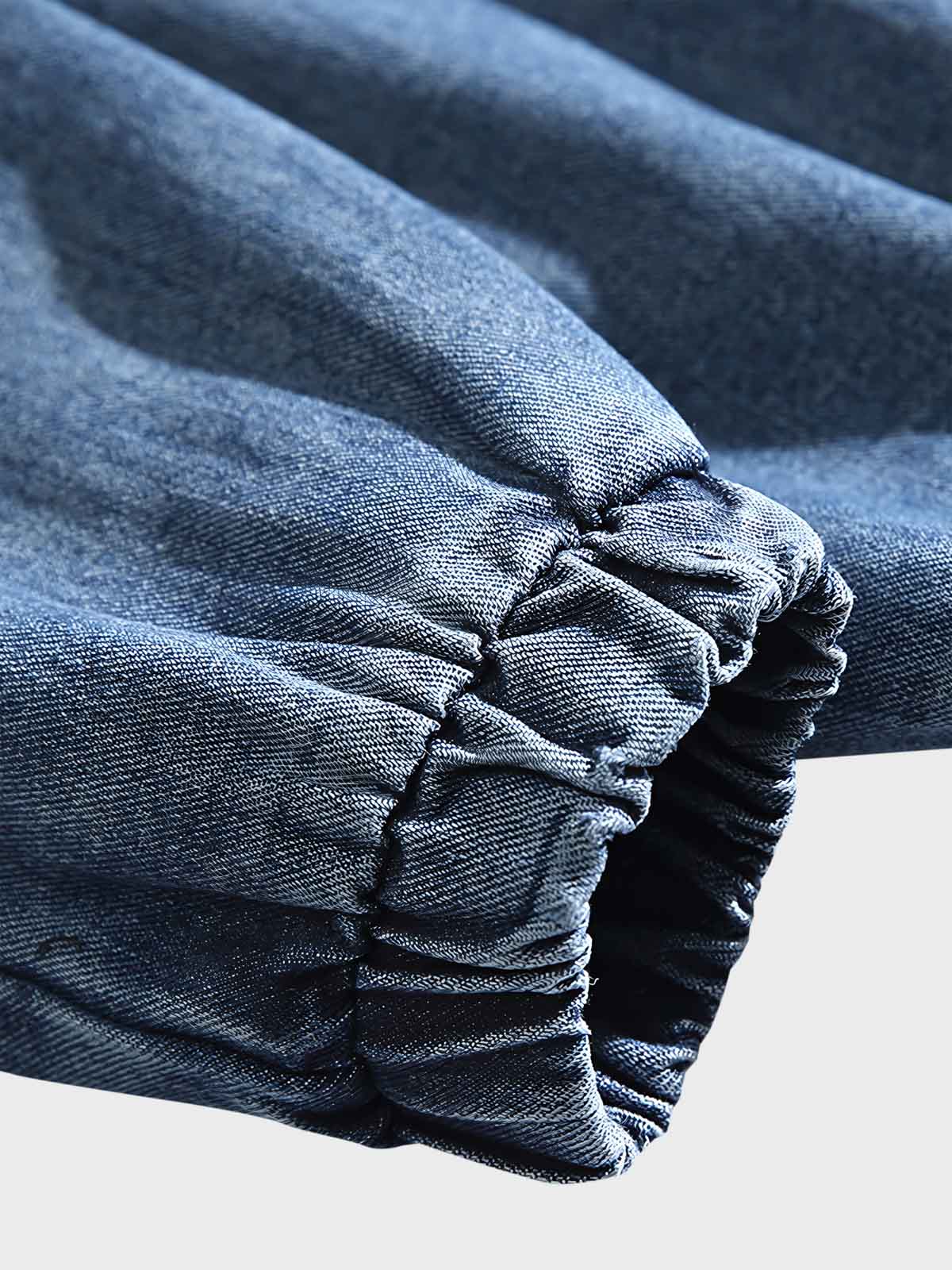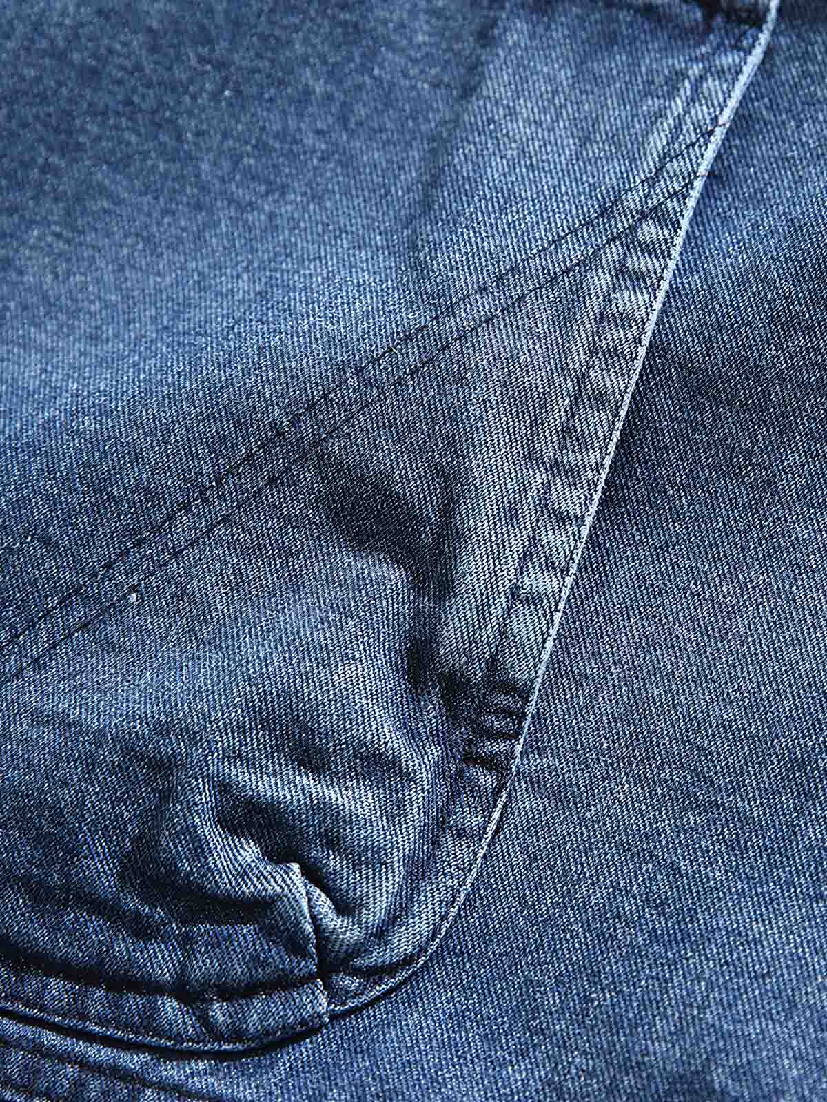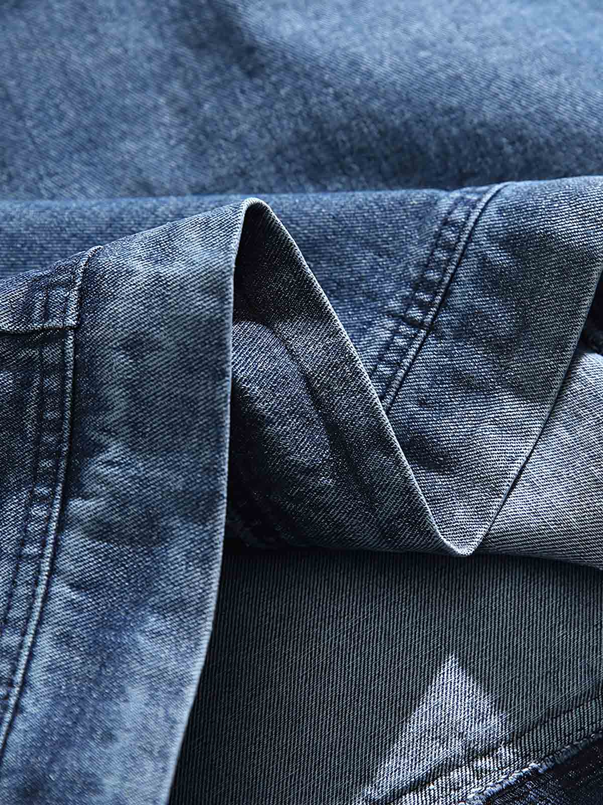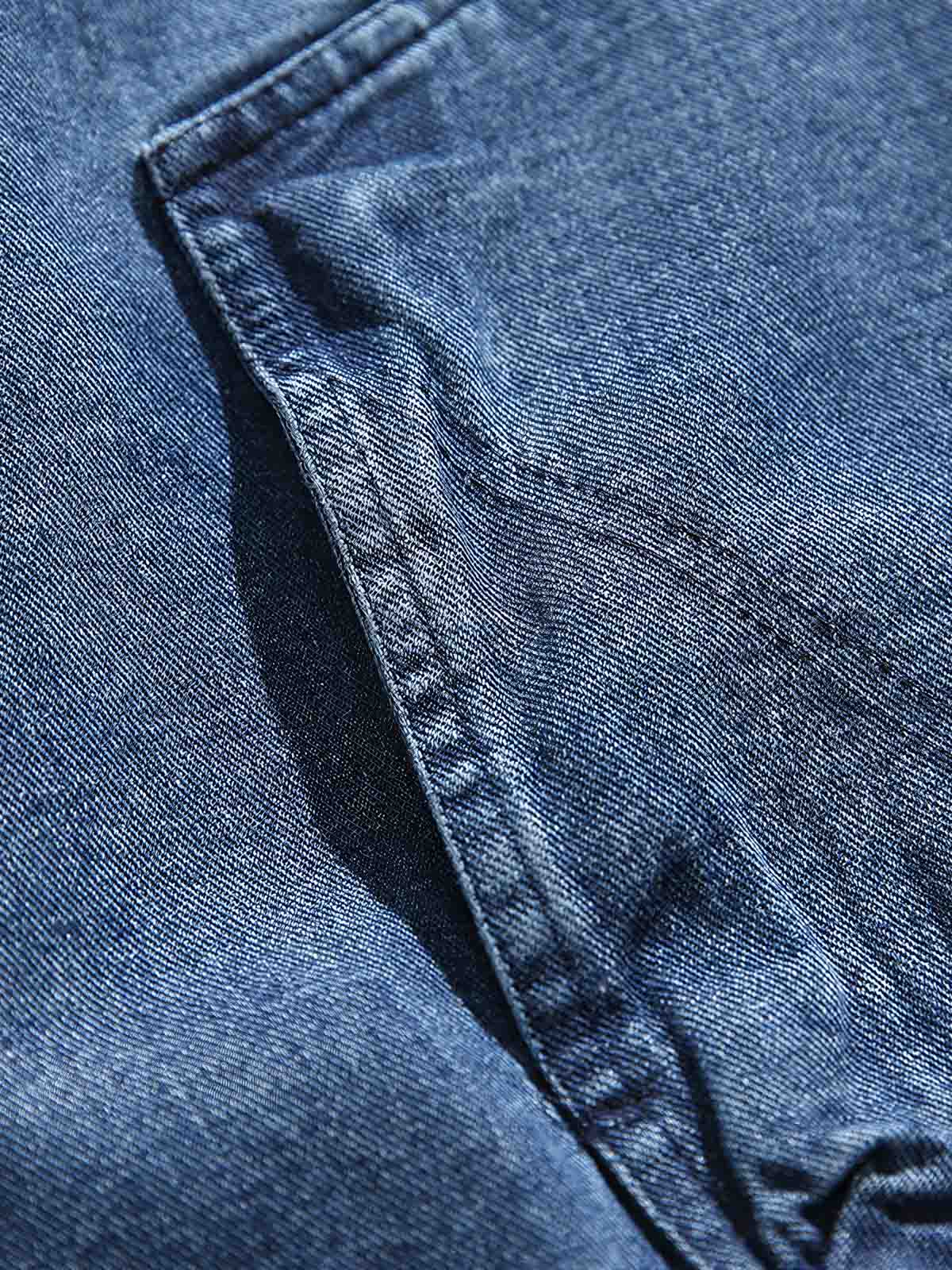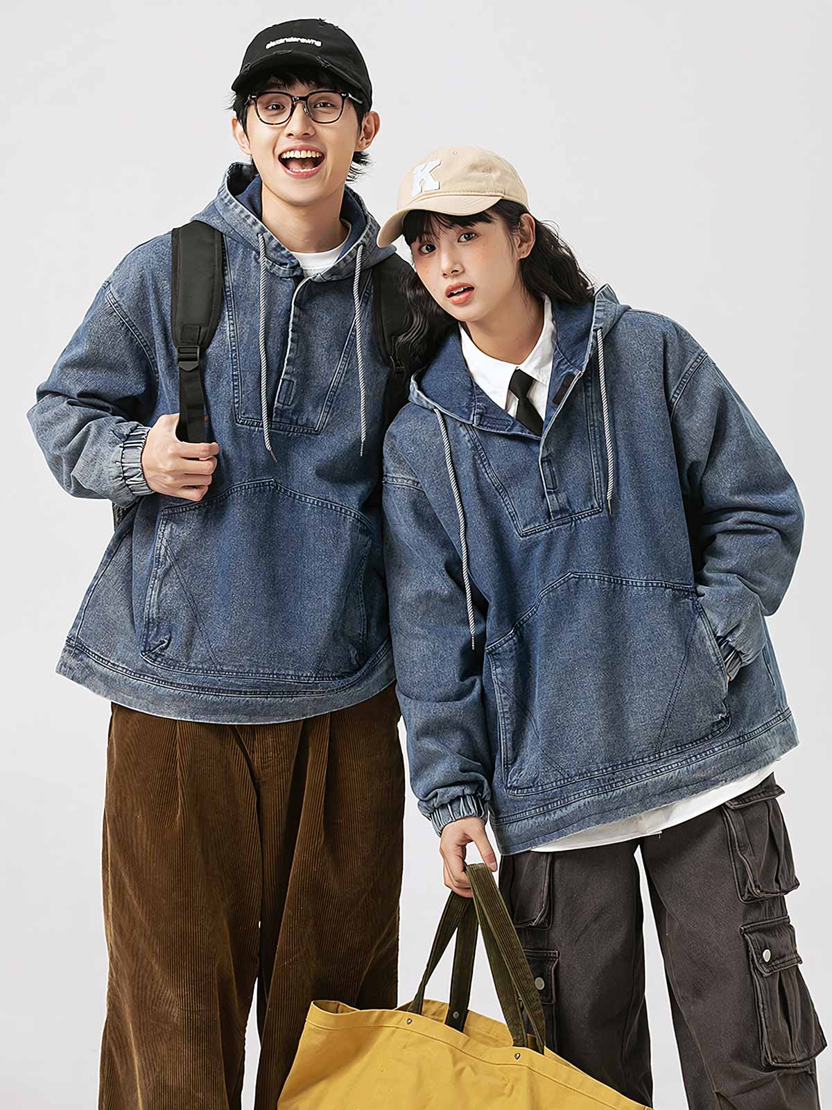 高密度のデニム素材を使用し、丈夫で耐久性に優れています。肩部と袖口の細かいディテールはより洗練されています。サイトのポケットデザインと裾のリブエッジは、機能性を高めると同時にスタイリングのレイヤーを豊かにしています。