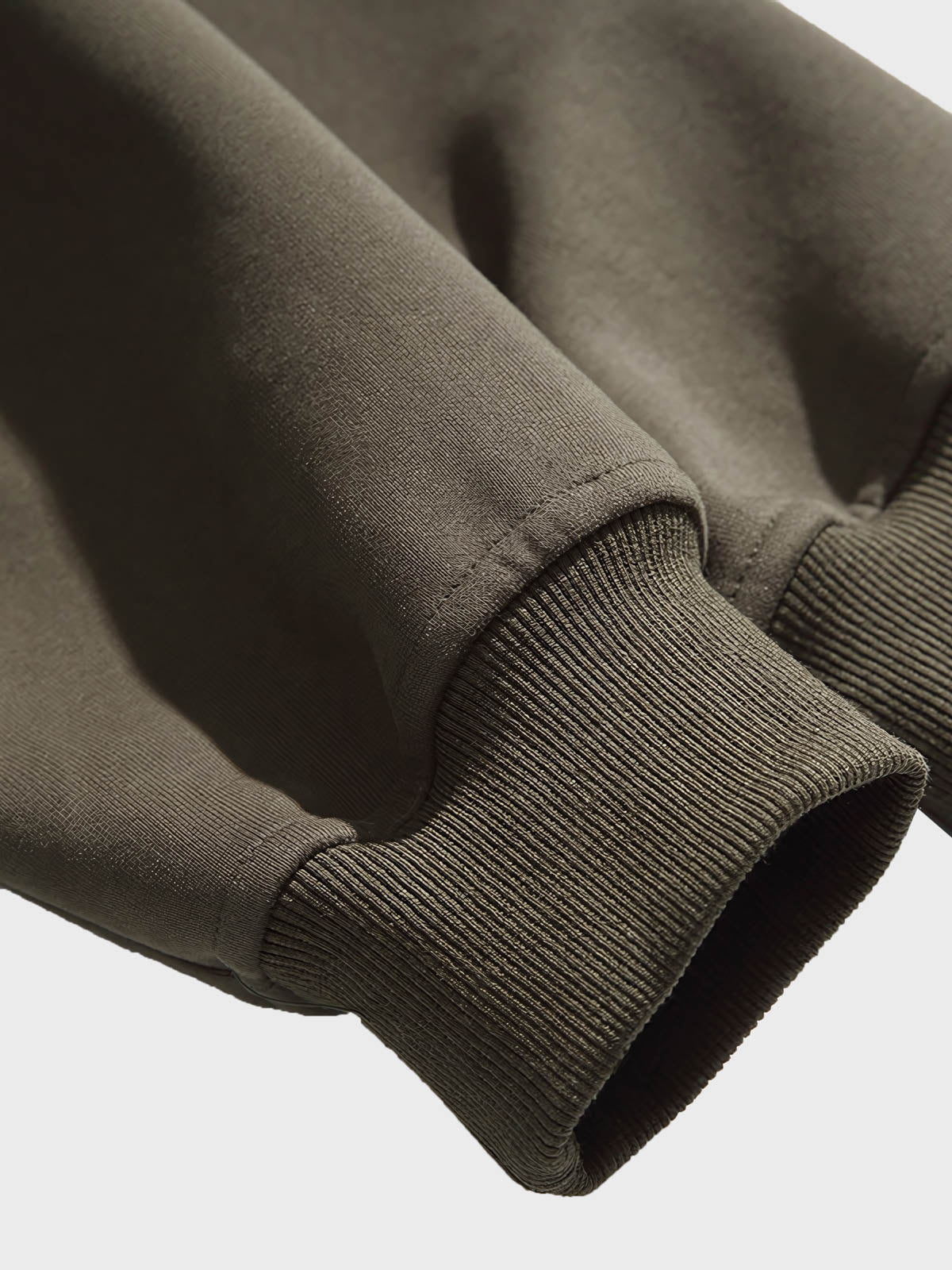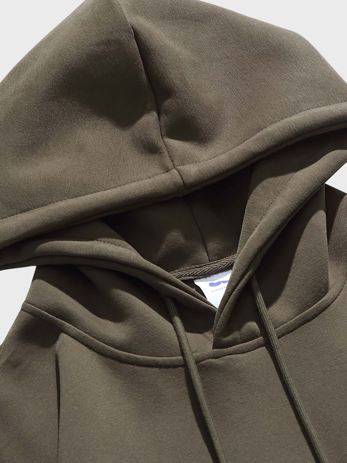 フーディはリラックスフィットのカットを採用し、さまざまな体型に合うように作られています。厚手の生地が良好な保温性を提供し、ゆったりとした袖口と裾が自由な動きを可能にします。フードのデザインはカジュアル感を加えると同時に、寒い風から守る実用的な要素です。