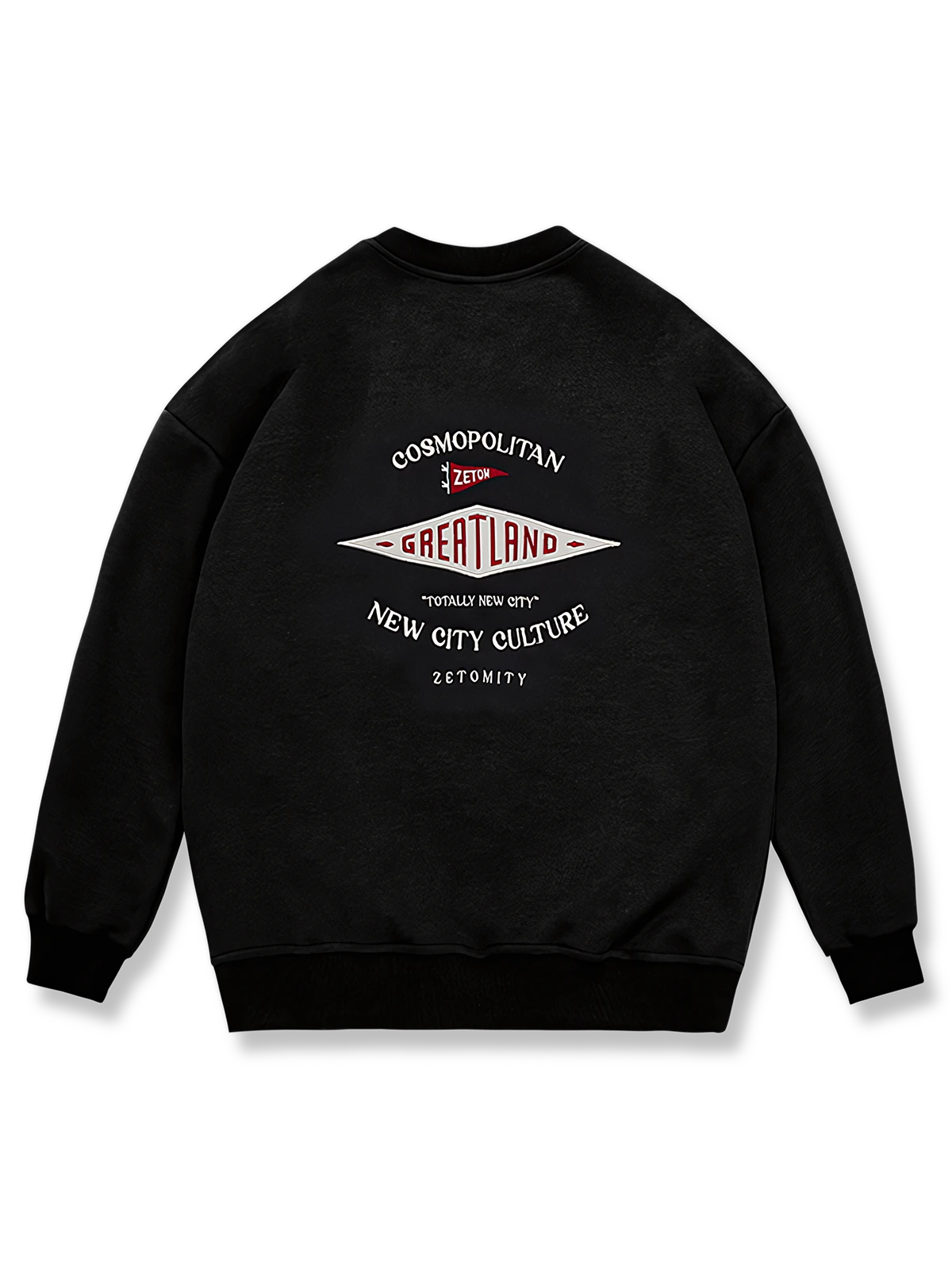 パーカーの背面には巧妙でヴィンテージな雰囲気の刺繍デザインが施され、特徴的な英文字が全体のスタイリングに独自のアクセントを加えます。