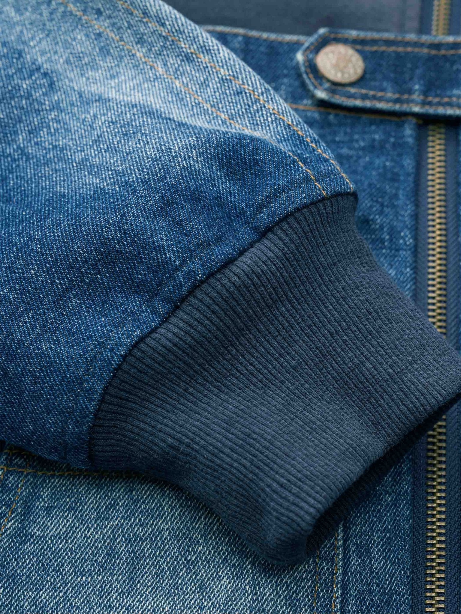 自然なコットン素材とウォッシュデニムの異素材をブルー系で組み合わせ、異なる感覚を併せ持つコンビデザインを採用しています。再構築を取り入れながらも、洗練された印象を実現しています。