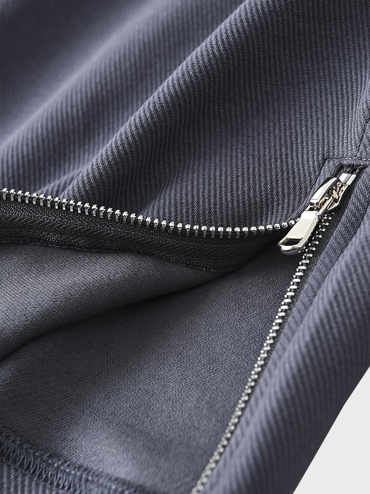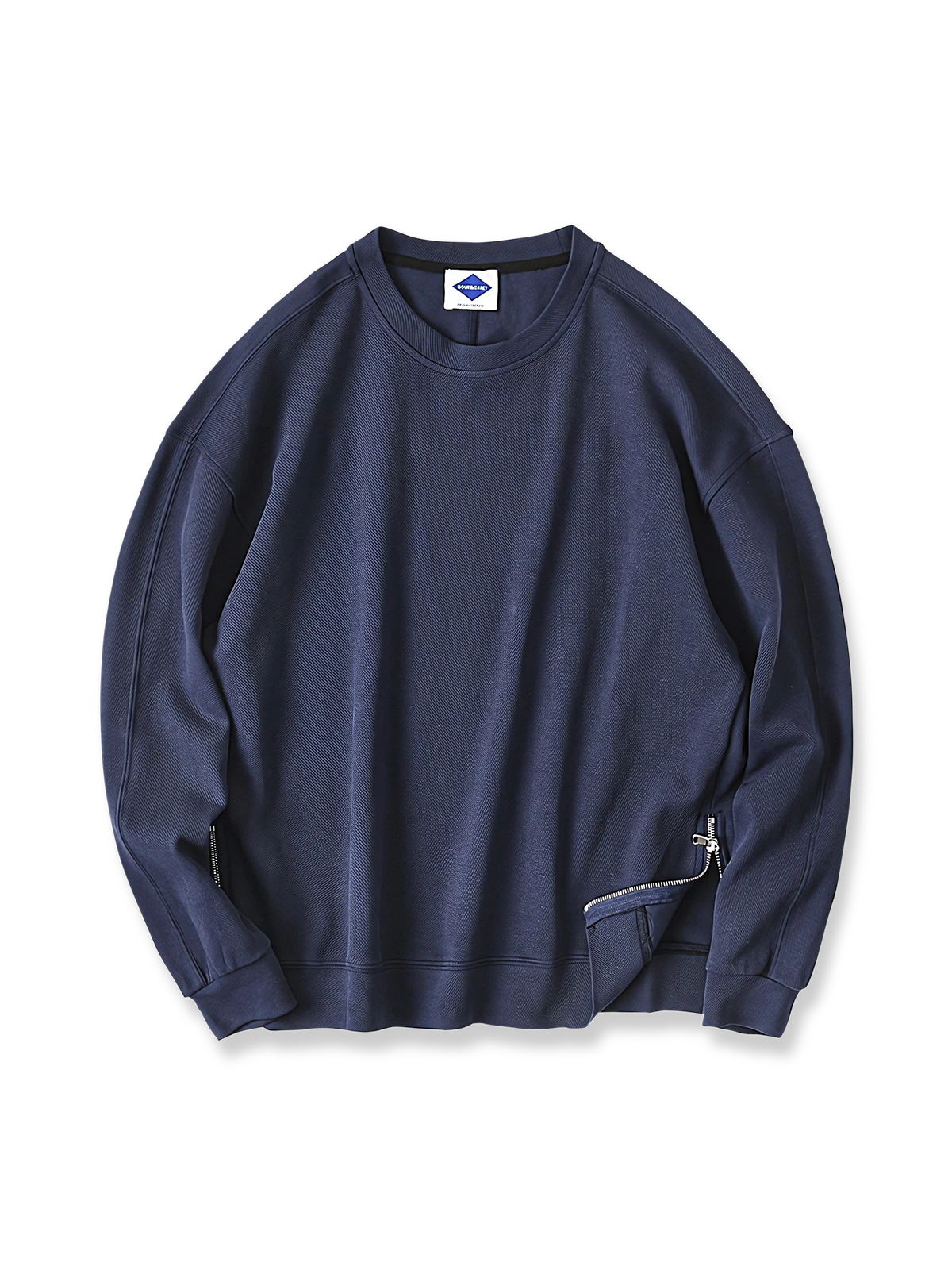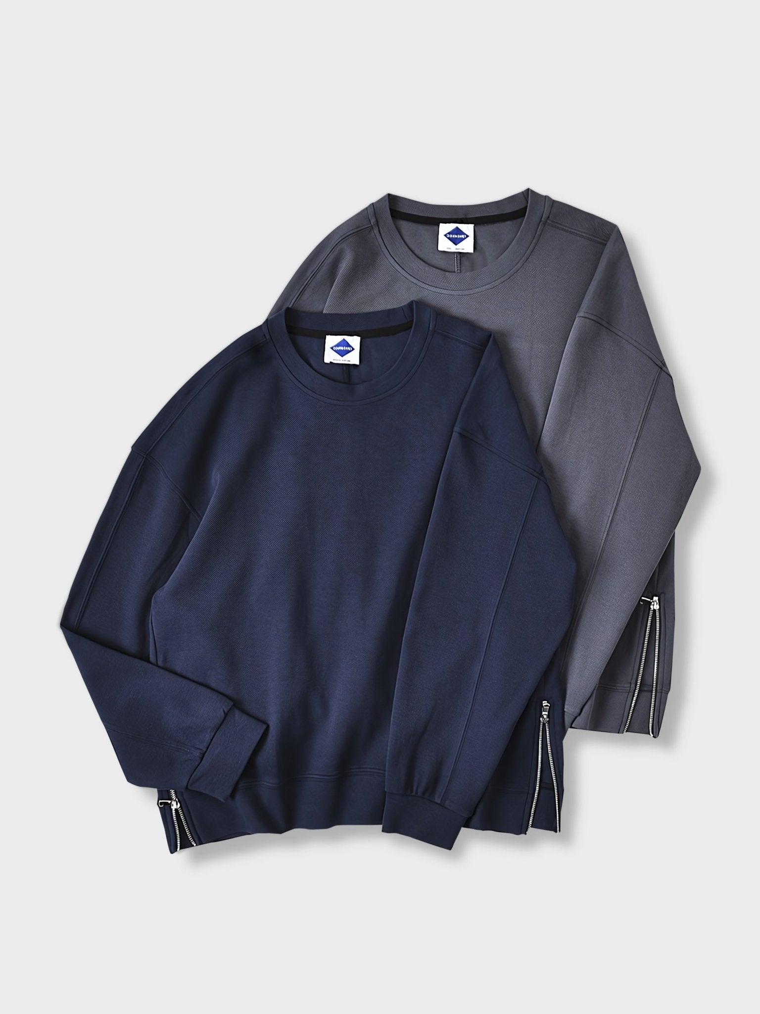 スウェットシャツの両側にはジッパーがあり、必要に応じてスリットスタイルに変更でき、着用の柔軟性が高まります。