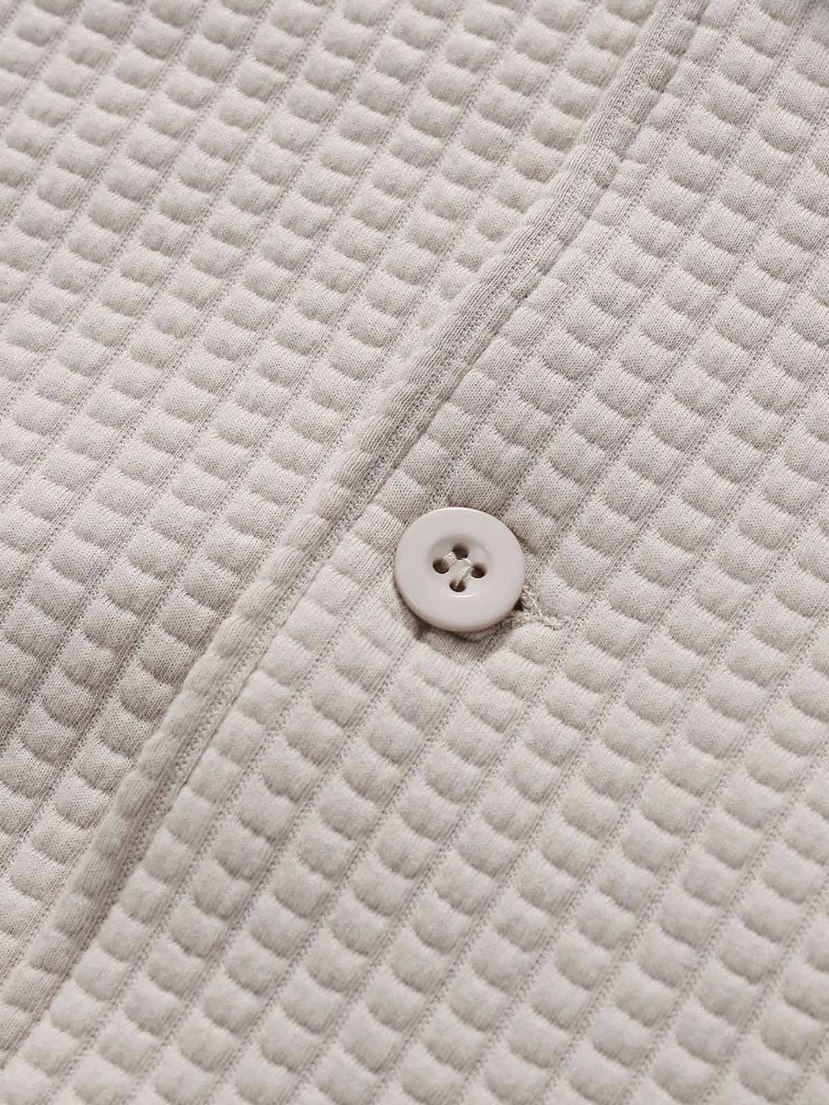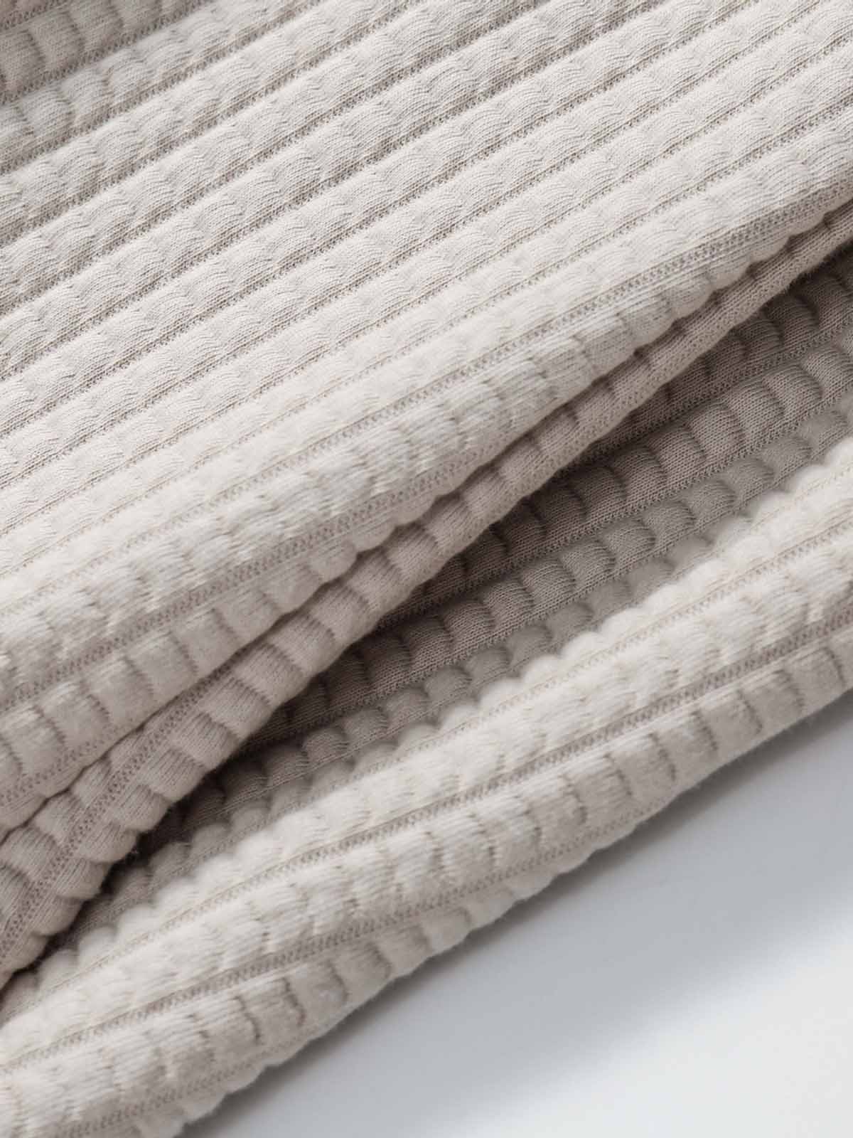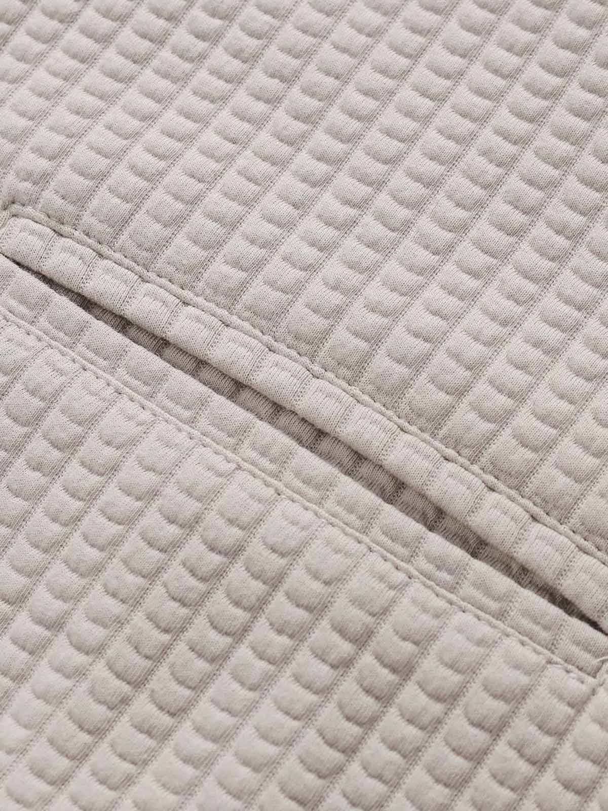 本ジャケットは、クラシックなアメリカンスポーツウェアにインスパイアされたデザインで、ゆったりとしたシルエットを採用しています。ワッフルチェックの立体織り加工により、優れた保温性と通気性を実現。前面はスナップボタン仕様で、実用性と装飾性を両立し、適切な位置に配置されたポケットが日常の収納力を向上させます。さらに、シンプルながら層のあるデザインは、単体でもレイヤードでも多彩なスタイルを楽しめる点が魅力です。これにより、ヴィンテージスポーツウェアの味わいと、現代的な都会カジュアルスタイルを絶妙に融合させています。