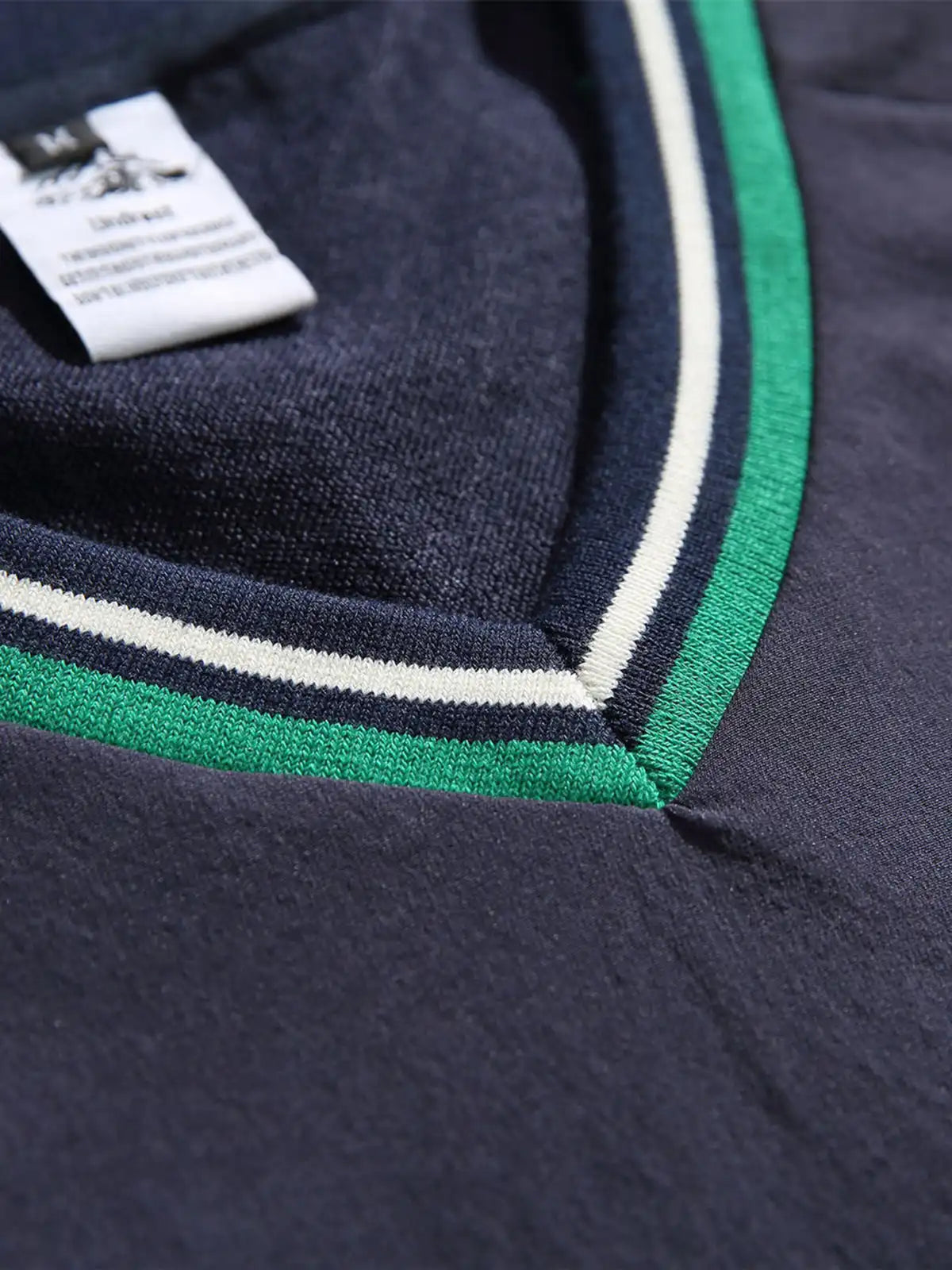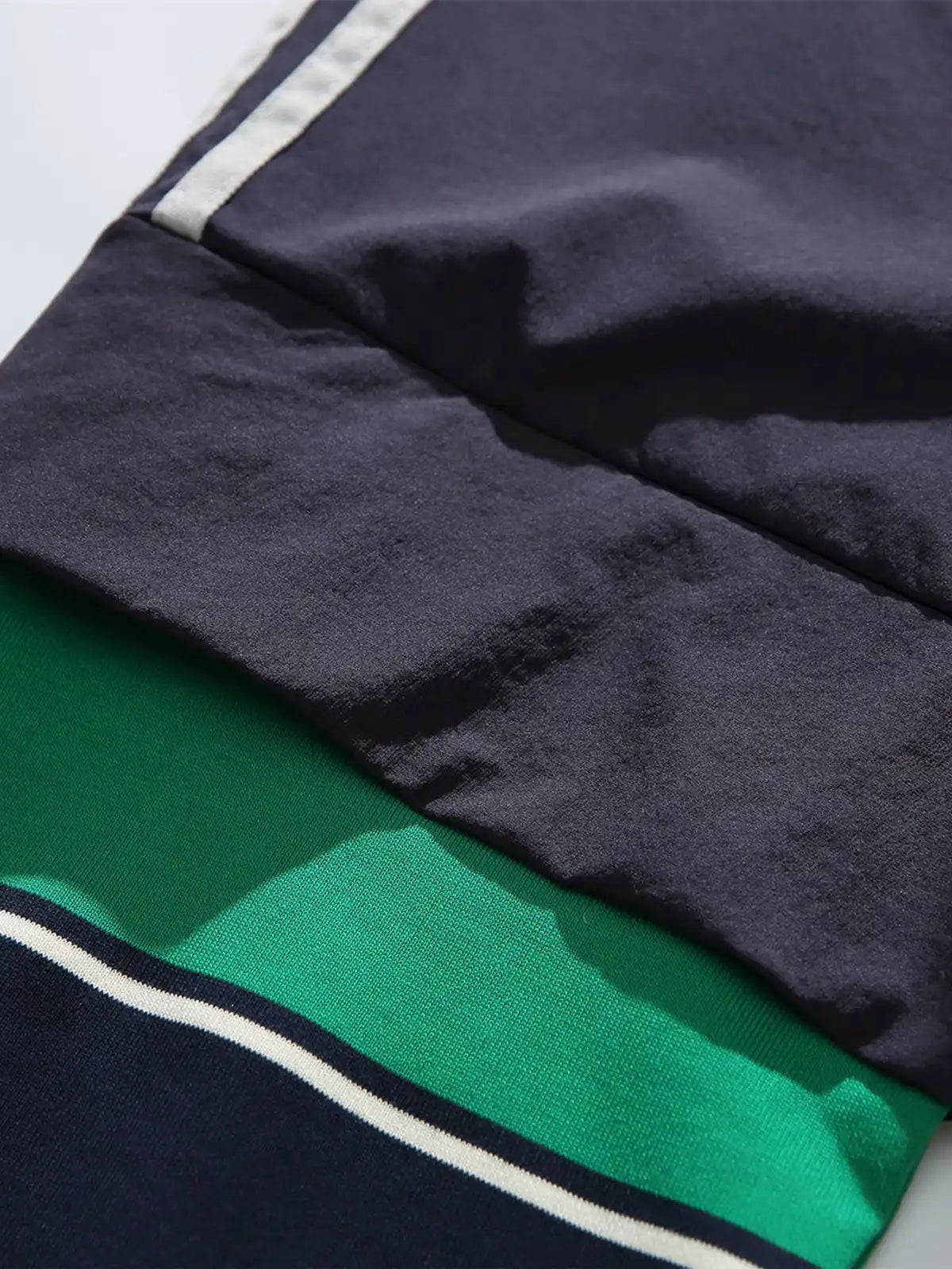 ラグランスリーブ風の切り替えと袖部分の配色が目を引く一着。フェイクレイヤード仕様で、簡単に重ね着のようなスタイリングを楽しめます。90%ナイロン・10%スパンデックスの軽量素材を採用し、動きやすさと適度なストレッチ性を両立。フロントにあしらわれたロゴやワッペンがスポーティかつヴィンテージ感をプラスし、デニムやワイドパンツなど幅広いボトムスと相性抜群です。