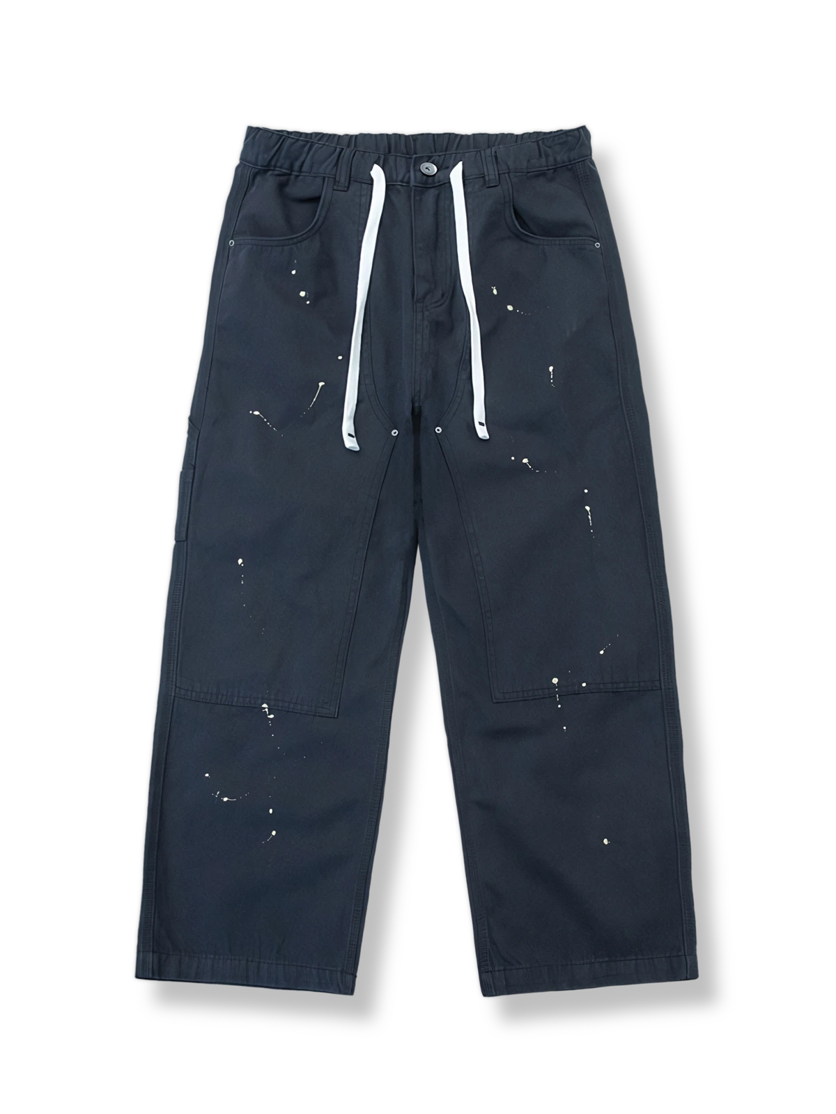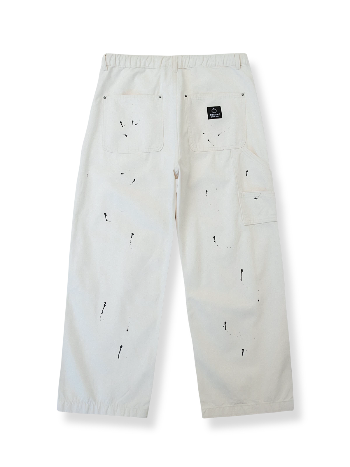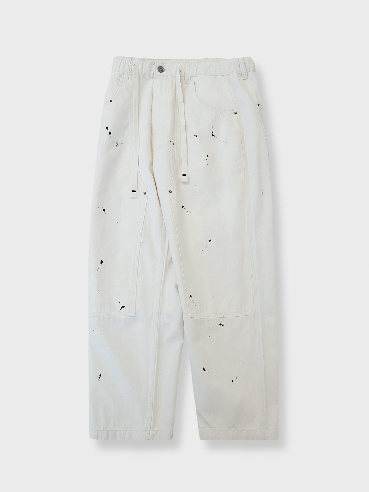 耐久性に優れた厳選されたコットン素材を使用し、スラックスの各所に散りばめられたペイントは一つ一つが独特の表情を持っています。
