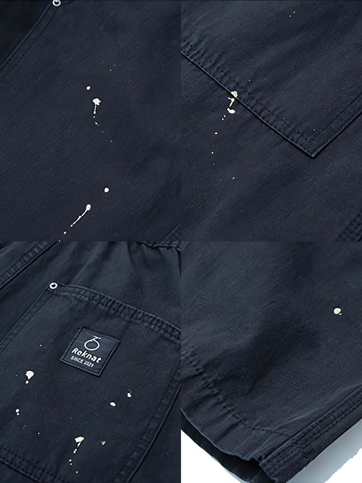 スプラッターペイントデザインはアートの世界から着想を得ており、抽象表現主義の流れを汲むアーティスティックな雰囲気を纏っています。古き良きアトリエでの作業着を思わせるディテールは、モダンなストリートスタイルへのオマージュです。