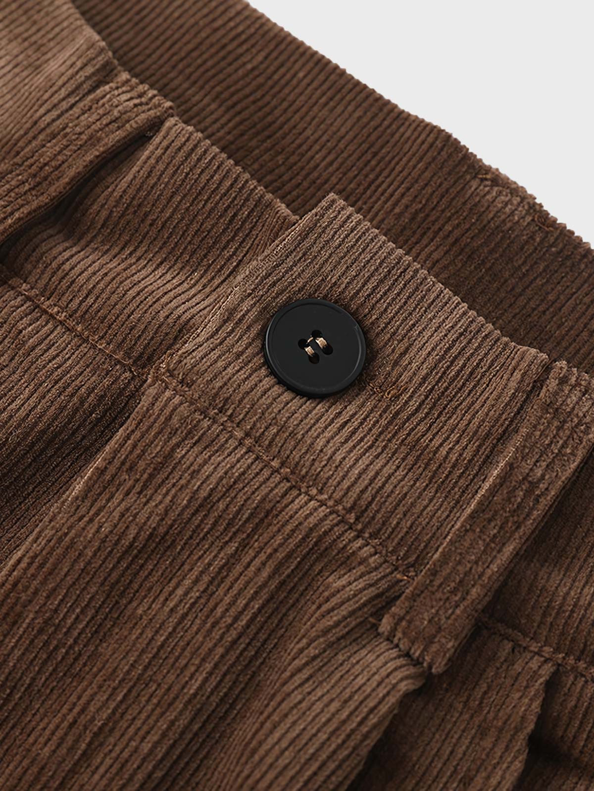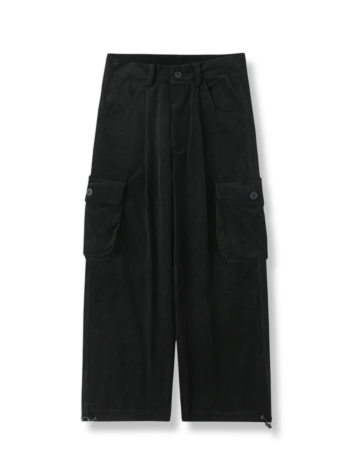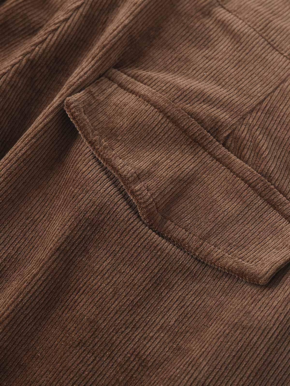 このコーデュロイパンツは、日本のレトロスタイルをデザインのインスピレーションとして、伝統的な要素と現代のカジュアルスタイルを融合しています。パンツの製造は細部にまでこだわり、大きなポケットのデザインは実用性を高めるとともに、レトロなワークウェアスタイルの典型的な要素です。裾のドローストリングデザインは、必要に応じてパンツの足首のフィット感を調整でき、着用の柔軟性を向上させます。