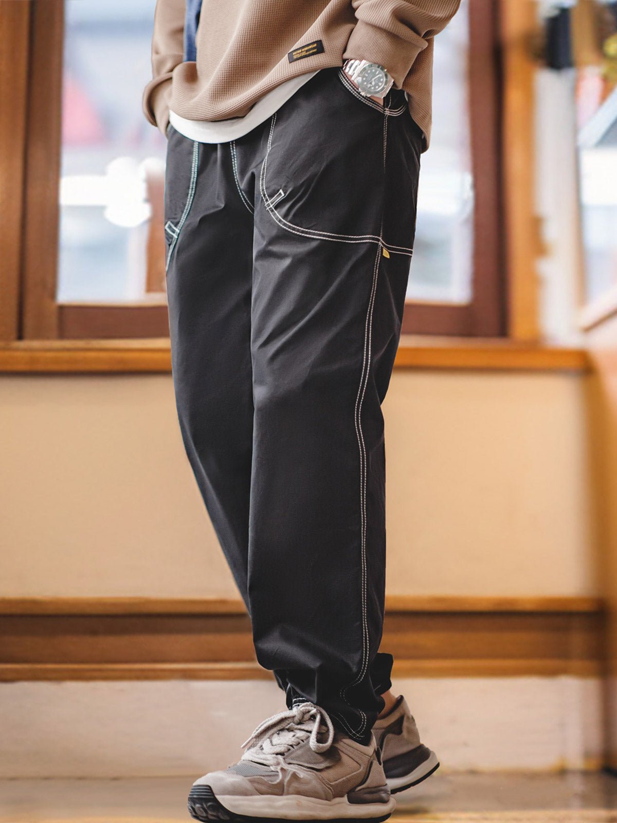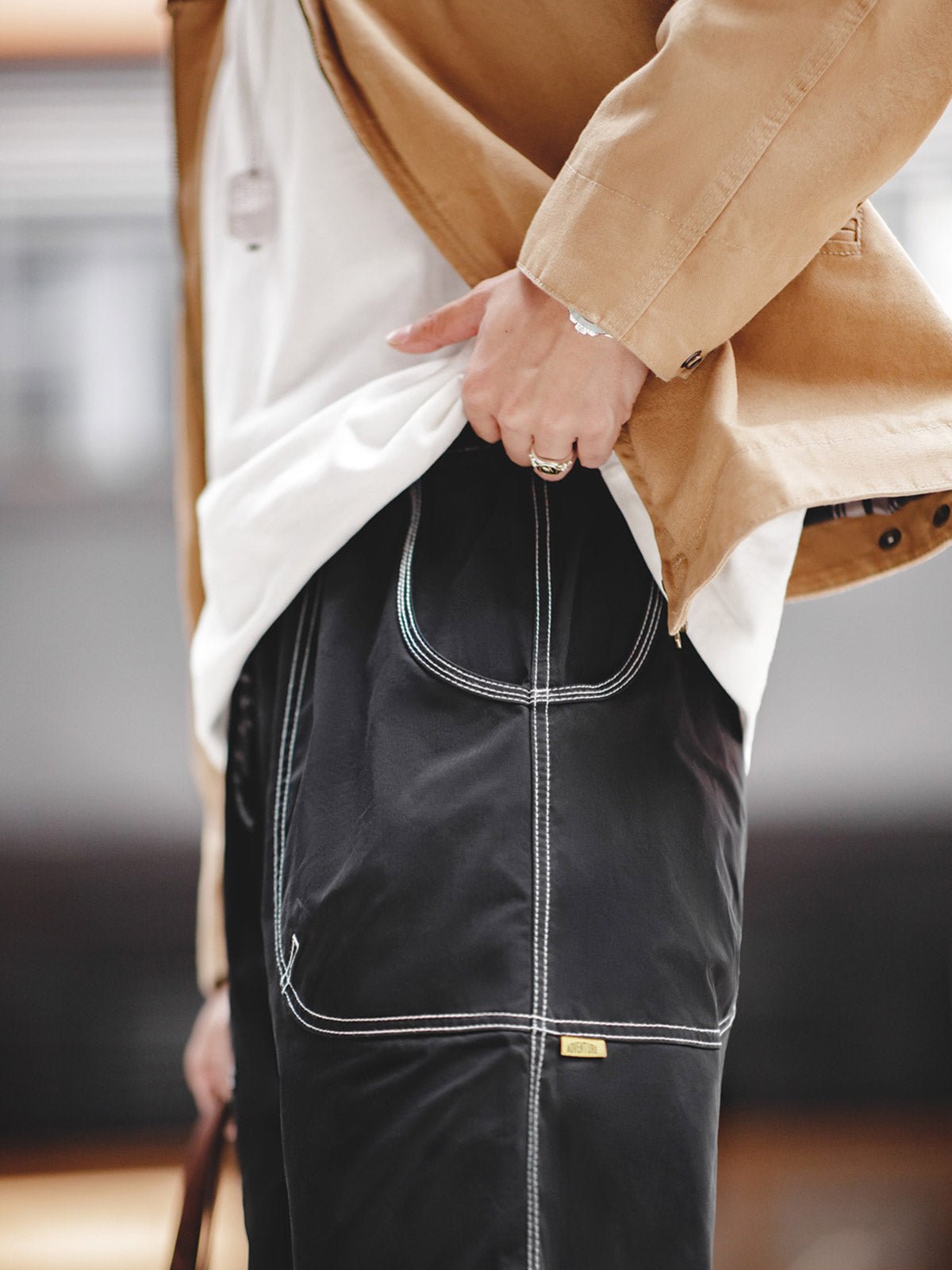 ジョガーパンツはスポーツ界から生まれ、特に1980年代に流行したストリートダンス文化の中で人気を博しました。このタイプのパンツは、動きやすく制約が少ないため、活動的な都会生活に適しています。CityBoyシリーズは、この実用性を現代の都市スタイルと融合させ、エディットステッチのディテールを加えることで、視覚的な層とファッション感を高めています。