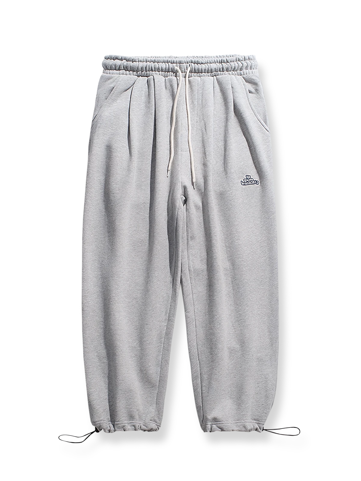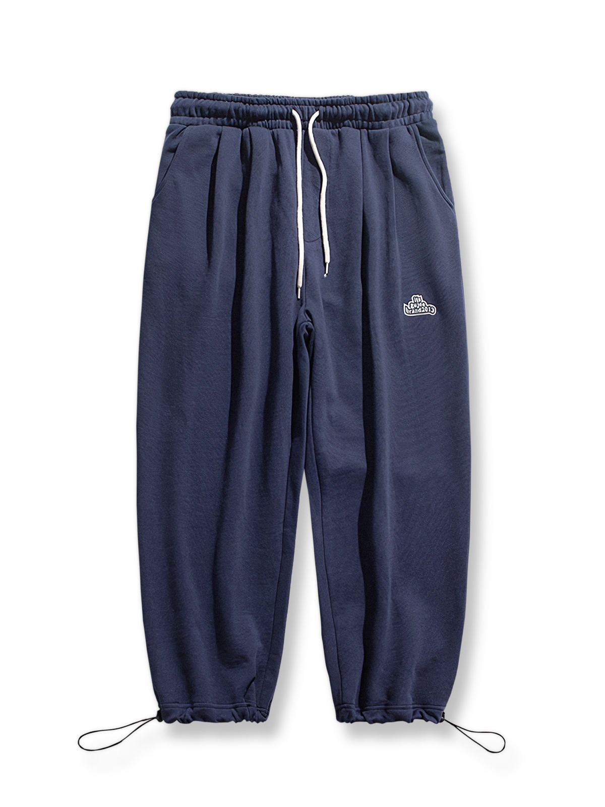 細やかな刺繍はシンプルながらも特徴的なアクセントを加え、高品質のコットン素材は柔軟性と耐久性を兼ね備えています。裾のドローコードはスタイリッシュながら実用的なデザイン要素です。