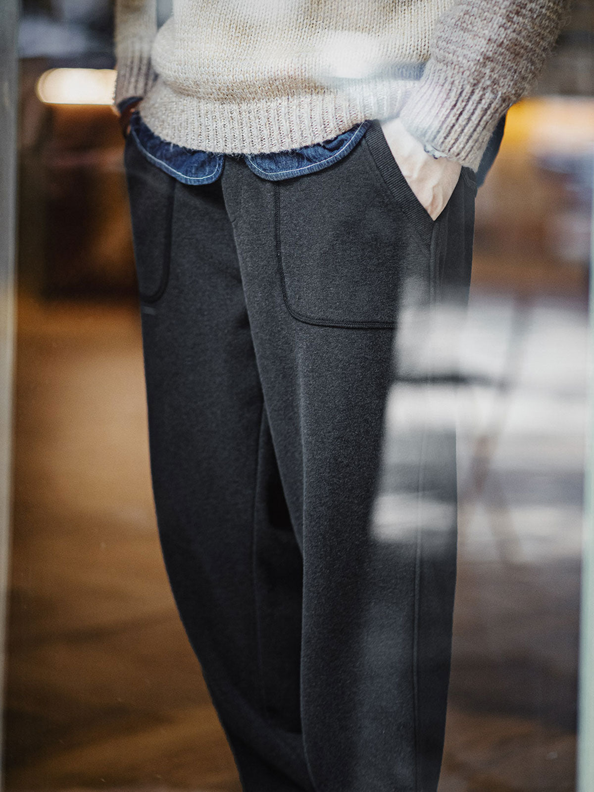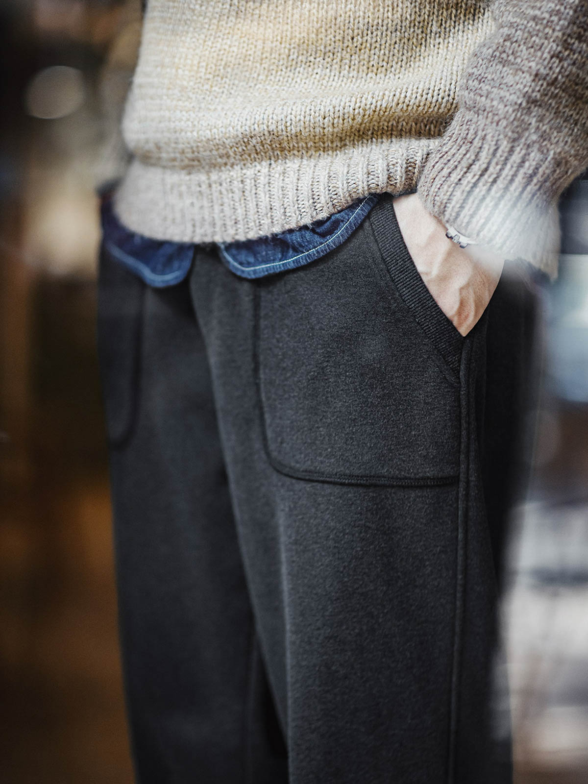 このスウェットパンツは、1950年代に米軍で使用されていたOG-107パンツをインスパイアし、矩形フロントポケットやゆったりとしたシルエットを忠実に再現しています。裏起毛加工が施された花糸素材は、冬の寒さをしっかりと防ぎ、ソフトで快適な着心地を提供します。ウエスト部分はゴム紐仕様で、従来のジッパーに代わり着脱がしやすいデザインになっています。裾部分にはリブが施され、全体のシルエットがきれいにまとまり、カジュアルスタイルに洗練された印象を加えます。微伸縮性のある生地は、動きやすさを確保しながらリラックスした着用感を提供し、秋冬の外出シーンに最適です。