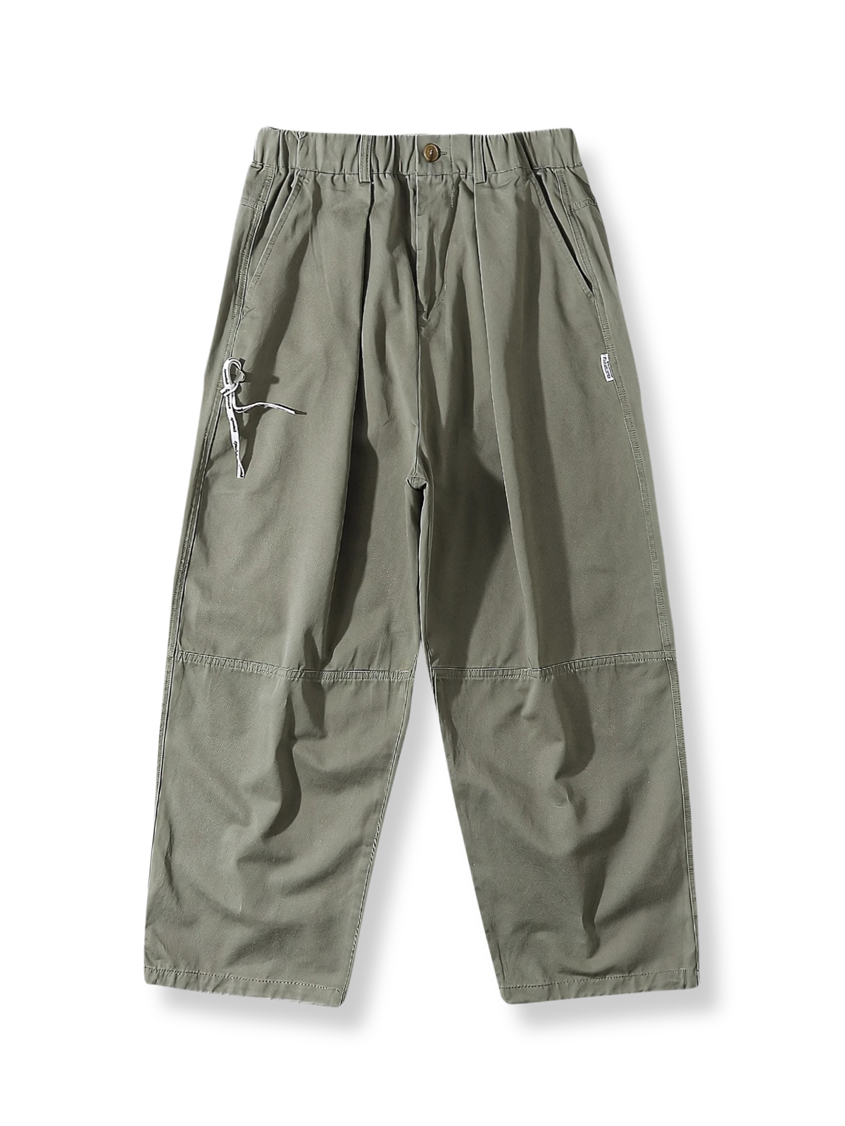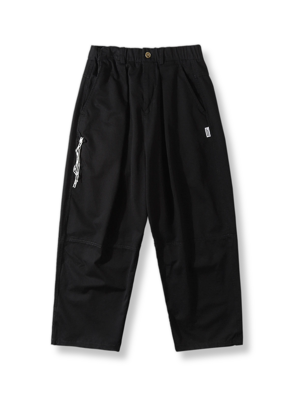 このワークパンツは、100%コットン素材を使用し、柔らかく通気性の良い快適な着心地を実現しています。ウエスト部分にはドローストリングが施されており、サイズ調整が可能で、さまざまな体型に対応します。ルーズフィットのシルエットとワークスタイルのデザインが特徴で、日常のカジュアルな装いはもちろん、アウトドア活動にも最適です。裾部分に施されたステッチが立体感と耐久性を高め、ファッション性と実用性を兼ね備えた万能アイテムです。